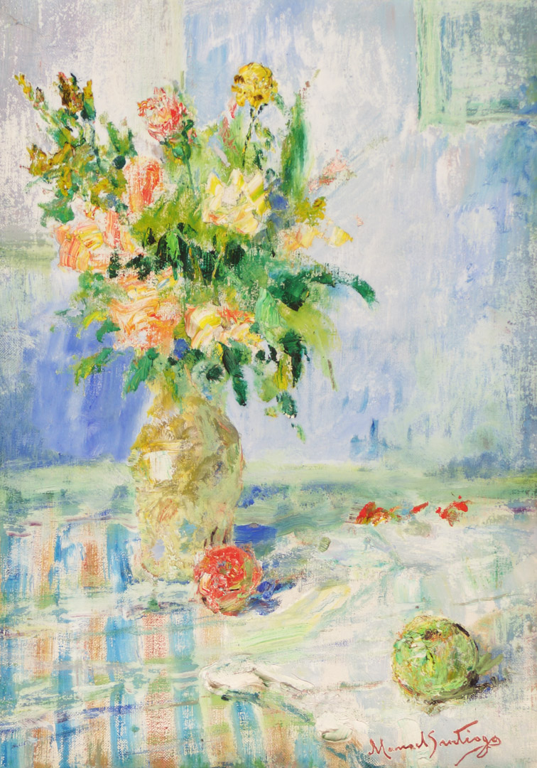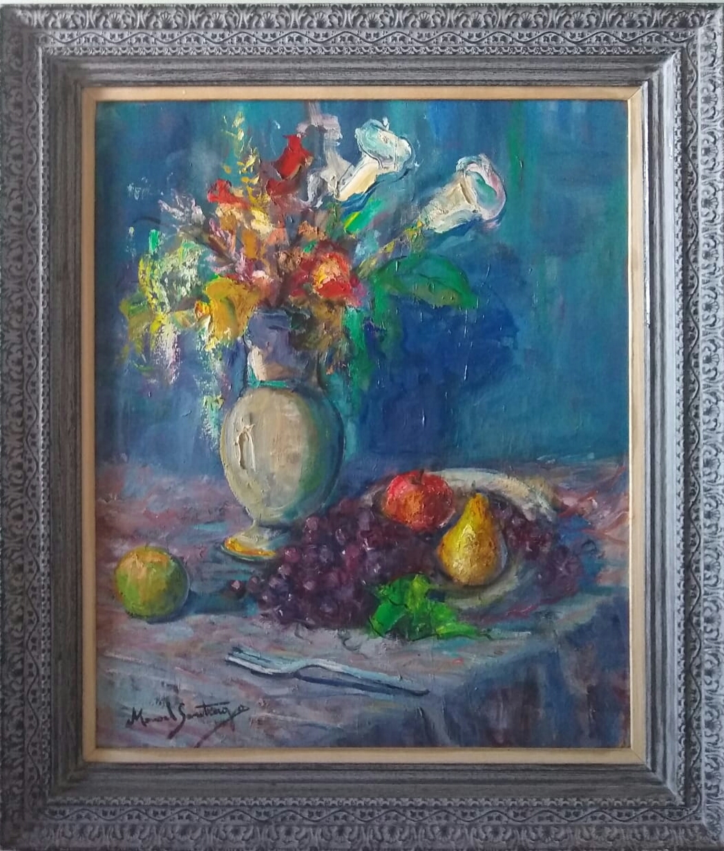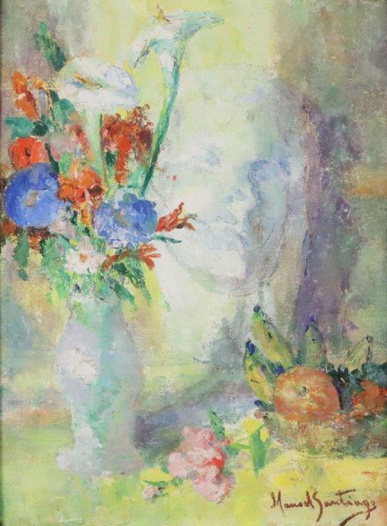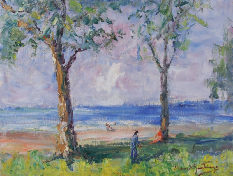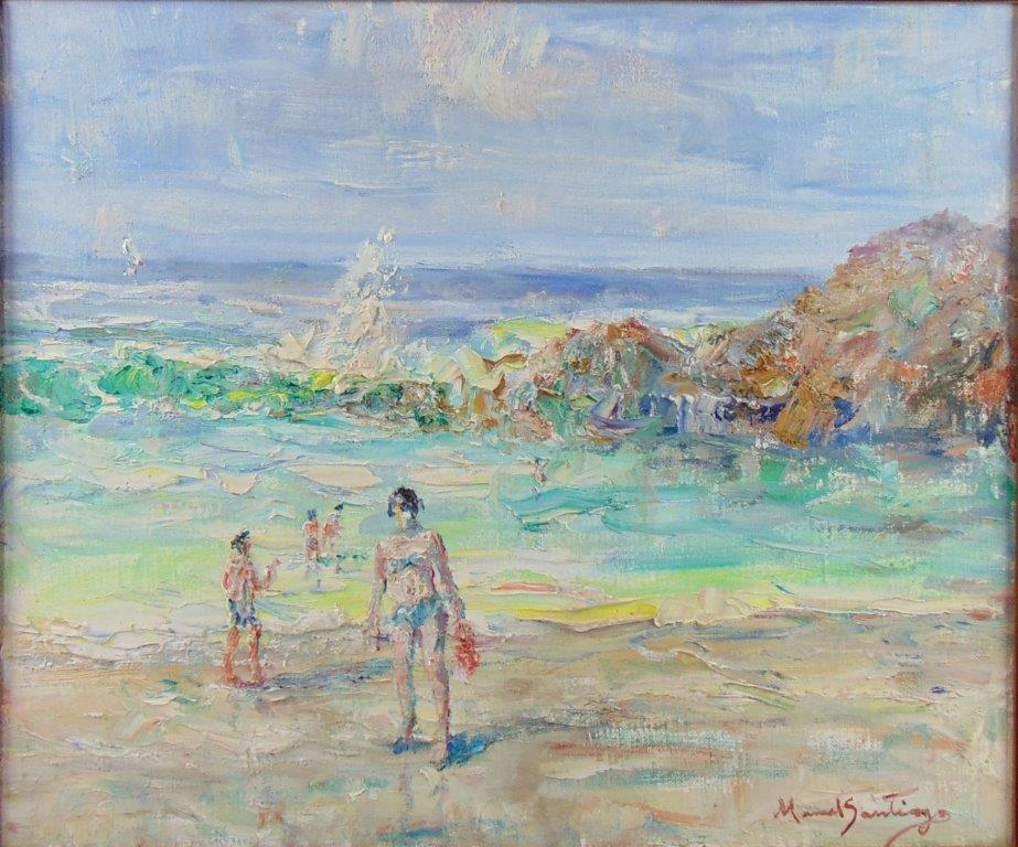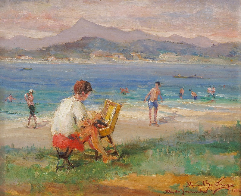 De volta ao Rio de Janeiro, em 1932, torna-se professor do Instituto de Belas Artes. Em 1934, passa a lecionar pintura e desenho no Núcleo Bernardelli, figurando entre seus alunos José Pancetti,Edson Motta, Bustamante Sá, Ado Malagoli, Rescála e Milton Dacosta. No início de sua carreira, Manoel Santiago pinta nus femininos e obras de temática ligada às lendas indígenas da Amazônia, realizadas em uma paleta luminosa, inspirada nos impressionistas, com pinceladas livres. Sua obra revela afinidade com aquela de Haydeá Santiago, sua esposa, embora a produção desta possua um caráter mais intimista, com temas ligados a cenas de gênero.