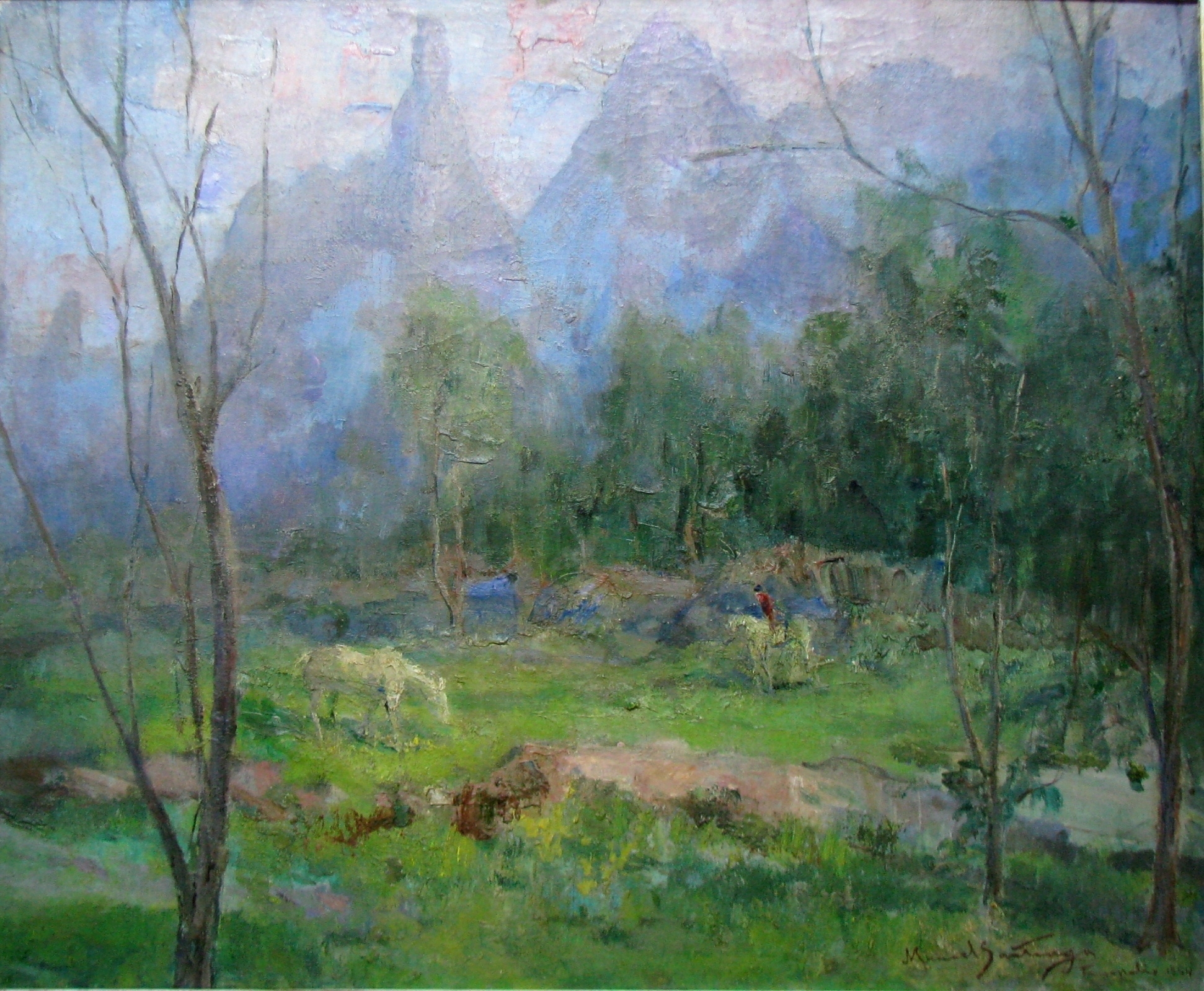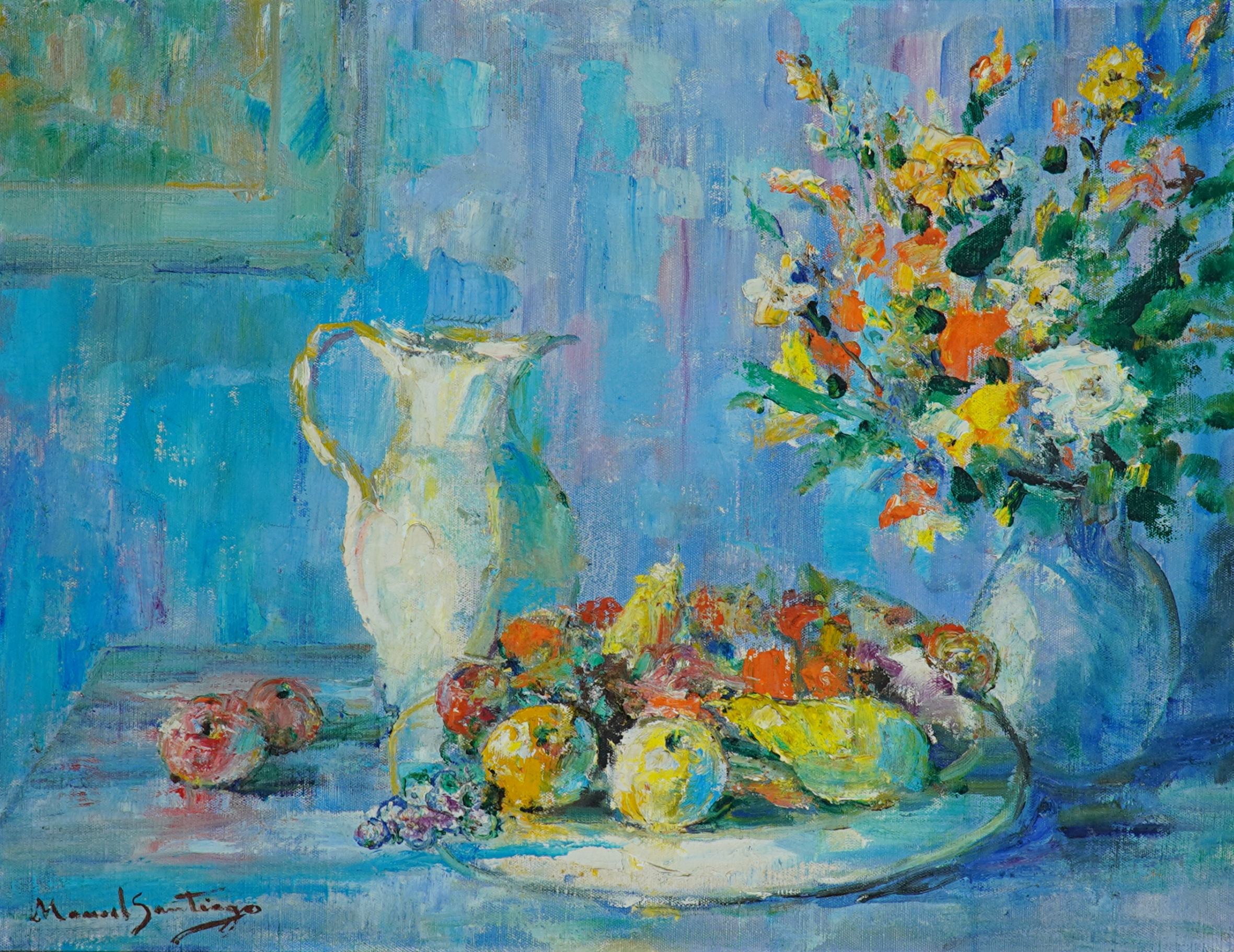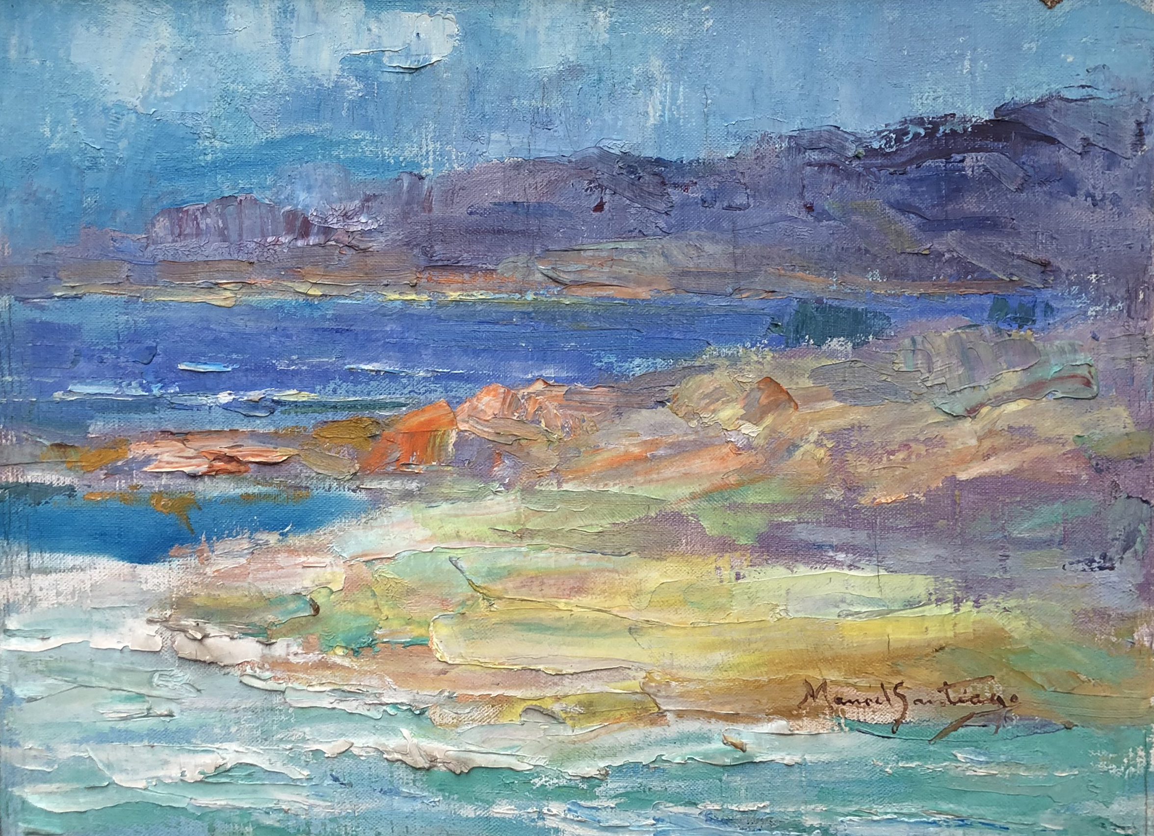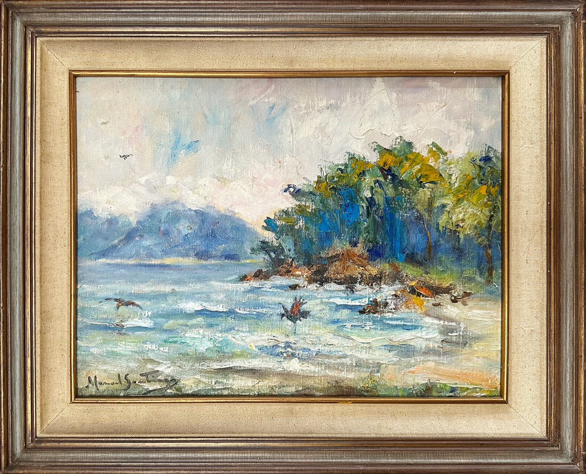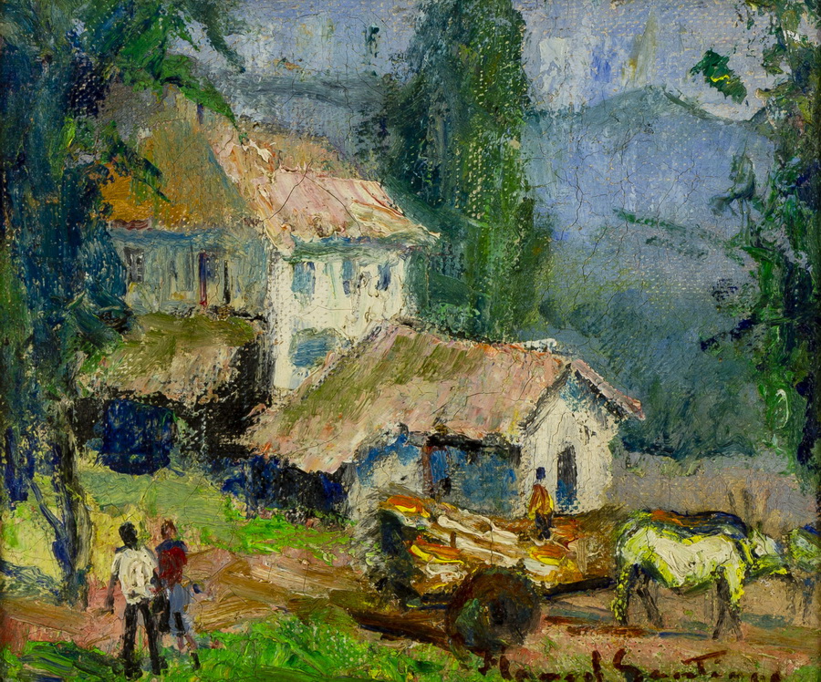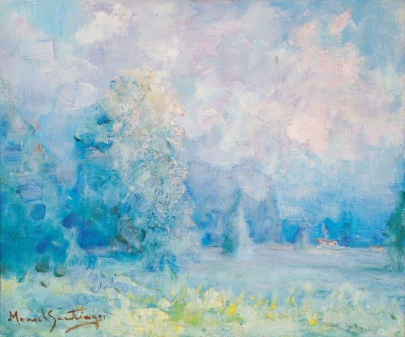 Manoel Santiago representa a paisagem do Rio de Janeiro em inúmeras telas. O crítico Angyone Costa, em artigo de 1932, elogia sua obra, afirmando que a luz de certos dias enevoados da terra carioca não tivera melhor intérprete, com exceção de Eliseu Visconti.1 Em Alto Teresópolis, 1947 destaca-se o uso apurado da cor e uma luz que transfigura a paisagem, além do emprego de pinceladas espessas.