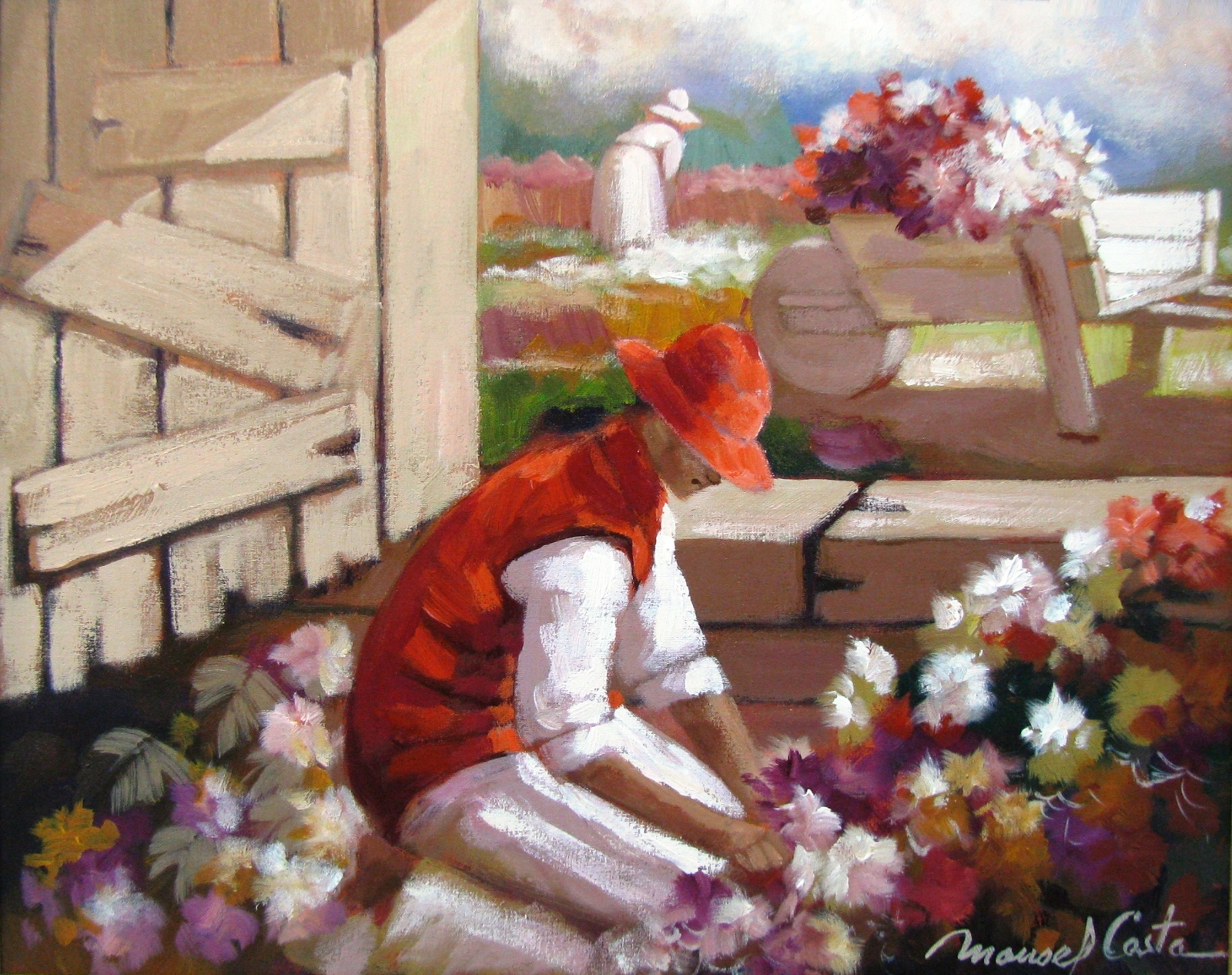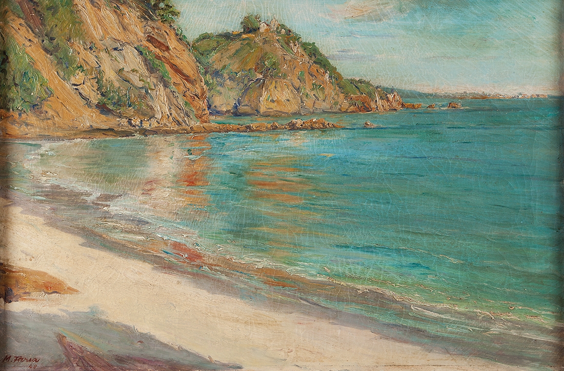 Manoel Santiago - Domingo na praia - 24,5 x 29 cm - Óleo sobre madeira - Assinatura canto inferior esquerdo
