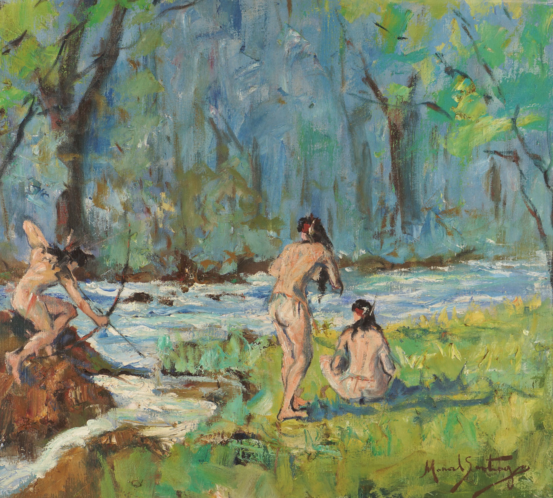 Manoel Santiago, o pintor das “Lendas Amazônicas”, em 1967 publica, com o apoio do governo do estado do Amazonas, um livro que é uma compilação de dez narrativas do lendário amazônico, ilustrado com gravuras do próprio pintor. Raimundo Moraes chamou o Curupira de “Deus defensor da floresta” num episódio semelhante ao da mitologia grega que é narrativa visual desde a antiguidade clássica: o encontro das ninfas e do sátiro.