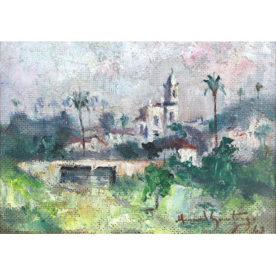 Manoel Santiago - Paisagem. Óleo sobre tela, 34x55 cm, sem data, A.C.I.E. e V. Com moldura