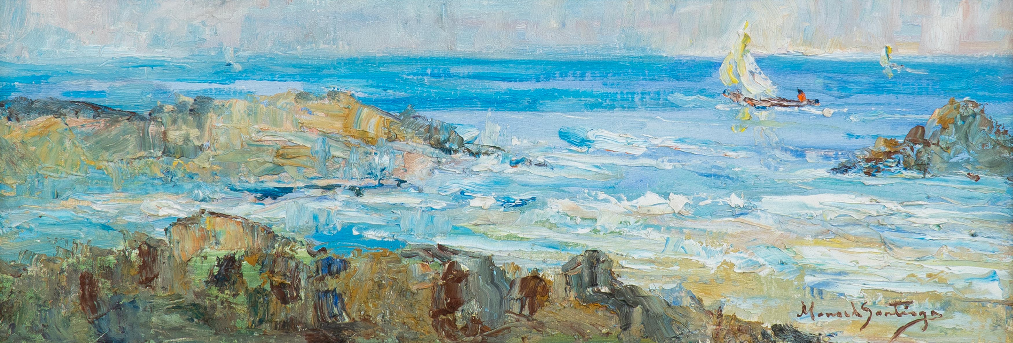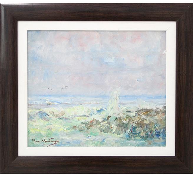 Manoel Santiago representa a paisagem do Rio de Janeiro em inúmeras telas. O crítico Angyone Costa, em artigo de 1932, elogia sua obra, afirmando que a luz de certos dias enevoados da terra carioca não tivera melhor intérprete, com exceção de Eliseu Visconti.1 Em Alto Teresópolis, 1947 destaca-se o uso apurado da cor e uma luz que transfigura a paisagem, além do emprego de pinceladas espessas.