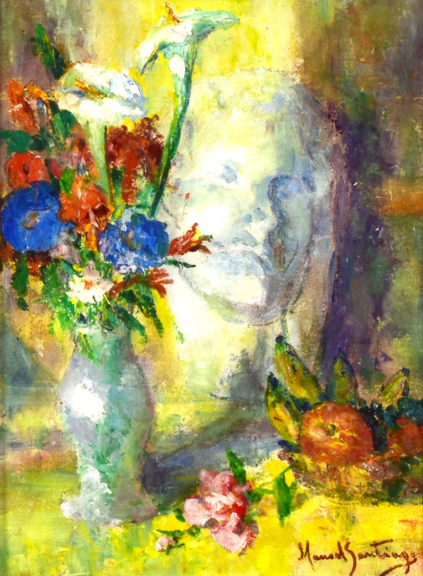 De volta ao Rio de Janeiro, em 1932, torna-se professor do Instituto de Belas Artes. Em 1934, passa a lecionar pintura e desenho no Núcleo Bernardelli, figurando entre seus alunos José Pancetti,Edson Motta, Bustamante Sá, Ado Malagoli, Rescála e Milton Dacosta. No início de sua carreira, Manoel Santiago pinta nus femininos e obras de temática ligada às lendas indígenas da Amazônia, realizadas em uma paleta luminosa, inspirada nos impressionistas, com pinceladas livres. Sua obra revela afinidade com aquela de Haydeá Santiago, sua esposa, embora a produção desta possua um caráter mais intimista, com temas ligados a cenas de gênero.