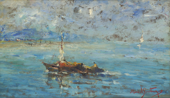 Manoel Santiago - Domingo na praia - 24,5 x 29 cm - Óleo sobre madeira - Assinatura canto inferior esquerdo