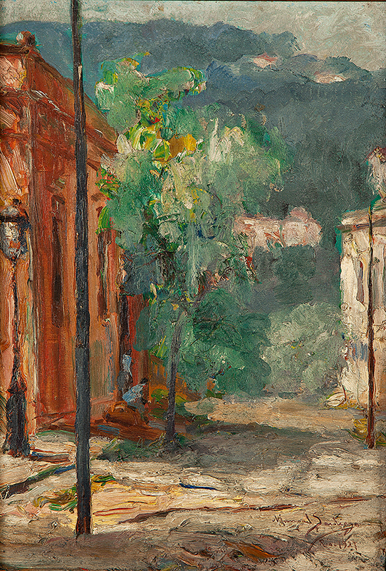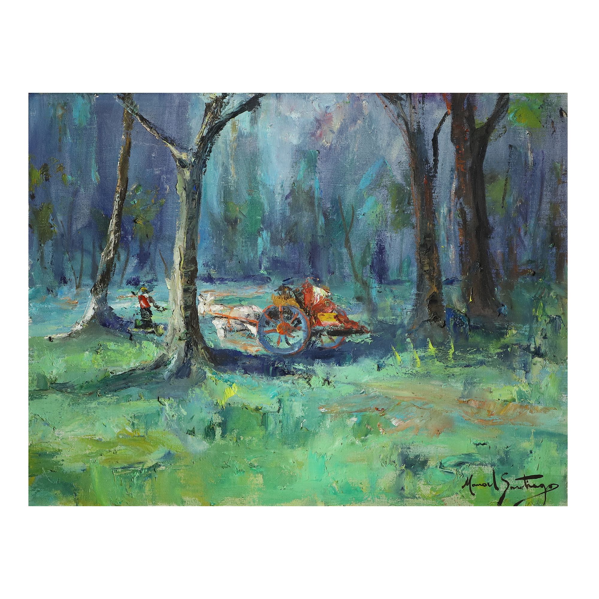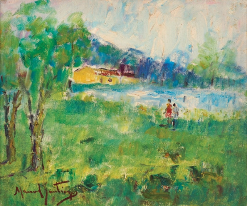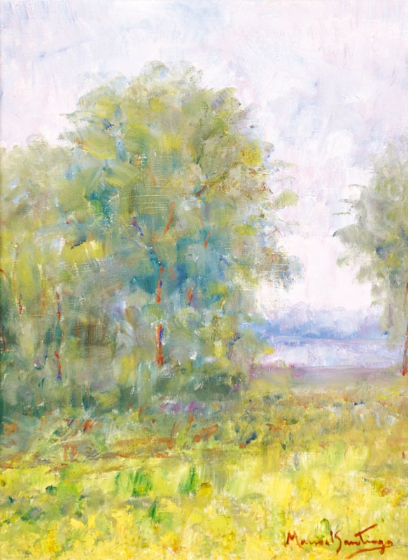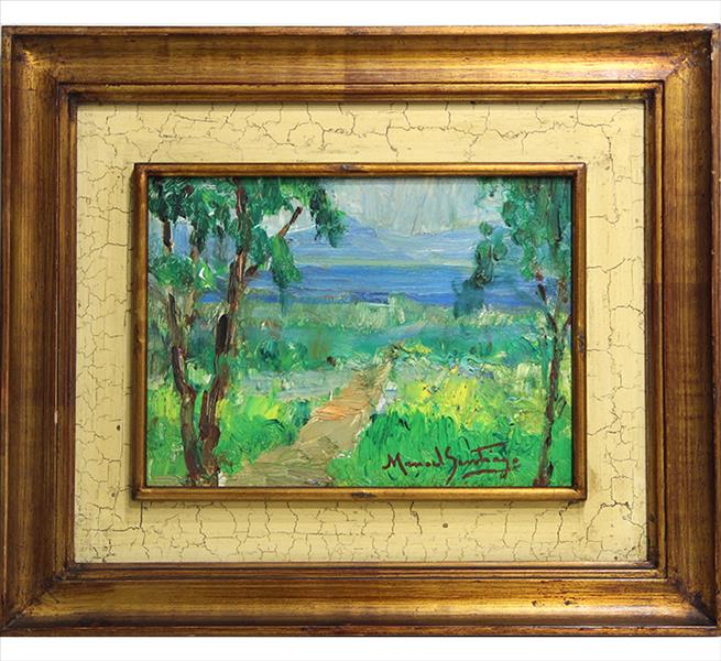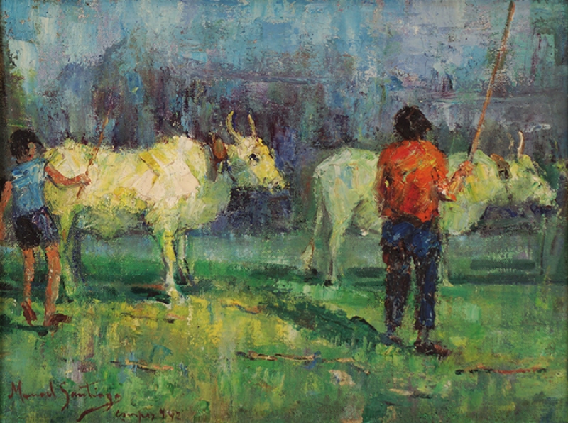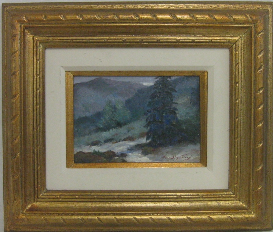 Manoel Santiago representa a paisagem do Rio de Janeiro em inúmeras telas. O crítico Angyone Costa, em artigo de 1932, elogia sua obra, afirmando que a luz de certos dias enevoados da terra carioca não tivera melhor intérprete, com exceção de Eliseu Visconti.1 Em Alto Teresópolis, 1947 destaca-se o uso apurado da cor e uma luz que transfigura a paisagem, além do emprego de pinceladas espessas.
