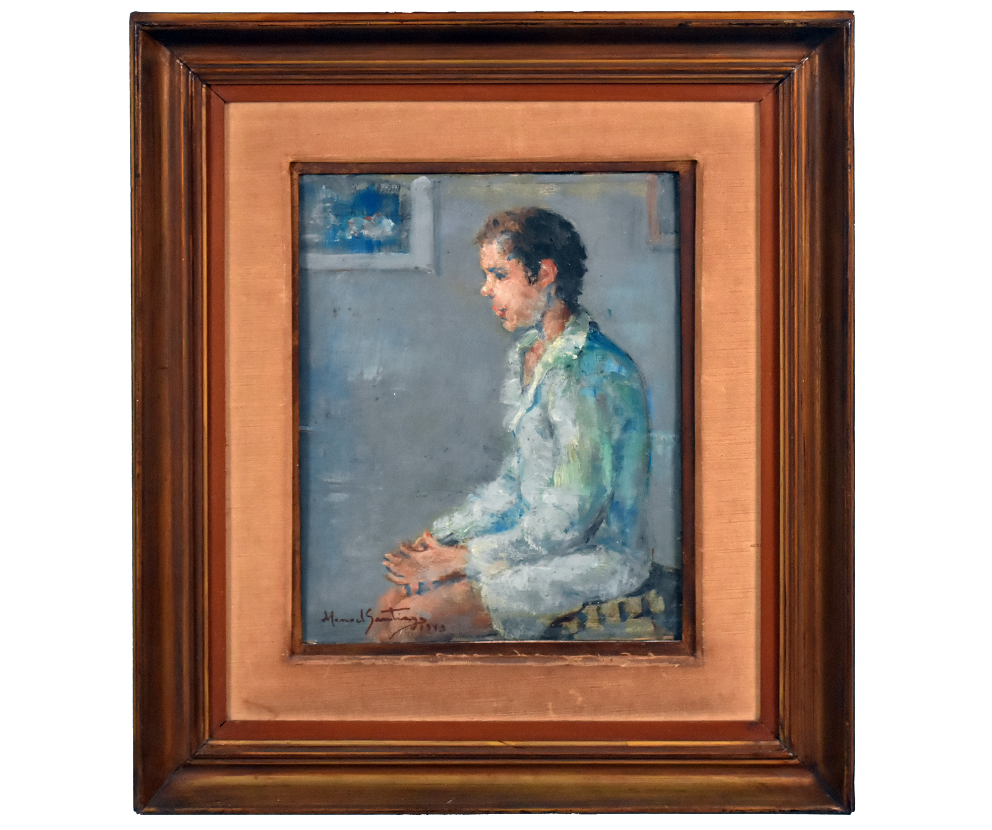 De volta ao Rio de Janeiro, em 1932, torna-se professor do Instituto de Belas Artes. Em 1934, passa a lecionar pintura e desenho no Núcleo Bernardelli, figurando entre seus alunos José Pancetti,Edson Motta, Bustamante Sá, Ado Malagoli, Rescála e Milton Dacosta. No início de sua carreira, Manoel Santiago pinta nus femininos e obras de temática ligada às lendas indígenas da Amazônia, realizadas em uma paleta luminosa, inspirada nos impressionistas, com pinceladas livres. Sua obra revela afinidade com aquela de Haydeá Santiago, sua esposa, embora a produção desta possua um caráter mais intimista, com temas ligados a cenas de gênero.