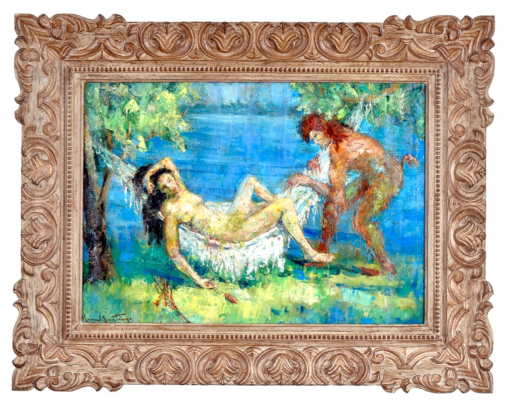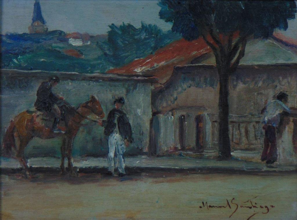 Em paris seu núcleo de convívio écom velhos amigos como: Di Cavalcanti, Quirino Campofiorito, Armando Vianna e Candido Portinari, que se reunião no Café La Rotonde, de Montpamasse, Aliás, todos estudaram juntos com Chambelland e Batista da Costa no Rio de Janeiro. Portinari e Santiago tinham uma relação próxima e partilhavam do  contexto de redefinição da arte nacional, onde Santiago imprimiu a valorização das lendas da Amazônia um instrumento de nacionalização da arte.