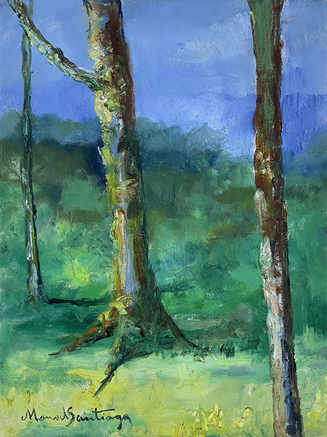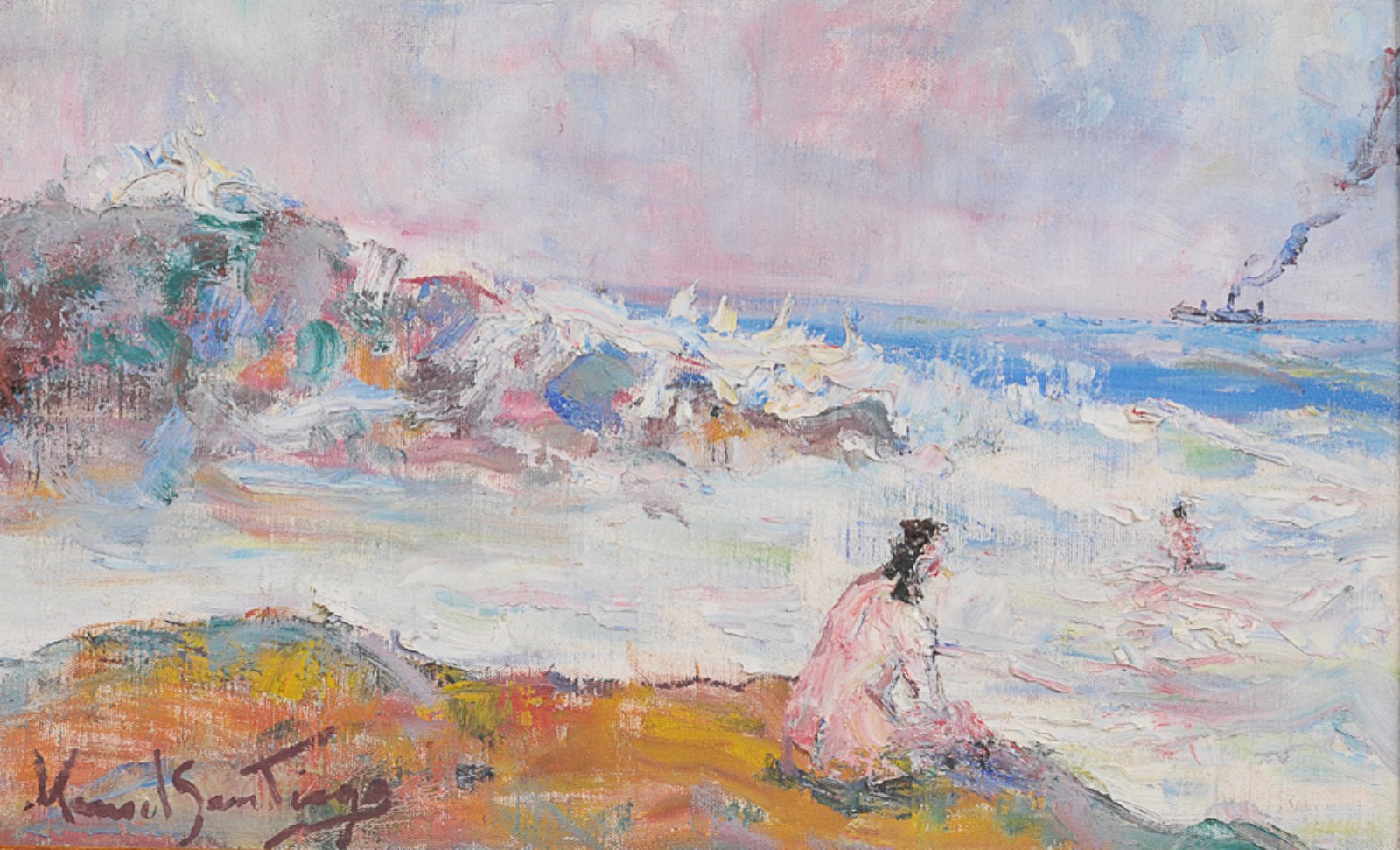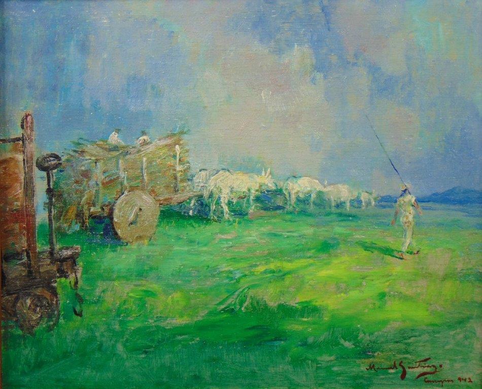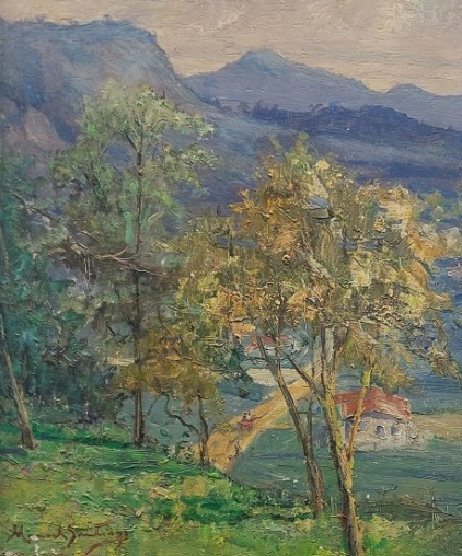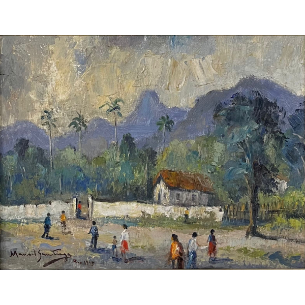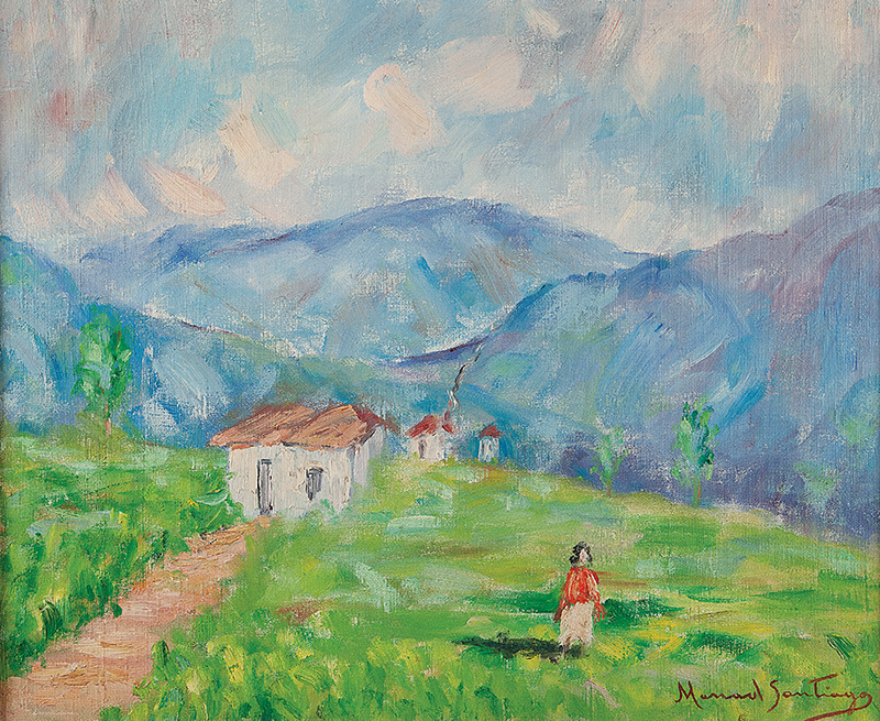 Manoel Santiago representa a paisagem do Rio de Janeiro em inúmeras telas. O crítico Angyone Costa, em artigo de 1932, elogia sua obra, afirmando que a luz de certos dias enevoados da terra carioca não tivera melhor intérprete, com exceção de Eliseu Visconti.1 Em Alto Teresópolis, 1947 destaca-se o uso apurado da cor e uma luz que transfigura a paisagem, além do emprego de pinceladas espessas.