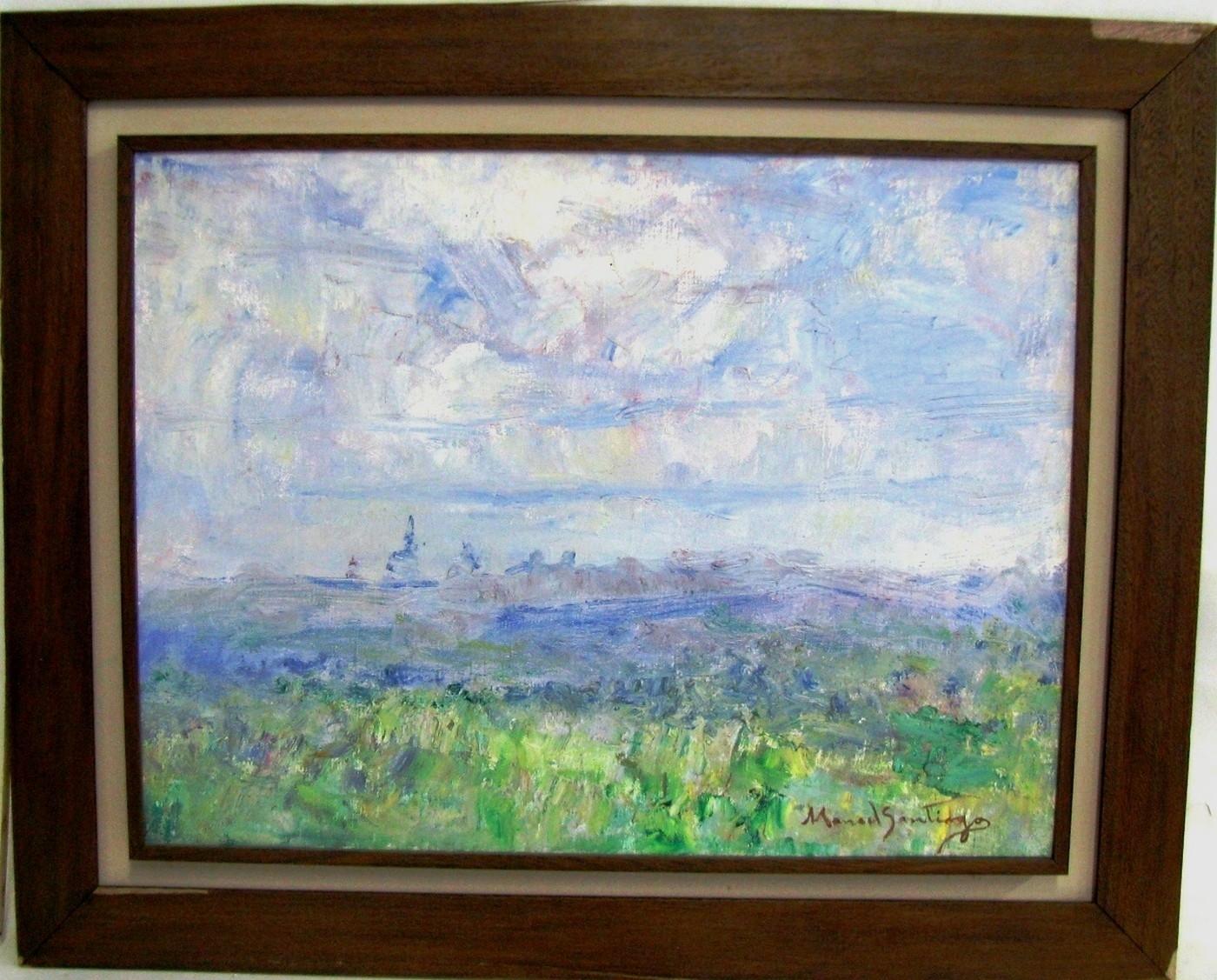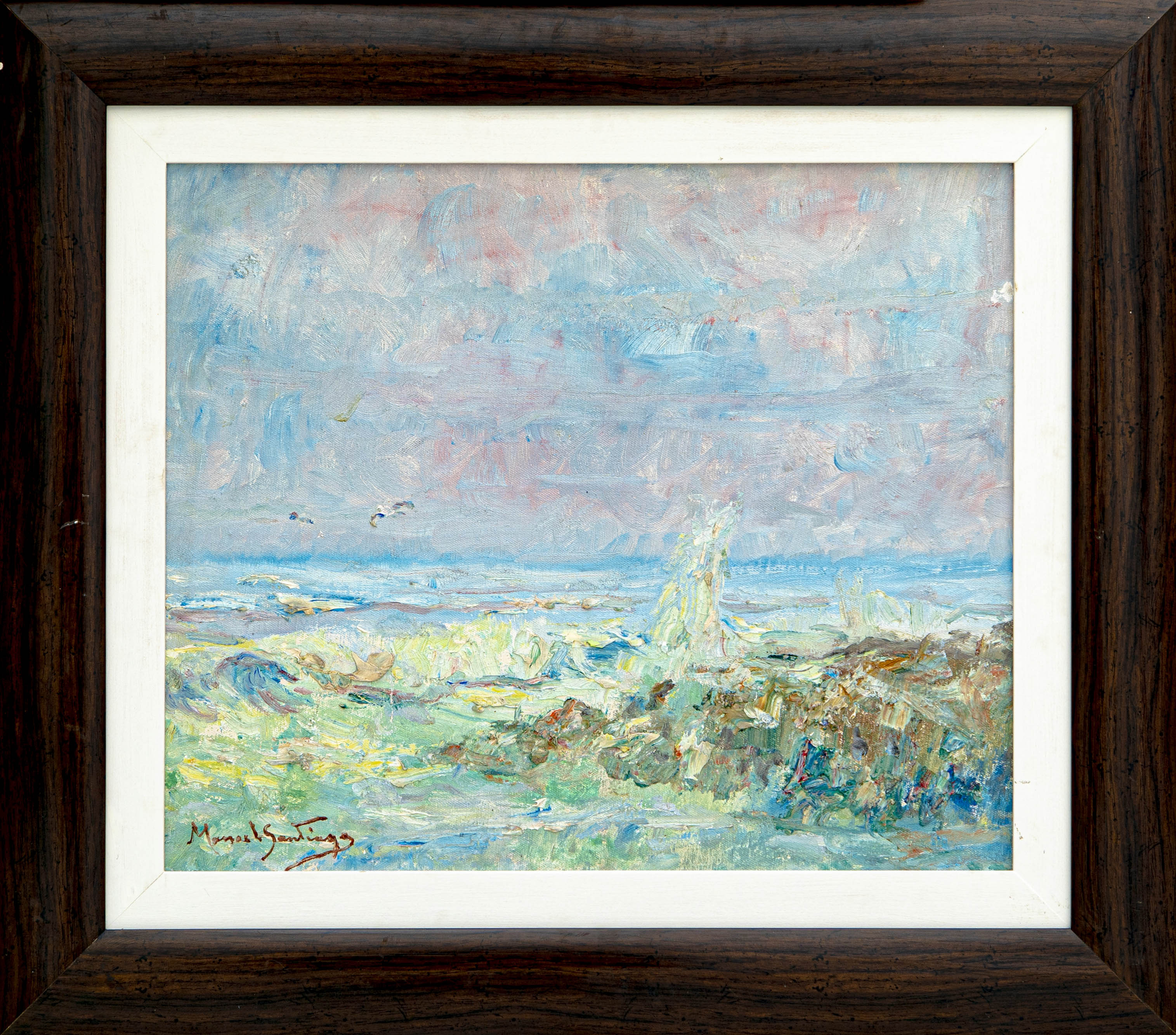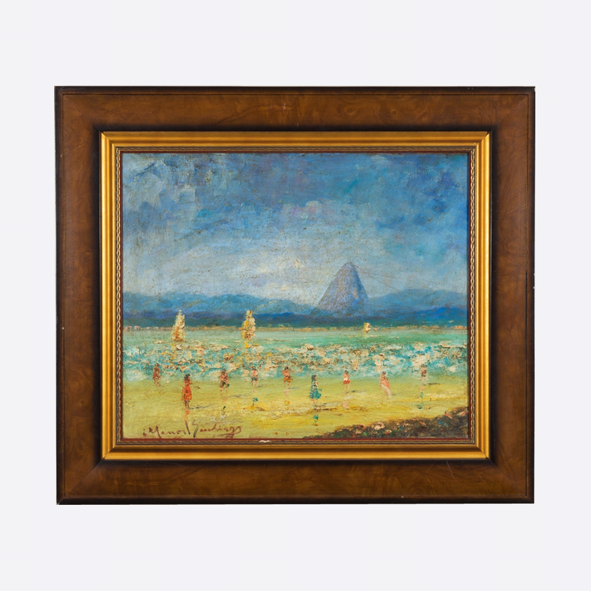 Manoel Santiago representa a paisagem do Rio de Janeiro em inúmeras telas. O crítico Angyone Costa, em artigo de 1932, elogia sua obra, afirmando que a luz de certos dias enevoados da terra carioca não tivera melhor intérprete, com exceção de Eliseu Visconti.1 Em Alto Teresópolis, 1947 destaca-se o uso apurado da cor e uma luz que transfigura a paisagem, além do emprego de pinceladas espessas.