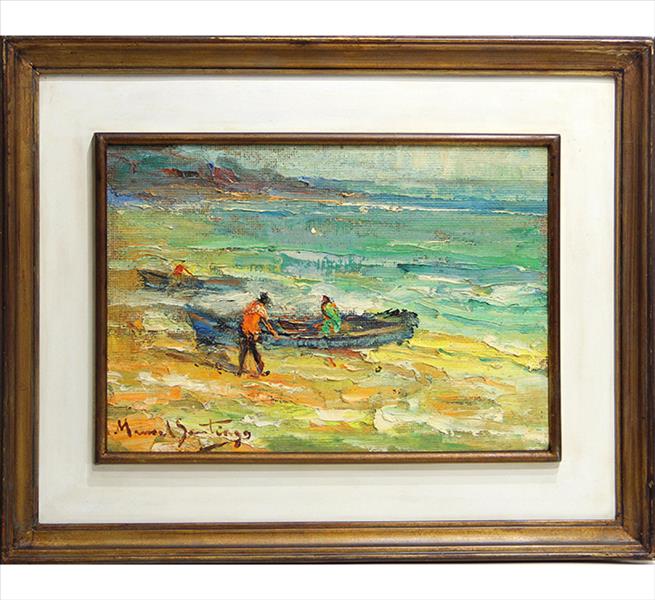 De volta ao Rio de Janeiro, em 1932, torna-se professor do Instituto de Belas Artes. Em 1934, passa a lecionar pintura e desenho no Núcleo Bernardelli, figurando entre seus alunos José Pancetti,Edson Motta, Bustamante Sá, Ado Malagoli, Rescála e Milton Dacosta. No início de sua carreira, Manoel Santiago pinta nus femininos e obras de temática ligada às lendas indígenas da Amazônia, realizadas em uma paleta luminosa, inspirada nos impressionistas, com pinceladas livres. Sua obra revela afinidade com aquela de Haydeá Santiago, sua esposa, embora a produção desta possua um caráter mais intimista, com temas ligados a cenas de gênero.