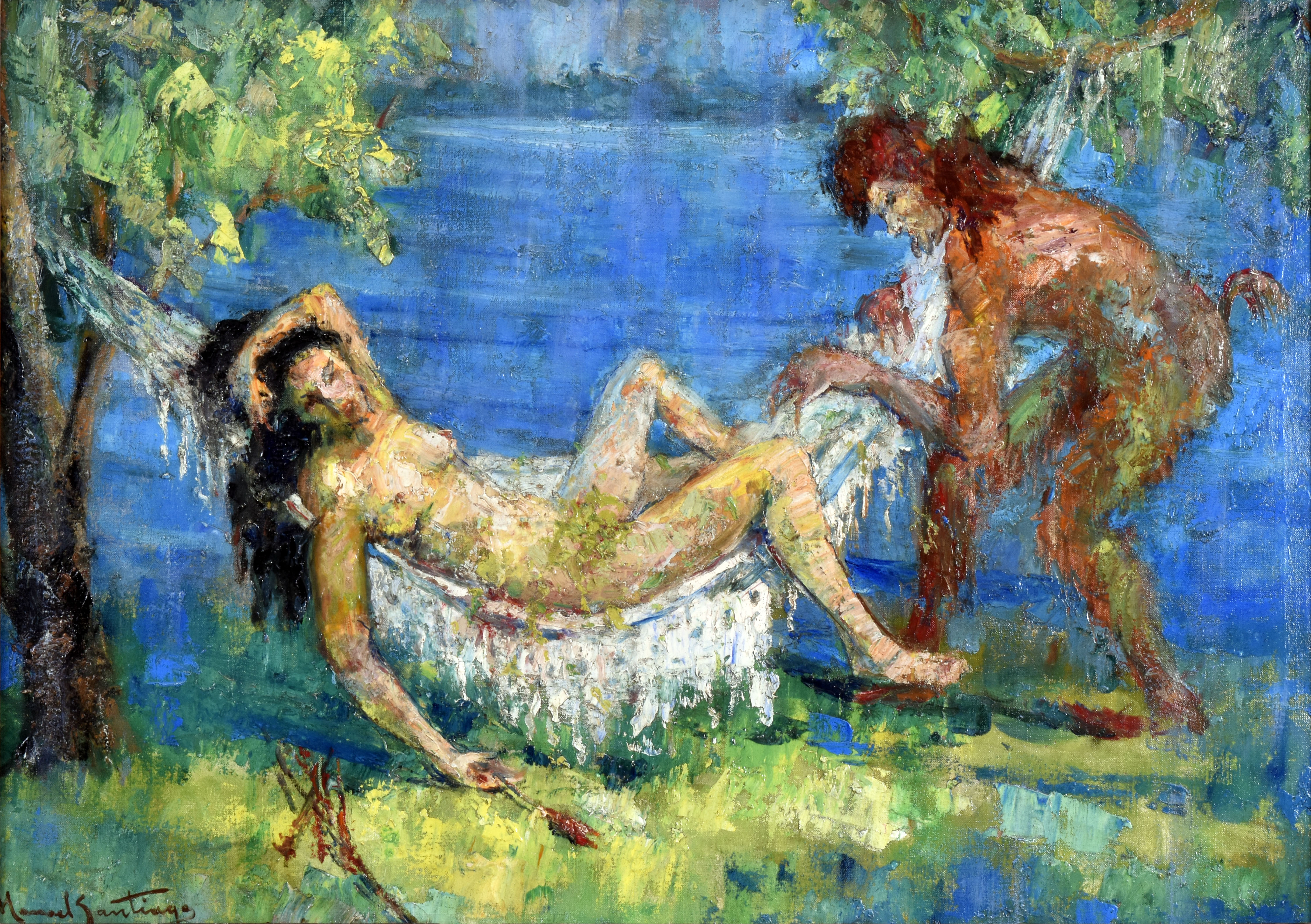Manoel Santiago, o pintor das “Lendas Amazônicas”, em 1967 publica, com o apoio do governo do estado do Amazonas, um livro que é uma compilação de dez narrativas do lendário amazônico, ilustrado com gravuras do próprio pintor. Raimundo Moraes chamou o Curupira de “Deus defensor da floresta” num episódio semelhante ao da mitologia grega que é narrativa visual desde a antiguidade clássica: o encontro das ninfas e do sátiro.