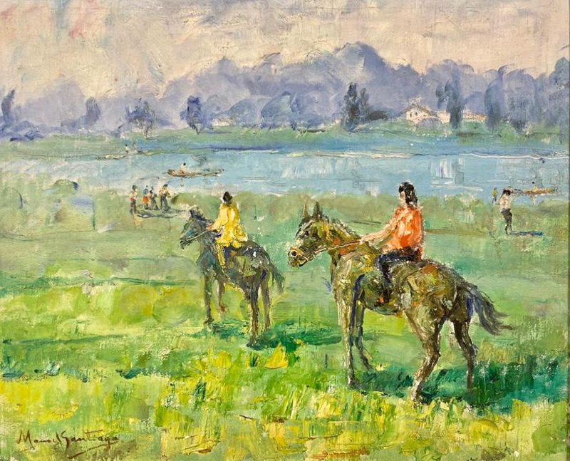 Em paris seu núcleo de convívio écom velhos amigos como: Di Cavalcanti, Quirino Campofiorito, Armando Vianna e Candido Portinari, que se reunião no Café La Rotonde, de Montpamasse, Aliás, todos estudaram juntos com Chambelland e Batista da Costa no Rio de Janeiro. Portinari e Santiago tinham uma relação próxima e partilhavam do  contexto de redefinição da arte nacional, onde Santiago imprimiu a valorização das lendas da Amazônia um instrumento de nacionalização da arte.
