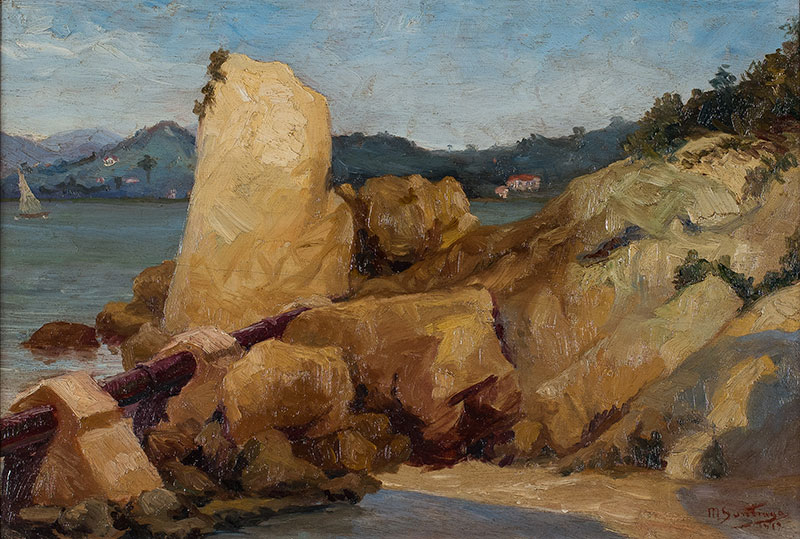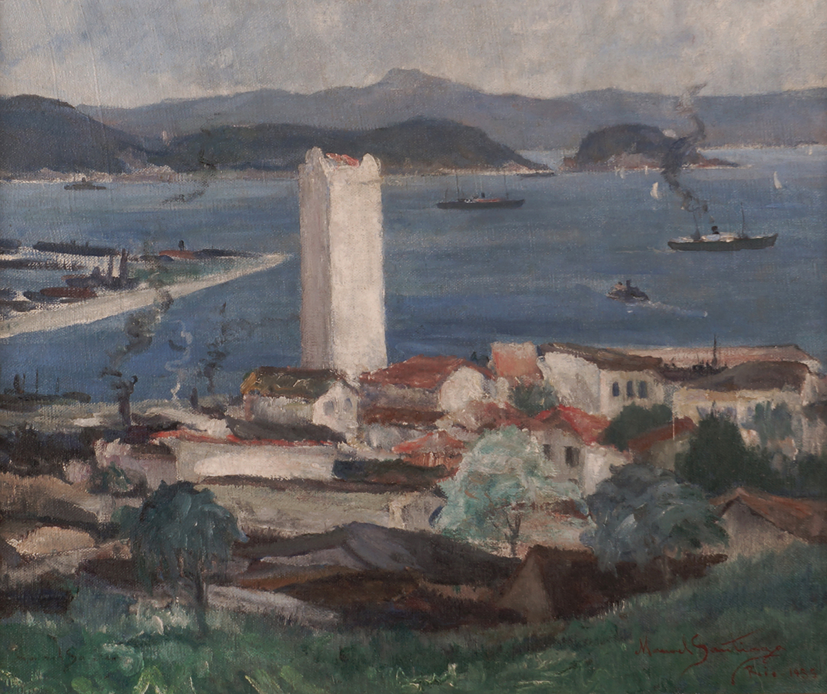 Manoel Santiago representa a paisagem do Rio de Janeiro em inúmeras telas. O crítico Angyone Costa, em artigo de 1932, elogia sua obra, afirmando que a luz de certos dias enevoados da terra carioca não tivera melhor intérprete, com exceção de Eliseu Visconti.1 Em Alto Teresópolis, 1947 destaca-se o uso apurado da cor e uma luz que transfigura a paisagem, além do emprego de pinceladas espessas.