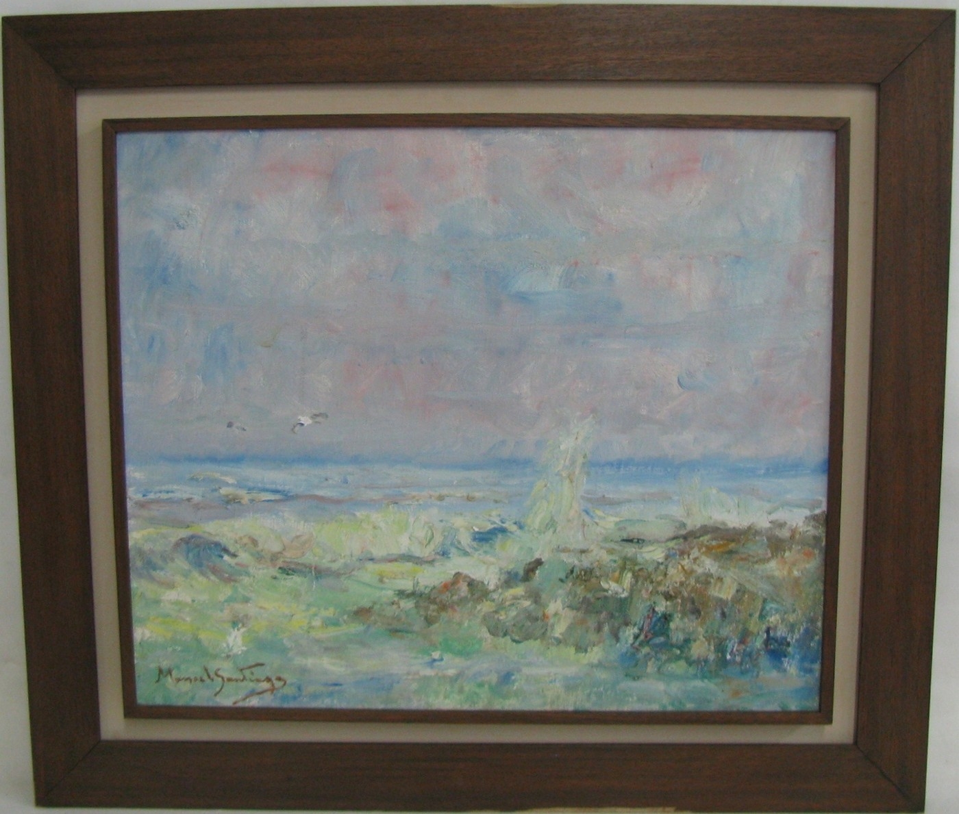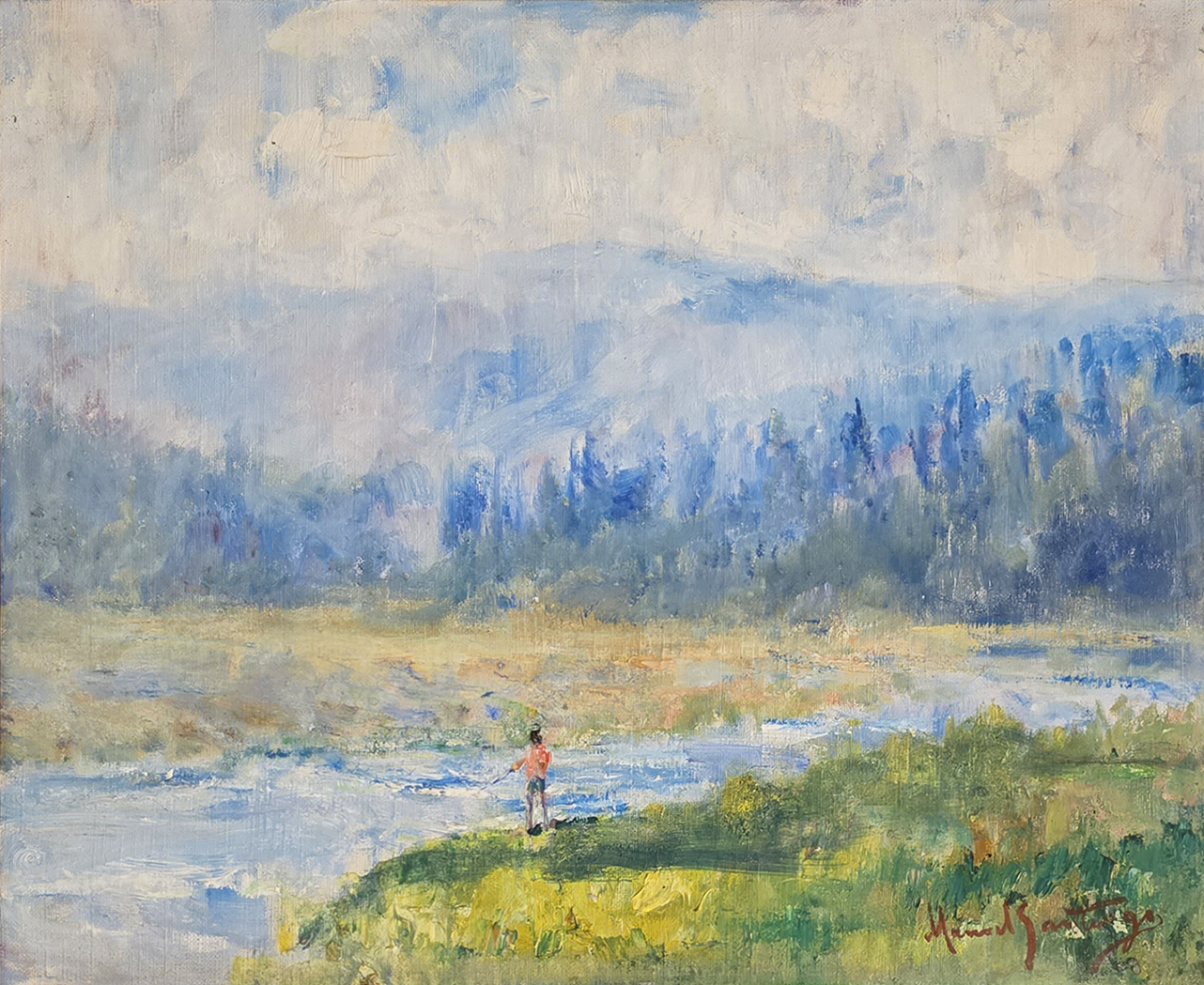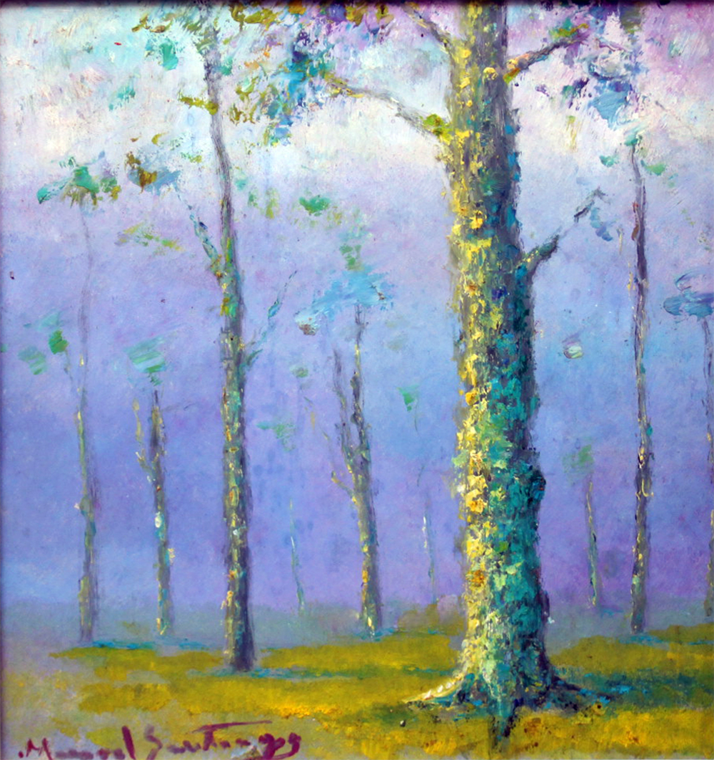 Manoel Santiago representa a paisagem do Rio de Janeiro em inúmeras telas. O crítico Angyone Costa, em artigo de 1932, elogia sua obra, afirmando que a luz de certos dias enevoados da terra carioca não tivera melhor intérprete, com exceção de Eliseu Visconti.1 Em Alto Teresópolis, 1947 destaca-se o uso apurado da cor e uma luz que transfigura a paisagem, além do emprego de pinceladas espessas.