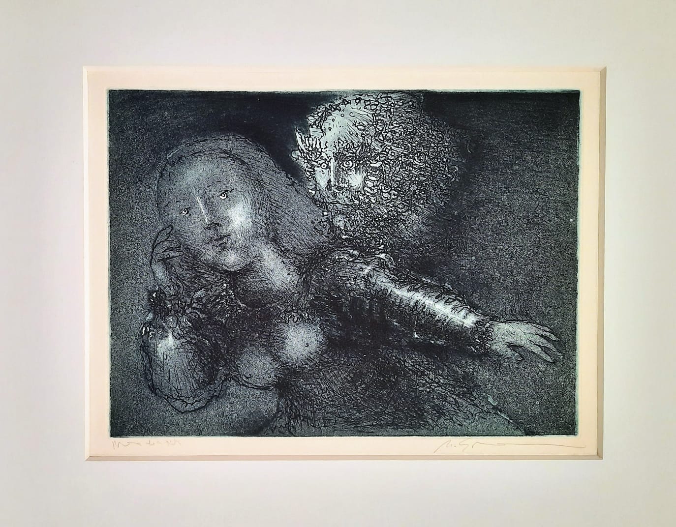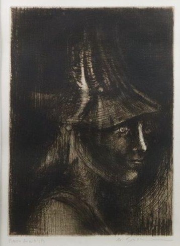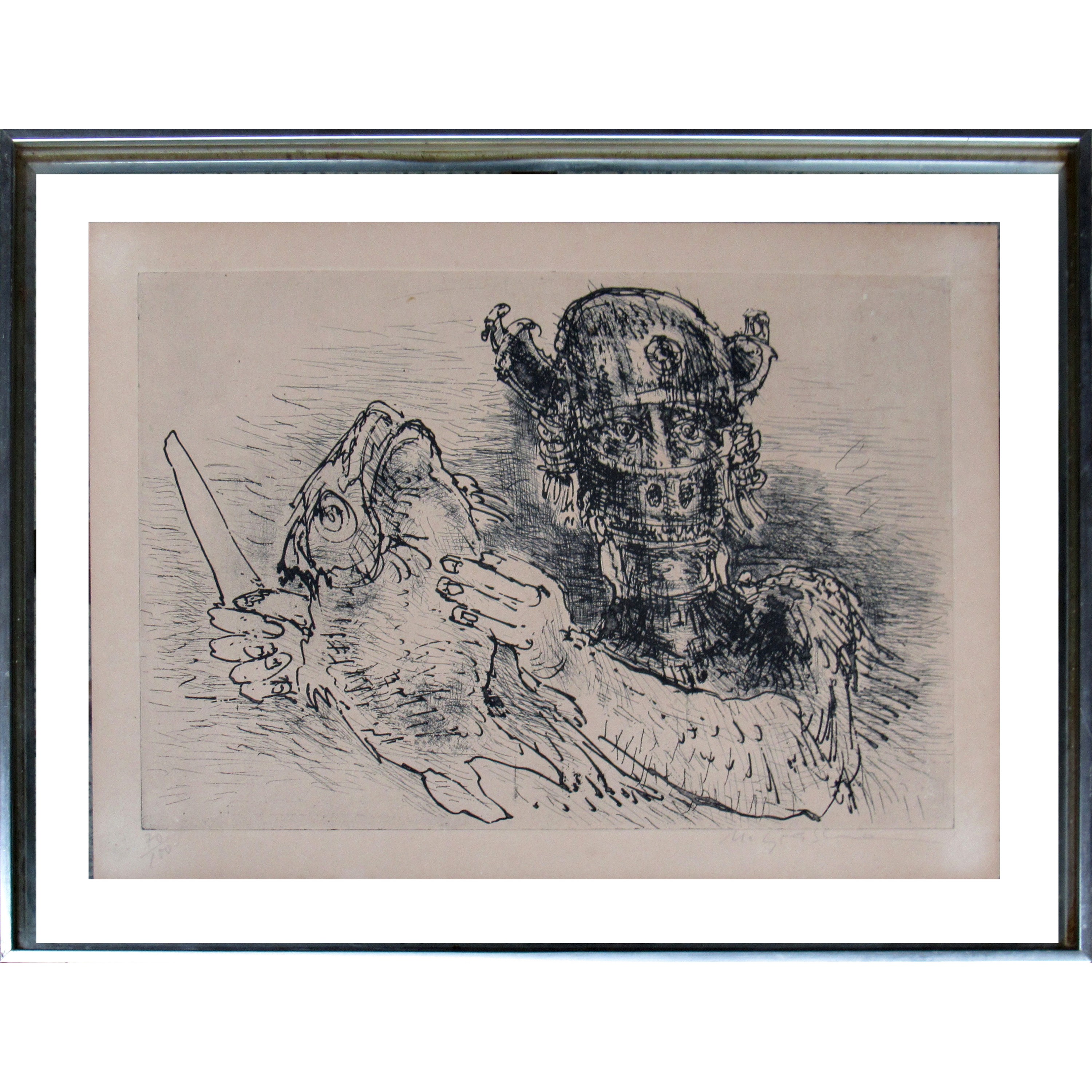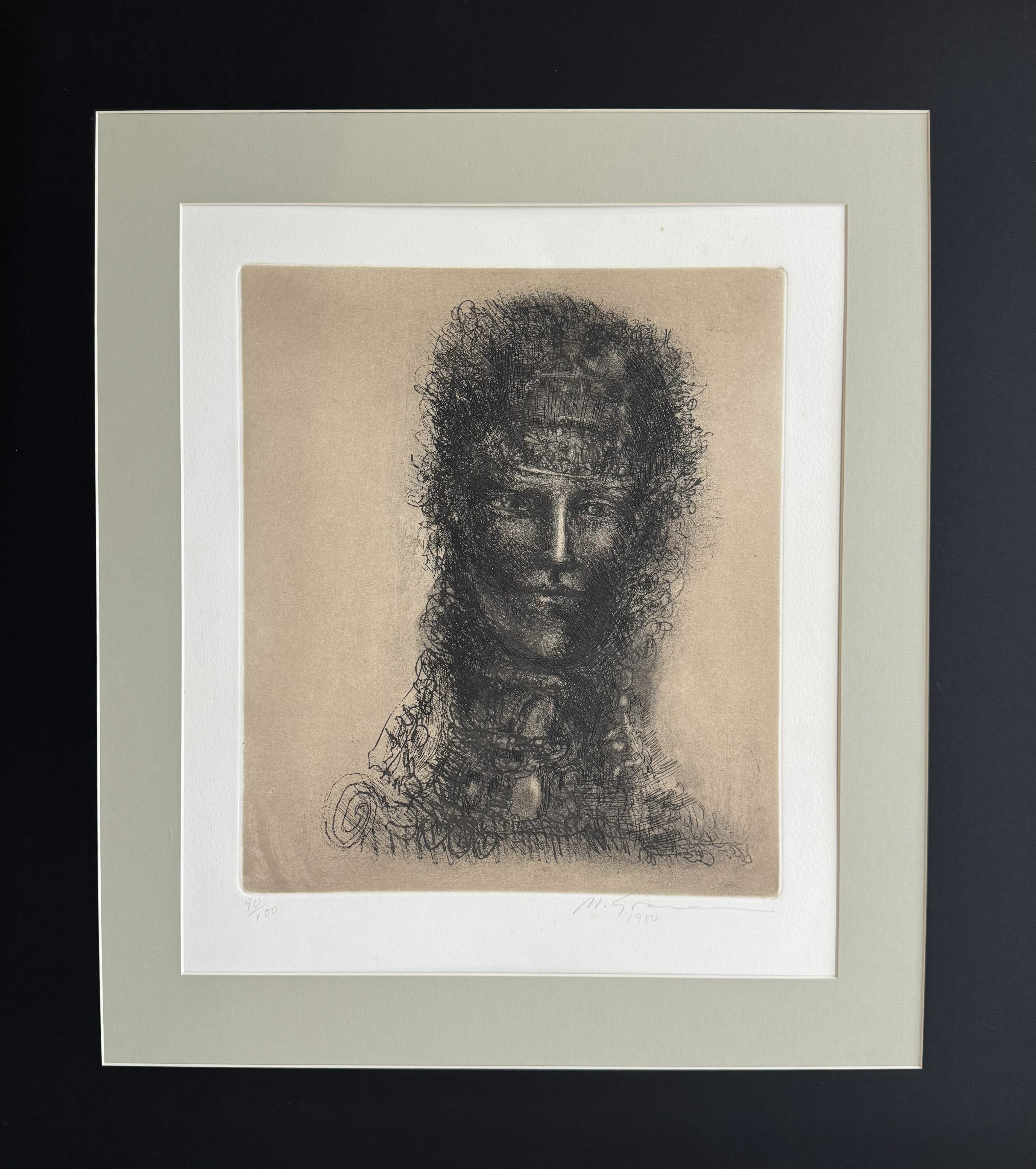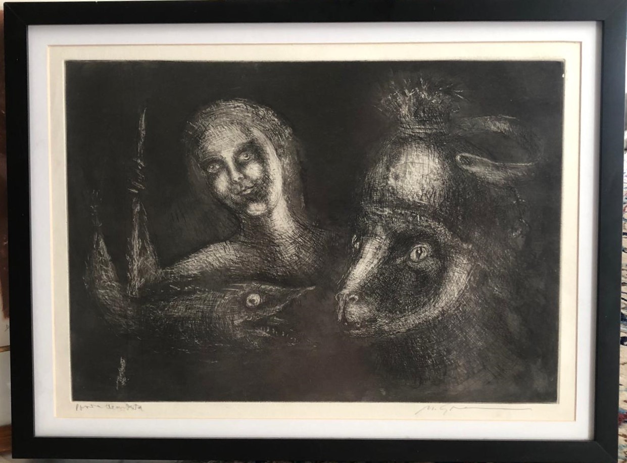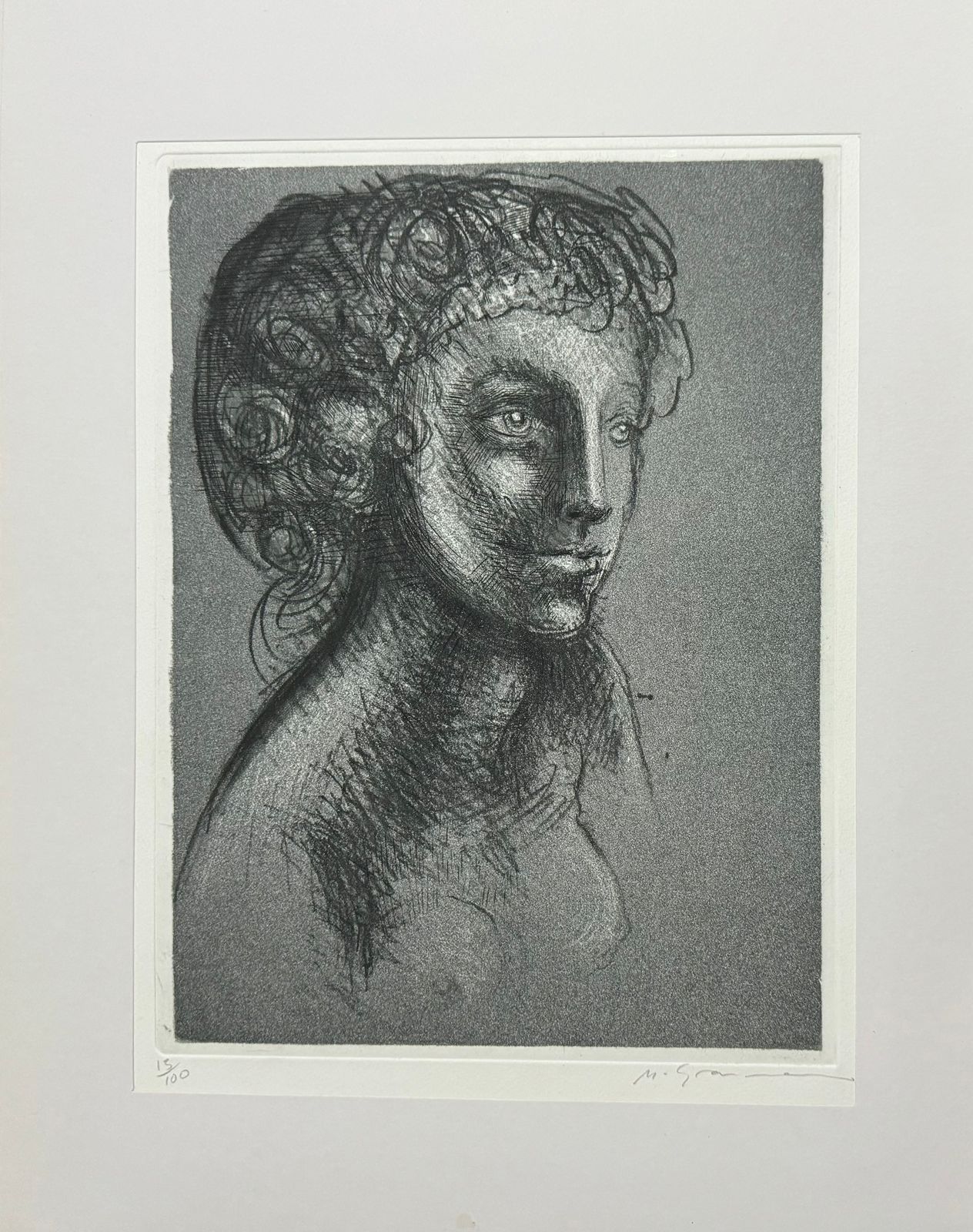Marcelo Grassmann (1925–2013) – Figura. Gravura em metal, prova do artista (P.A.). Gravador, desenhista, ilustrador e professor brasileiro, referência central da gravura no Brasil, com formação técnica sólida e atuação como ilustrador da imprensa. Ass. CID. Dimensões: 42 × 32 cm.