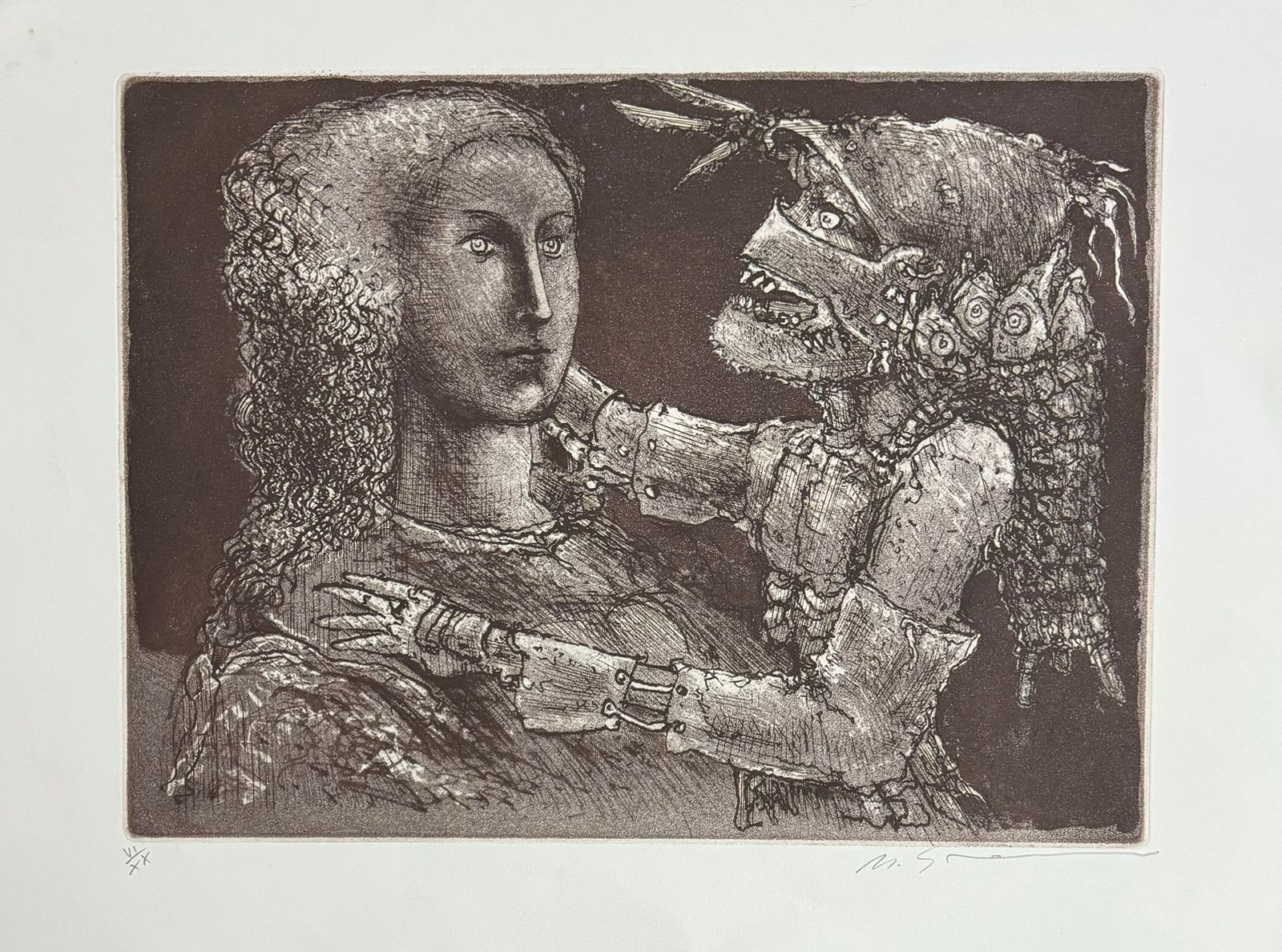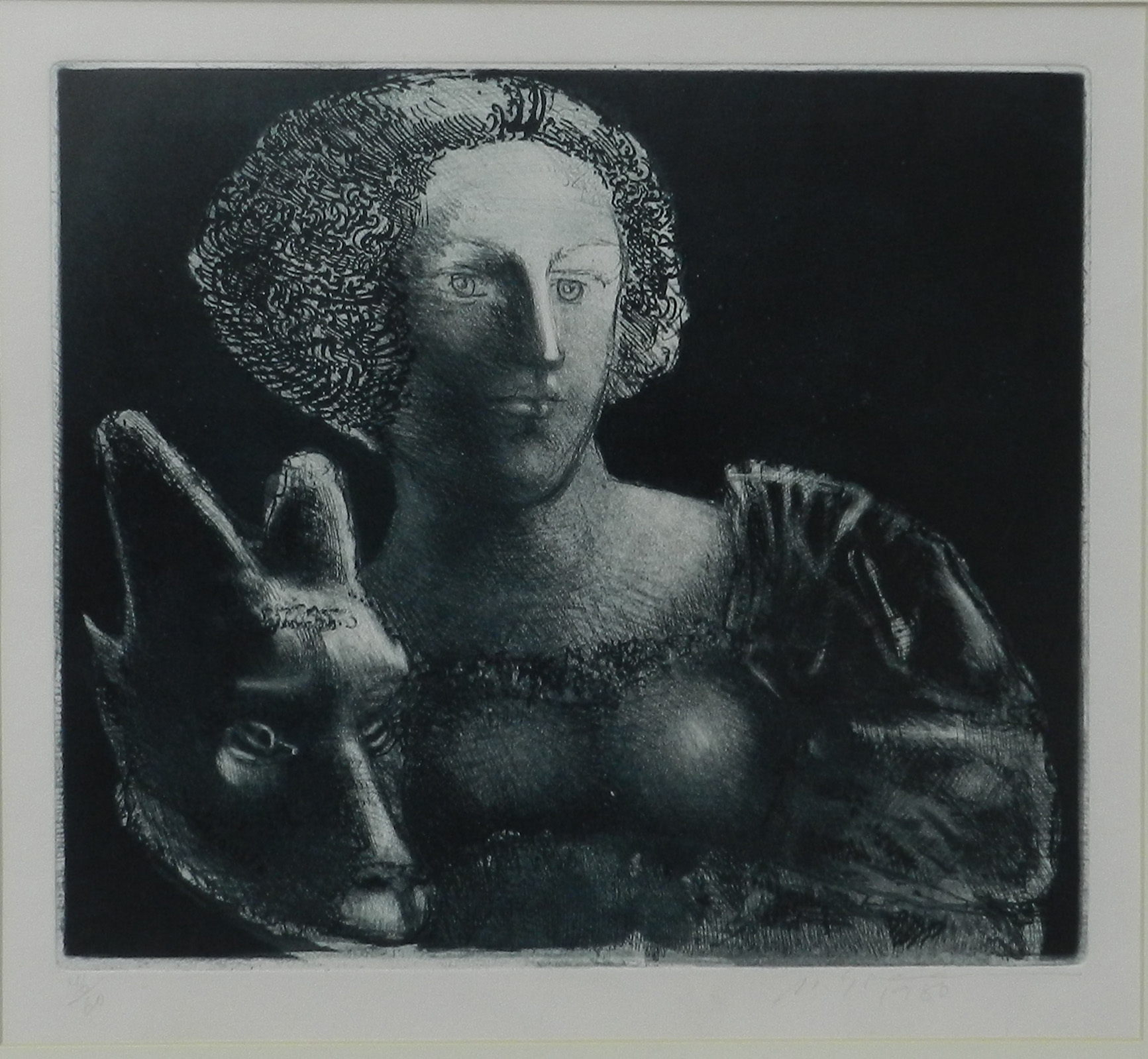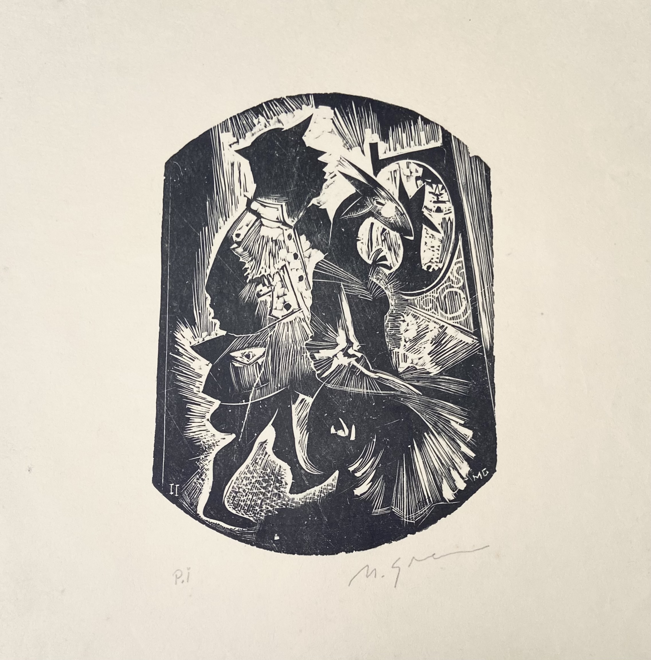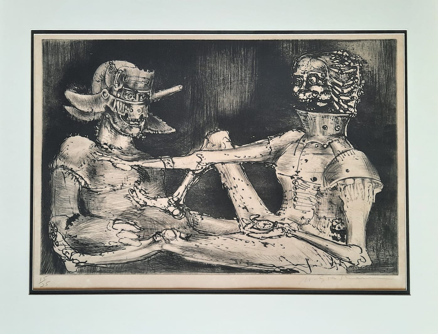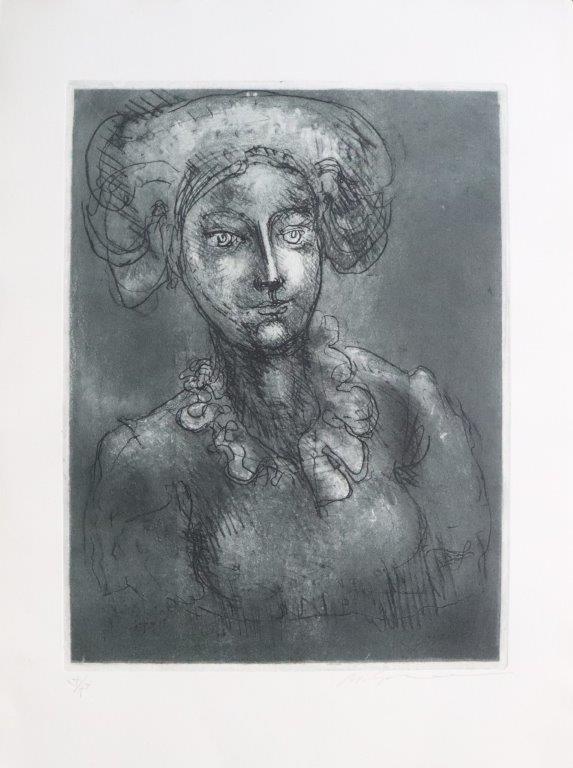 Marcelo Grassmann (1925–2013) – Figura. Gravura em metal, prova do artista (P.A.). Gravador, desenhista, ilustrador e professor brasileiro, referência central da gravura no Brasil, com formação técnica sólida e atuação como ilustrador da imprensa. Ass. CID. Dimensões: 42 × 32 cm.