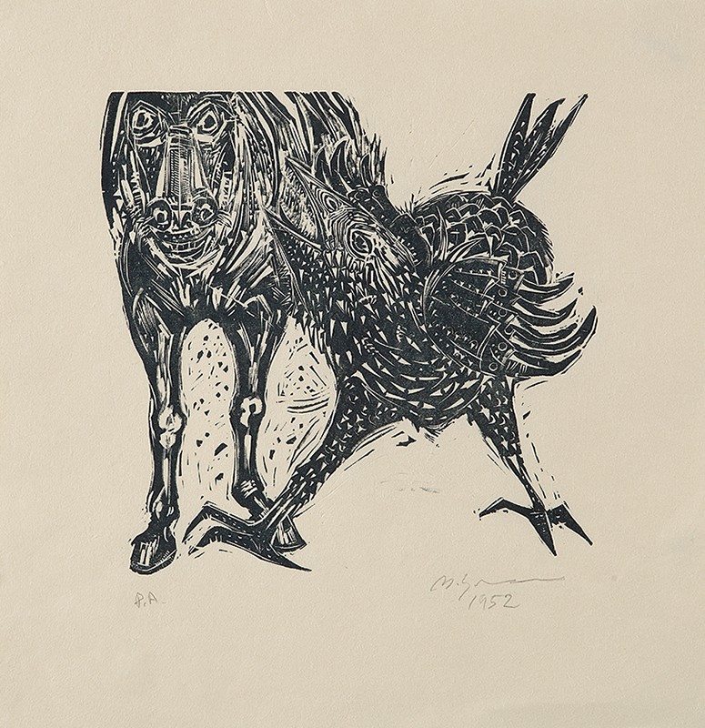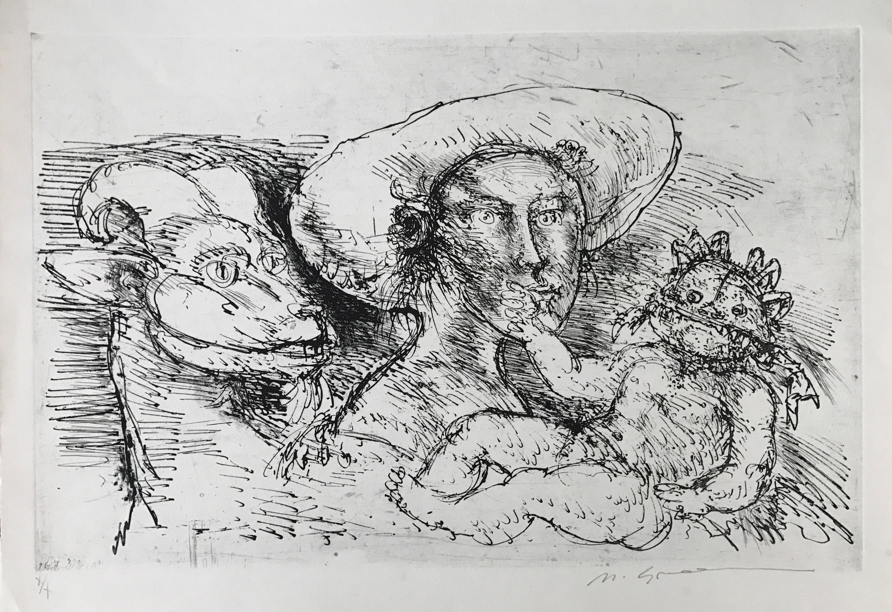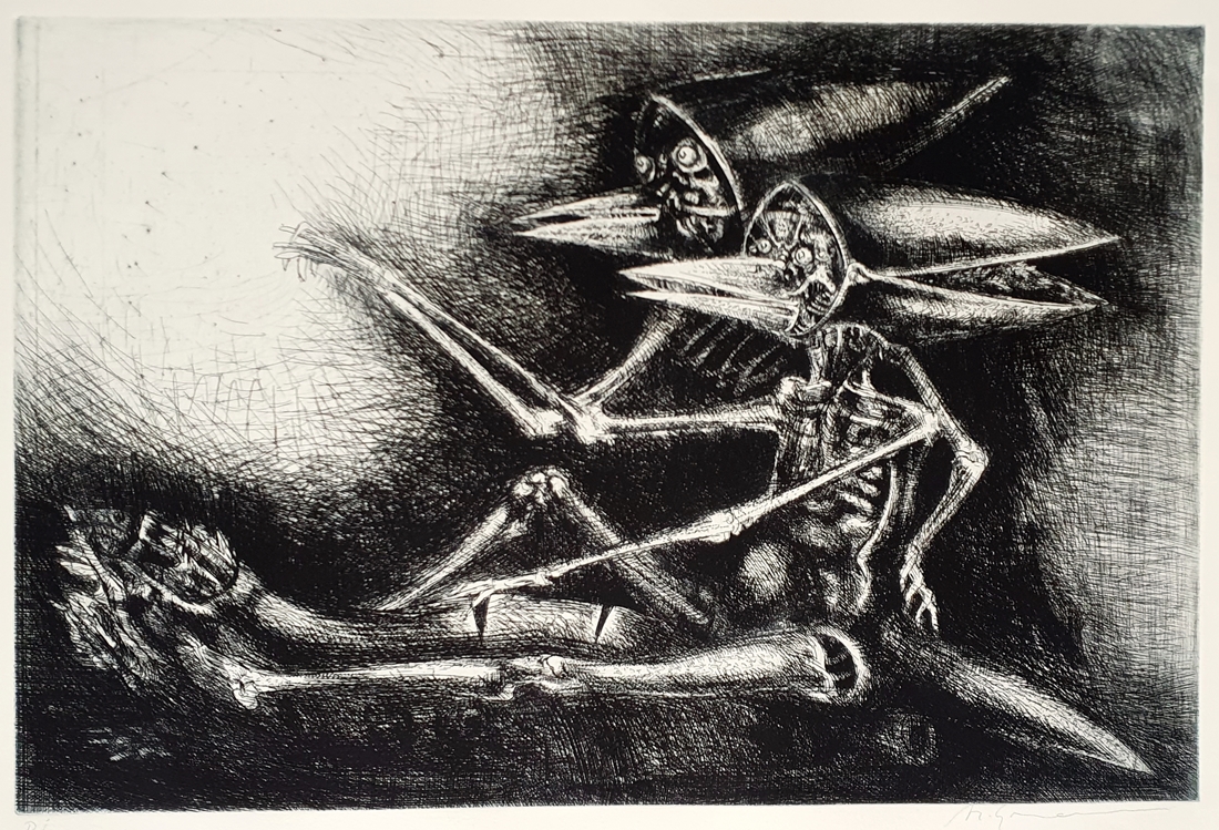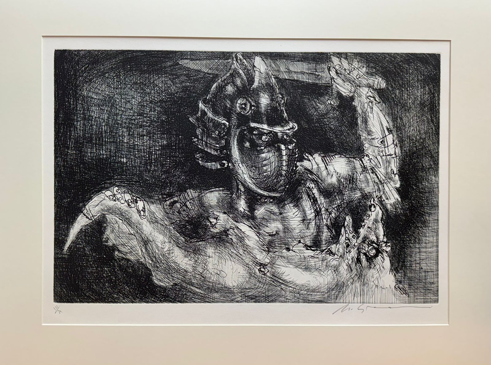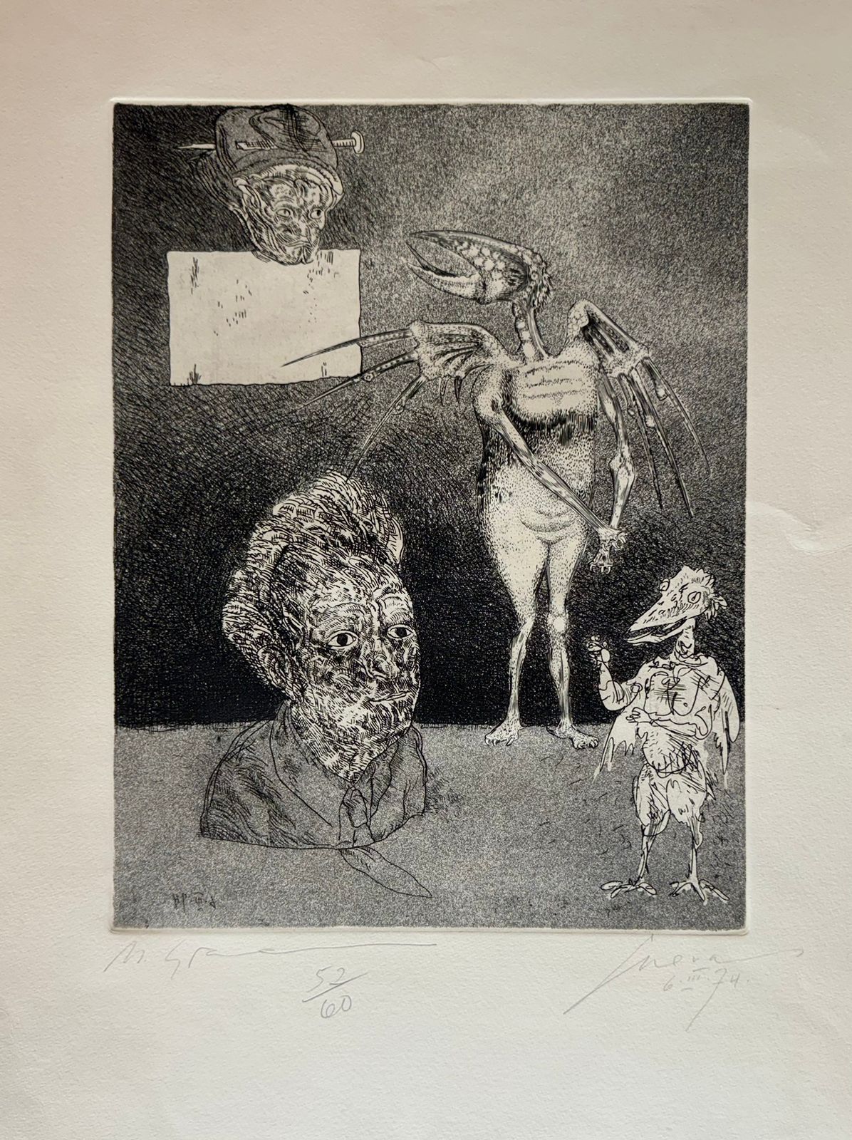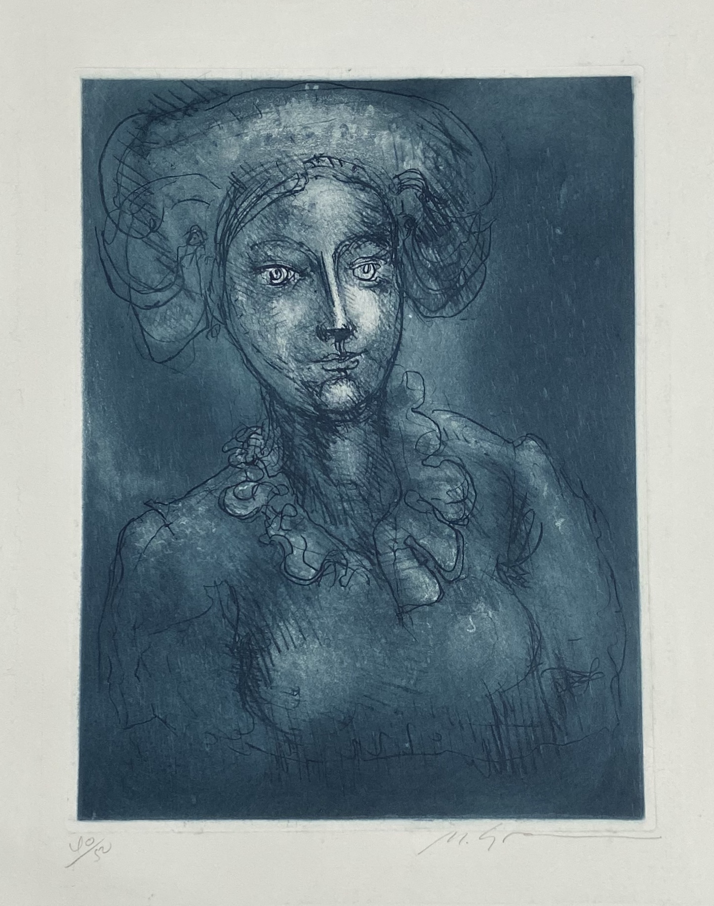 Marcelo Grassmann (1925–2013) – Figura. Gravura em metal, prova do artista (P.A.). Gravador, desenhista, ilustrador e professor brasileiro, referência central da gravura no Brasil, com formação técnica sólida e atuação como ilustrador da imprensa. Ass. CID. Dimensões: 42 × 32 cm.