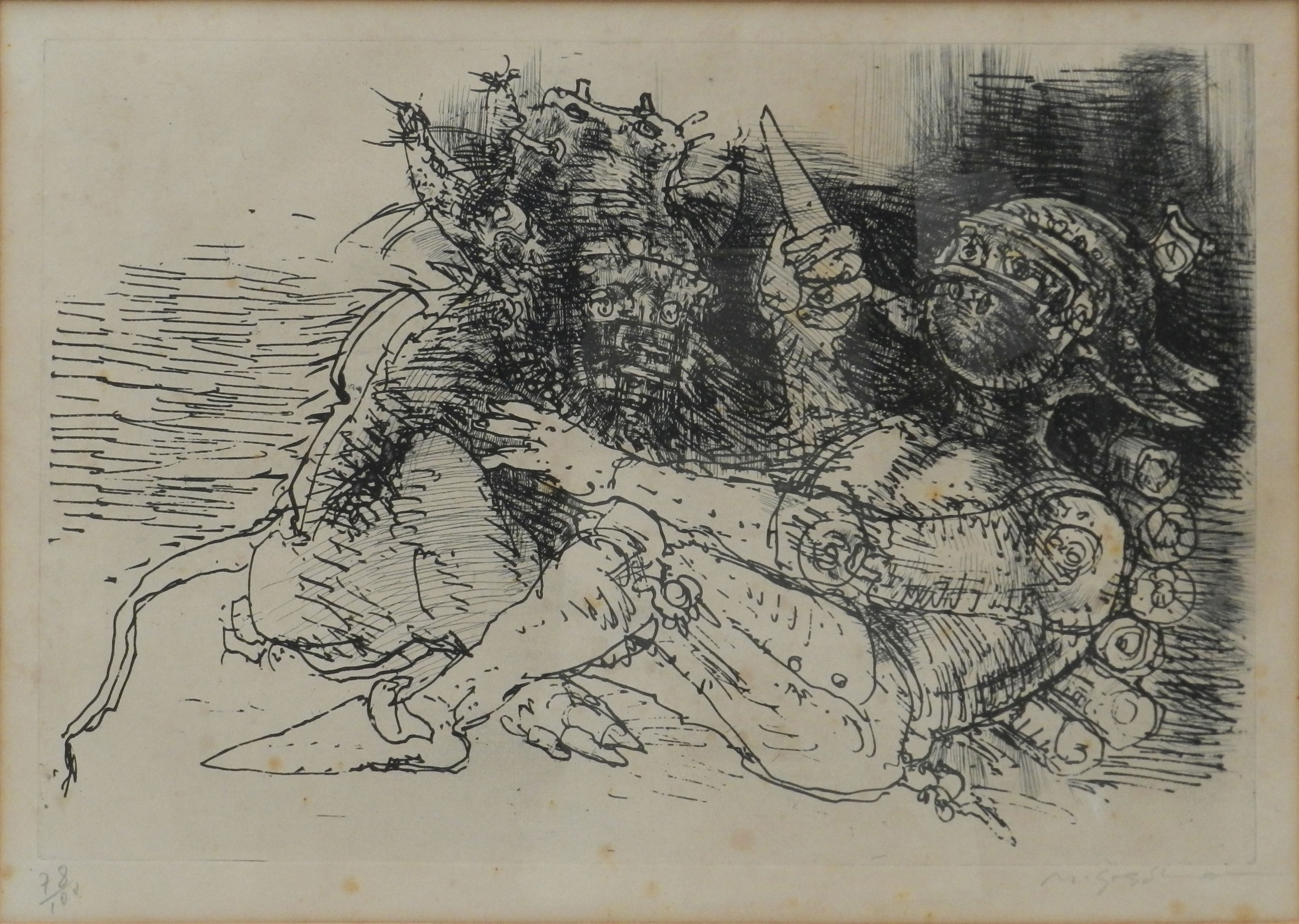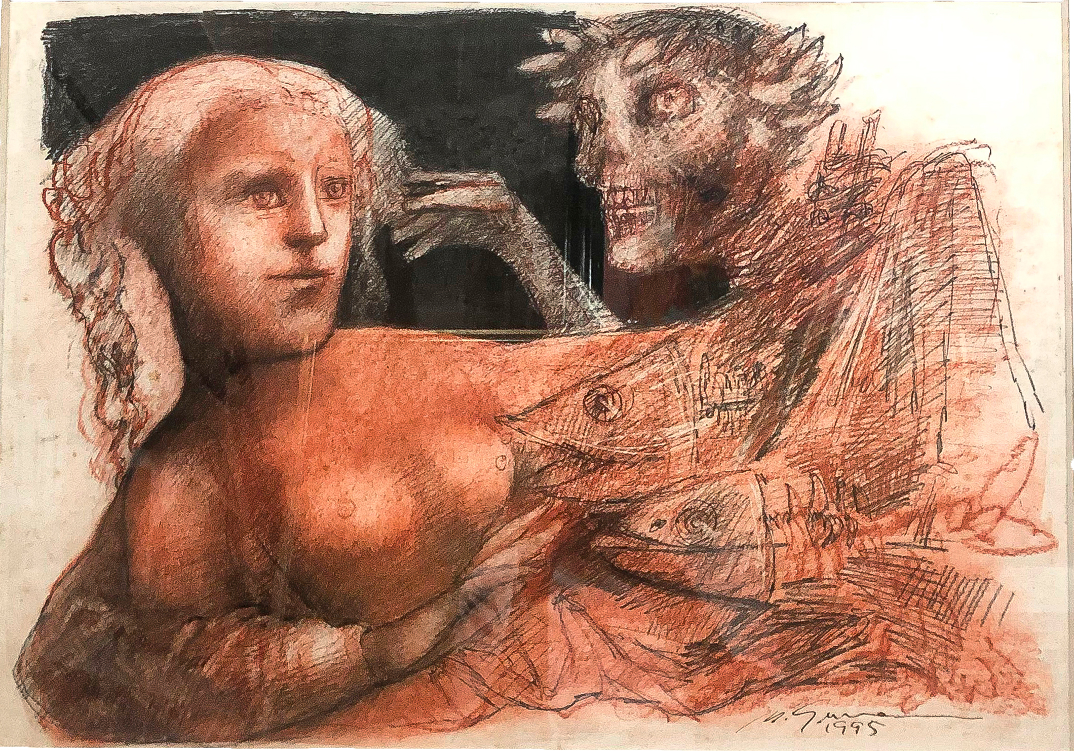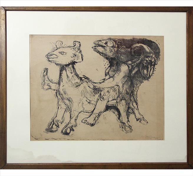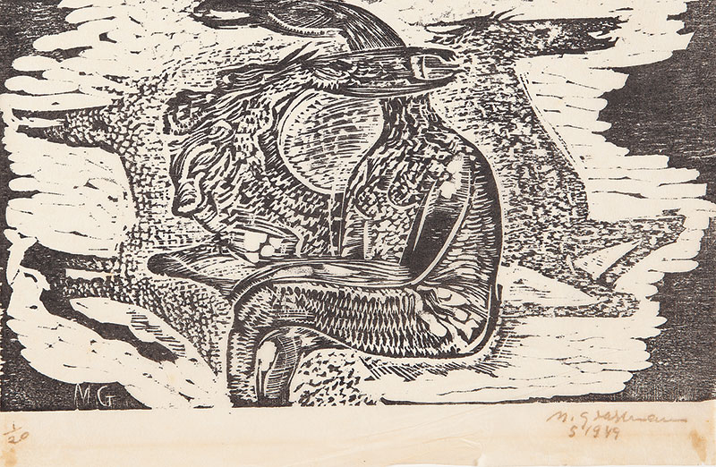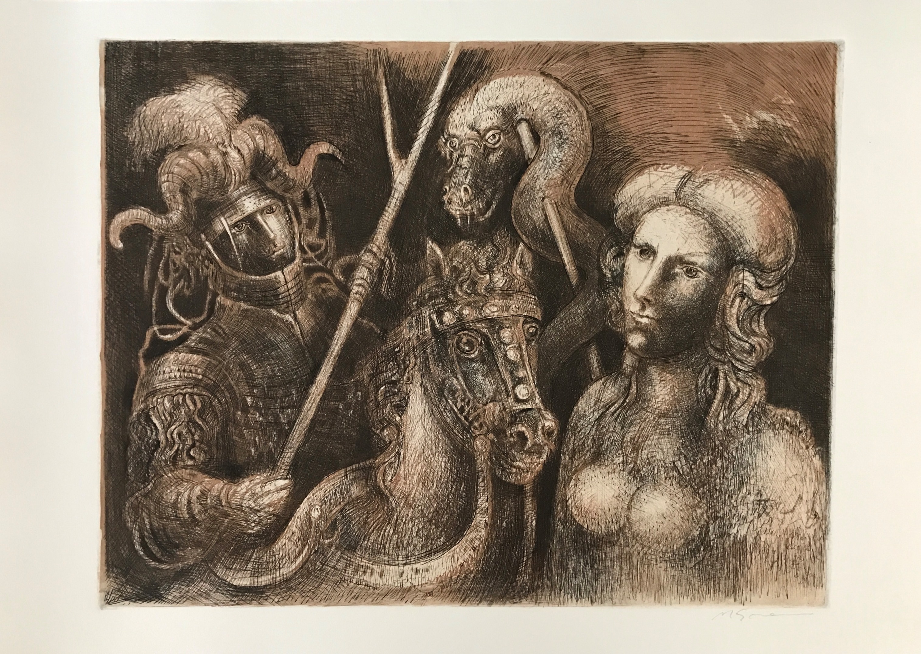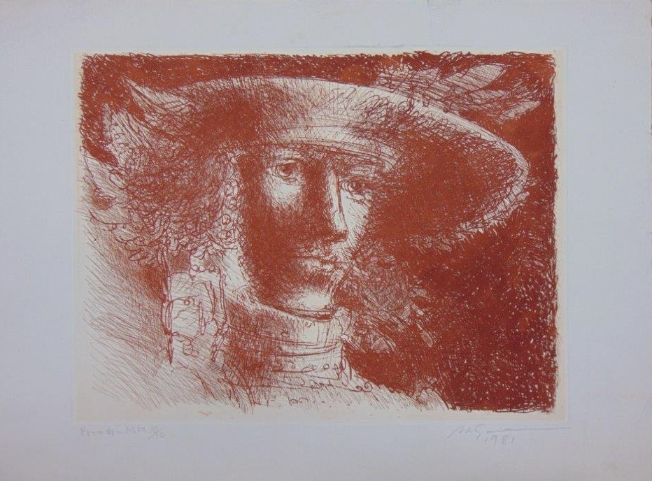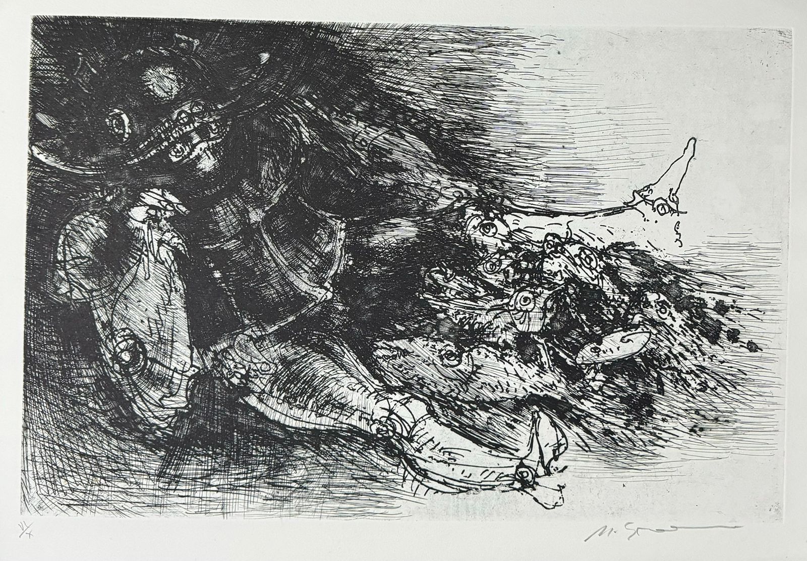 Marcelo Grassmann (1925–2013) – Figura. Gravura em metal, prova do artista (P.A.). Gravador, desenhista, ilustrador e professor brasileiro, referência central da gravura no Brasil, com formação técnica sólida e atuação como ilustrador da imprensa. Ass. CID. Dimensões: 42 × 32 cm.