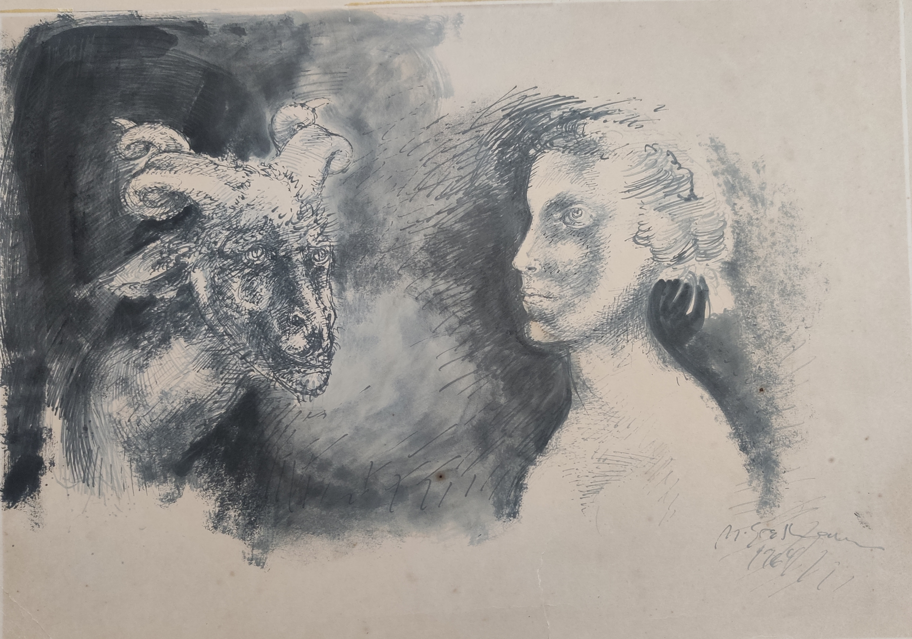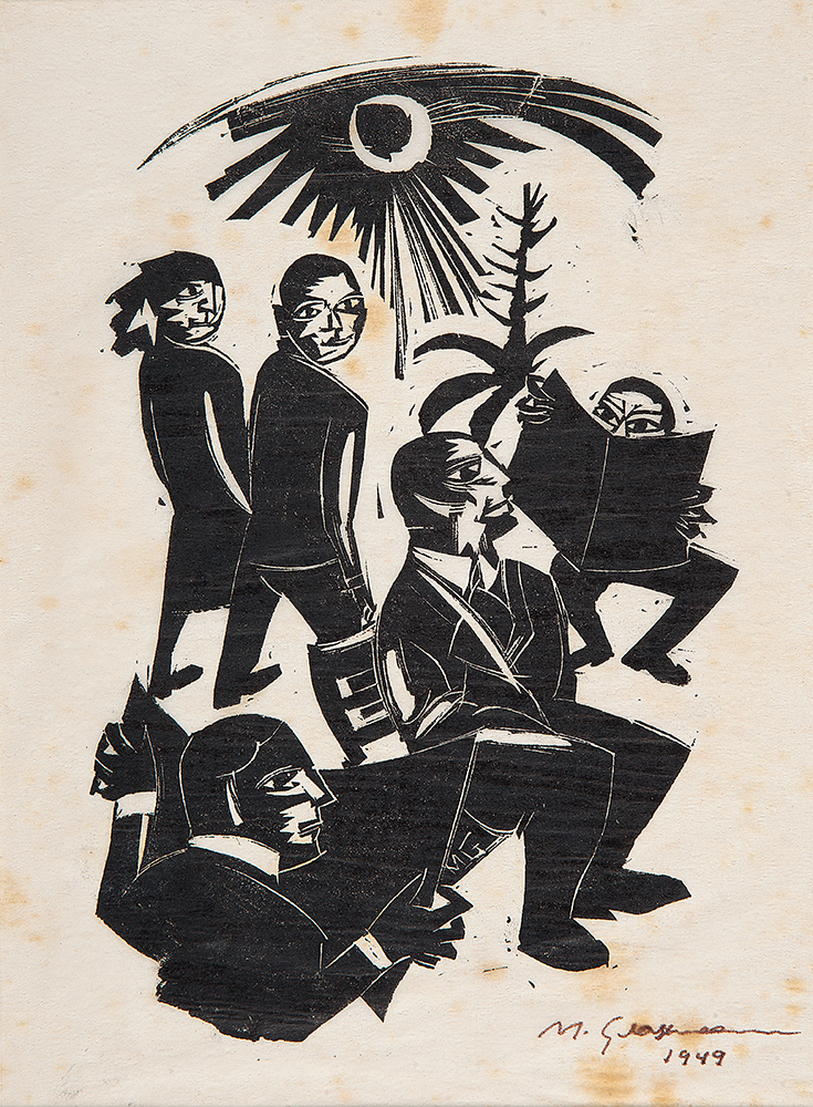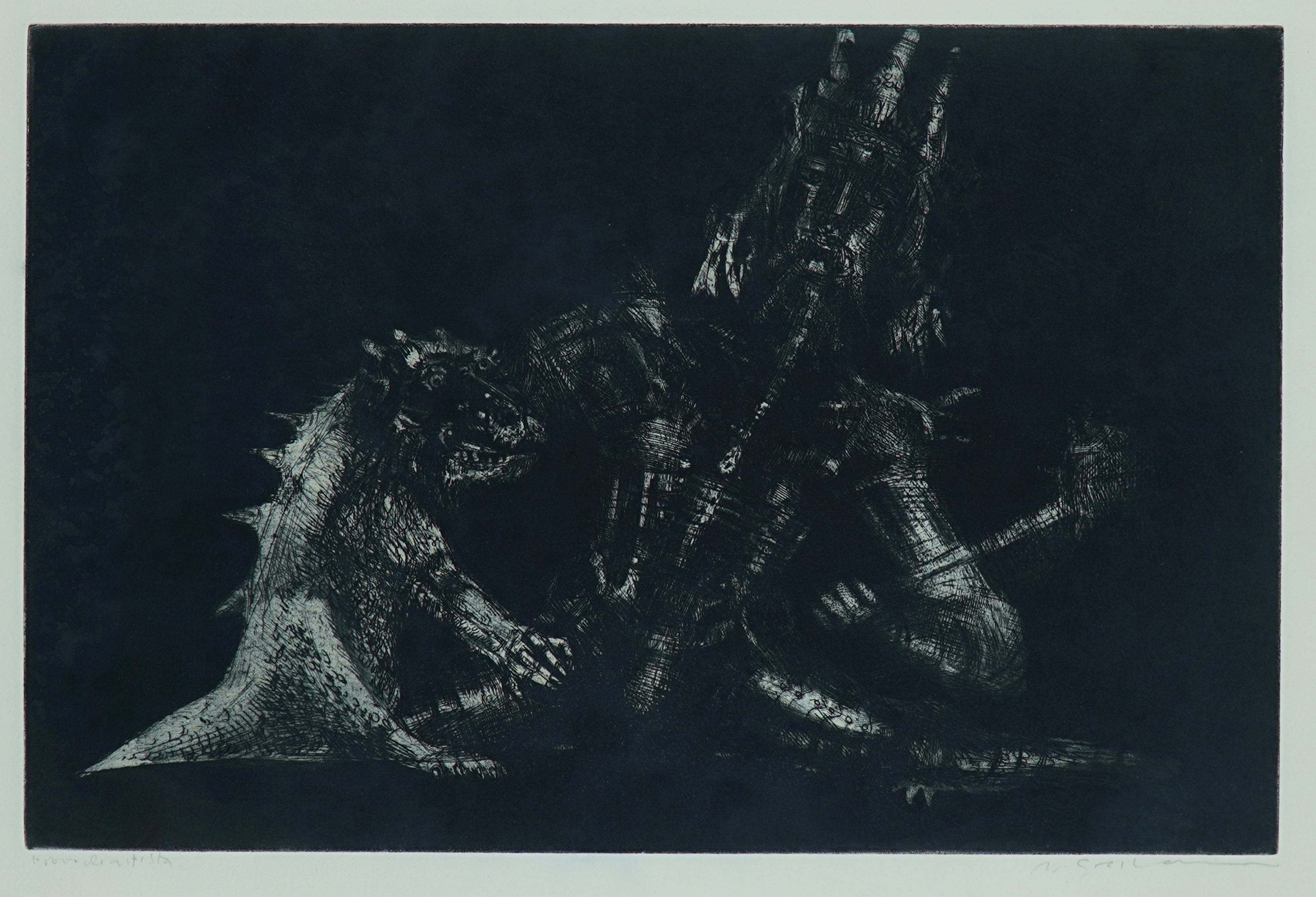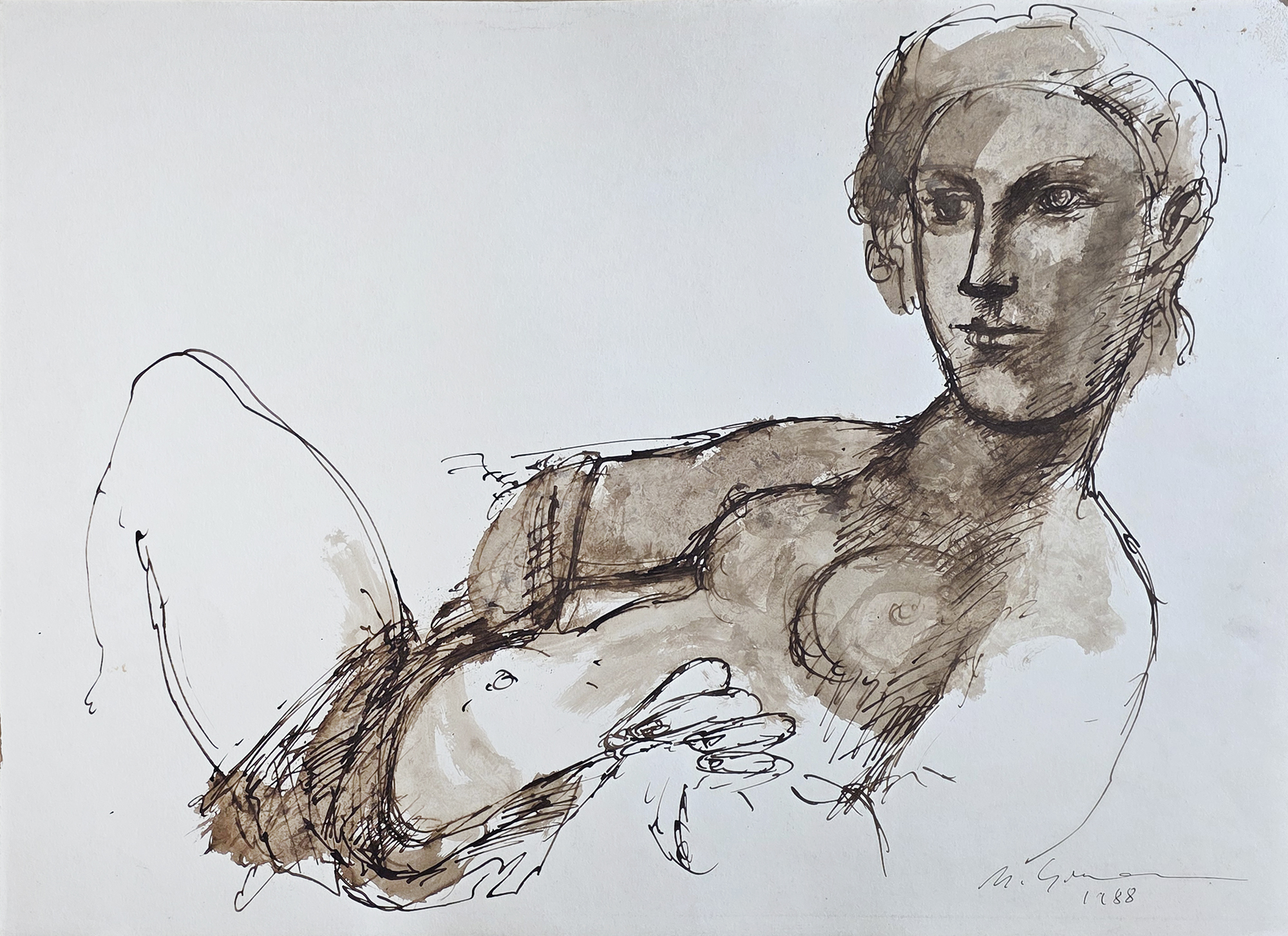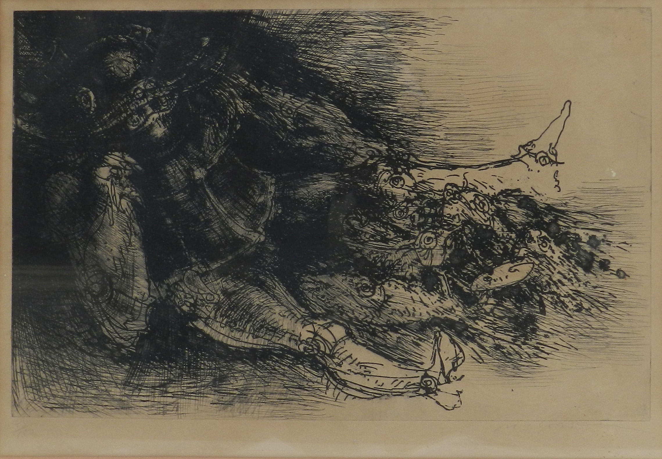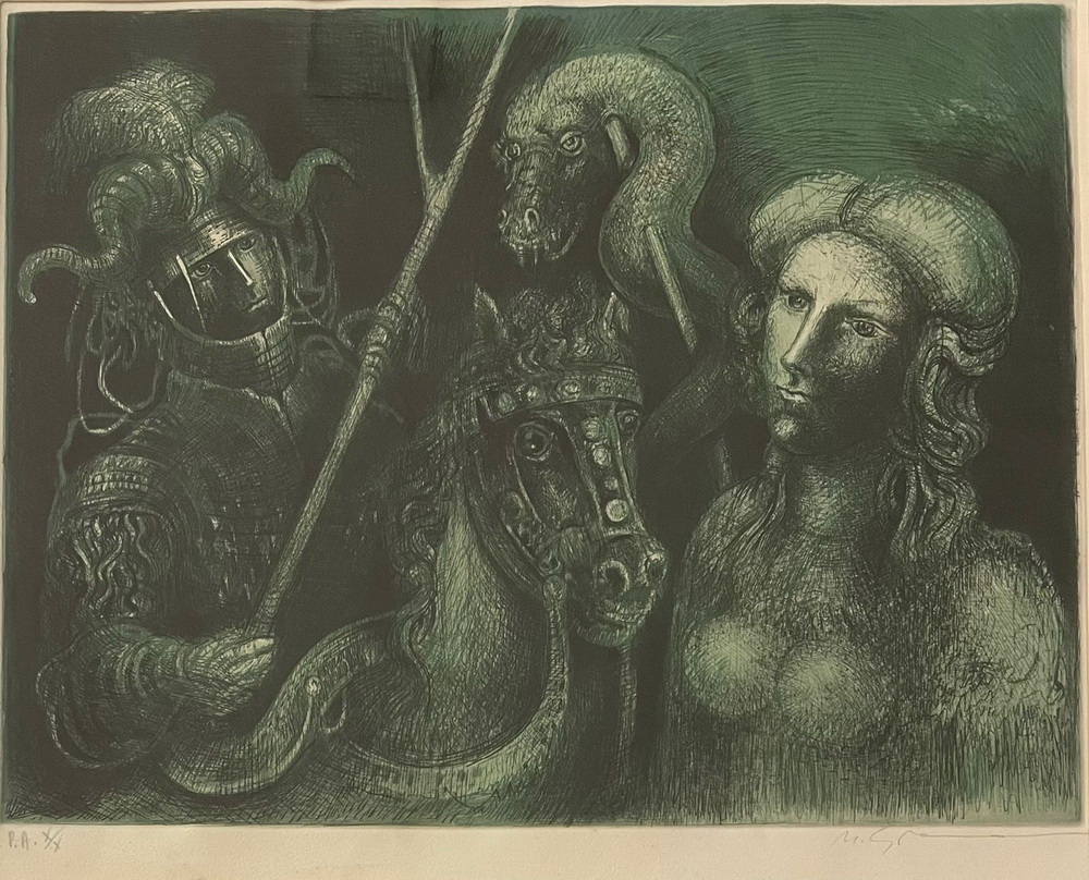 Marcelo Grassmann (1925–2013) – Figura. Gravura em metal, prova do artista (P.A.). Gravador, desenhista, ilustrador e professor brasileiro, referência central da gravura no Brasil, com formação técnica sólida e atuação como ilustrador da imprensa. Ass. CID. Dimensões: 42 × 32 cm.