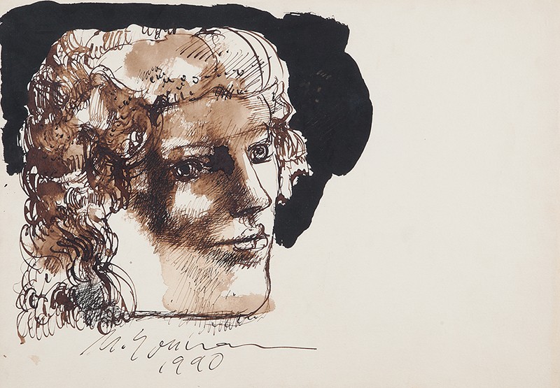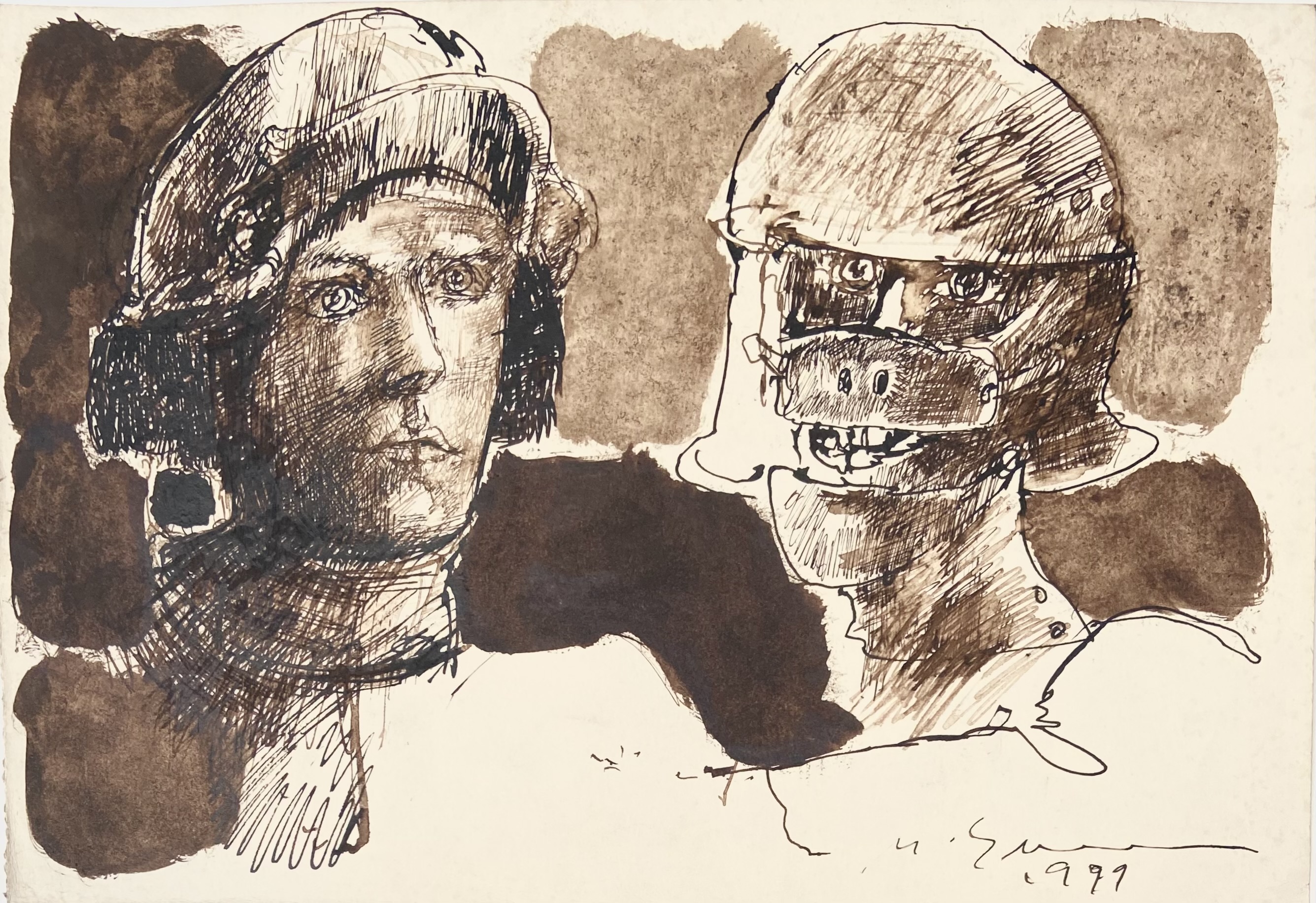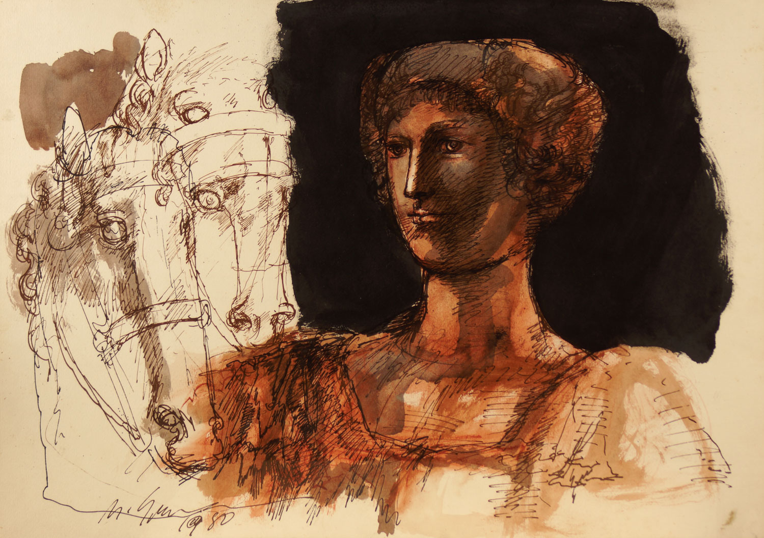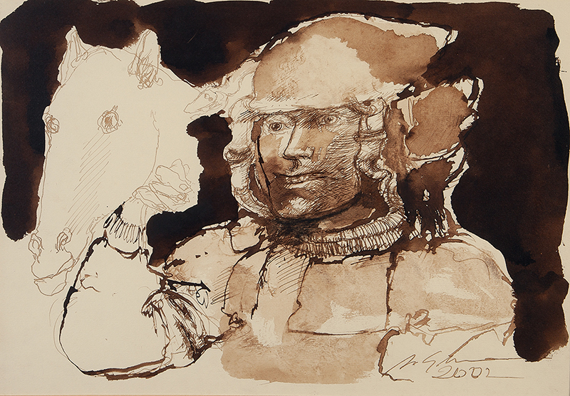 Marcelo Grassmann - Guerreiro. Nanquim e aguada sobre papel, 40x49,5 cm, 2000, A.C.I.D. Sem moldura