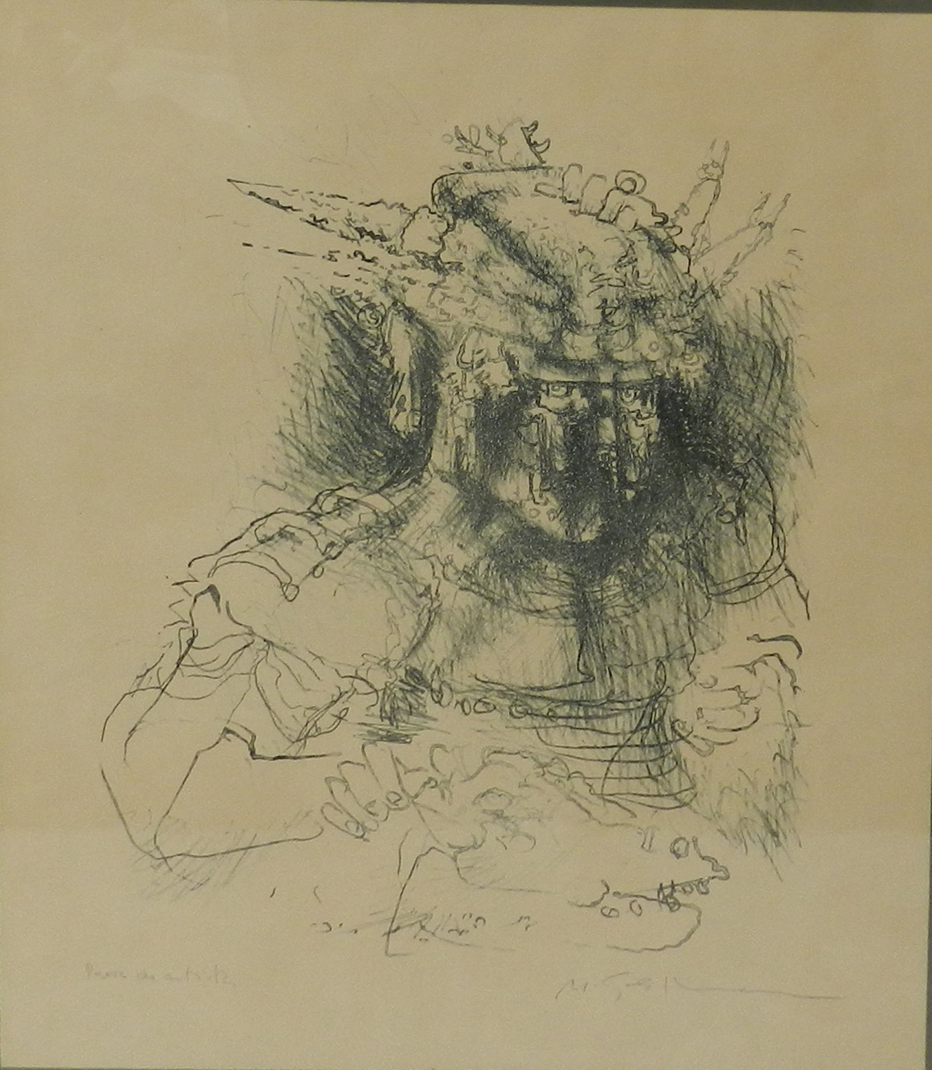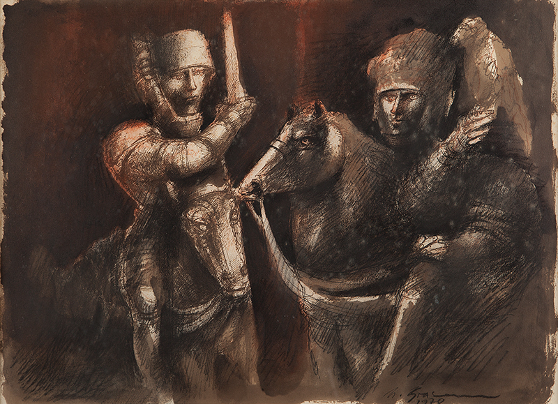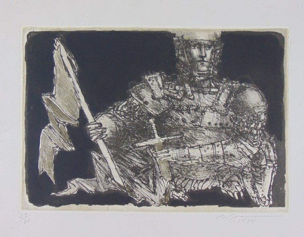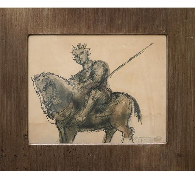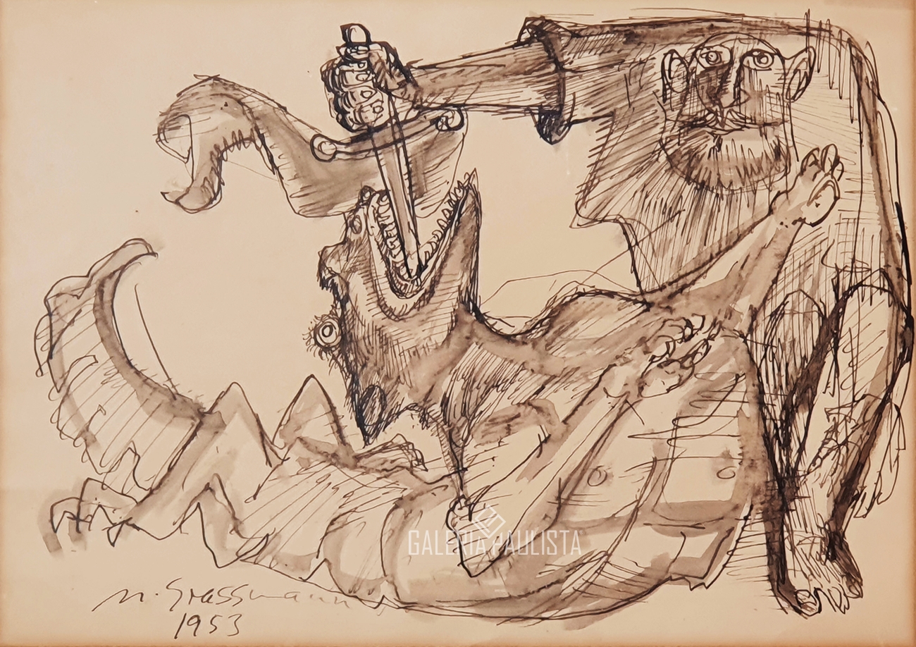 MARCELLO GRASSMANN, Guerreiro, Técnica Mista sobre Papel, ACID, 35 x 45cm (m.i). Datado 1971 (papel com manchas de umidade)
