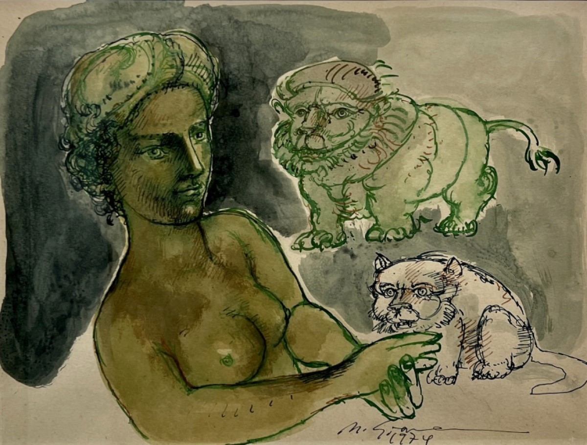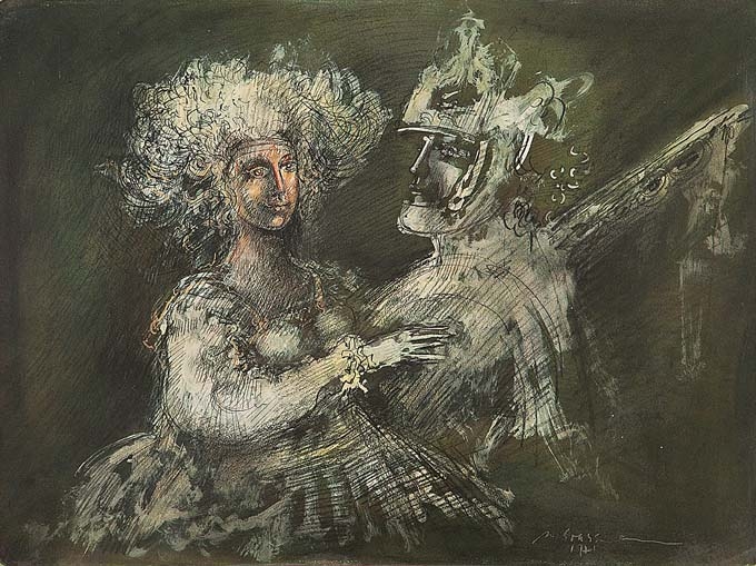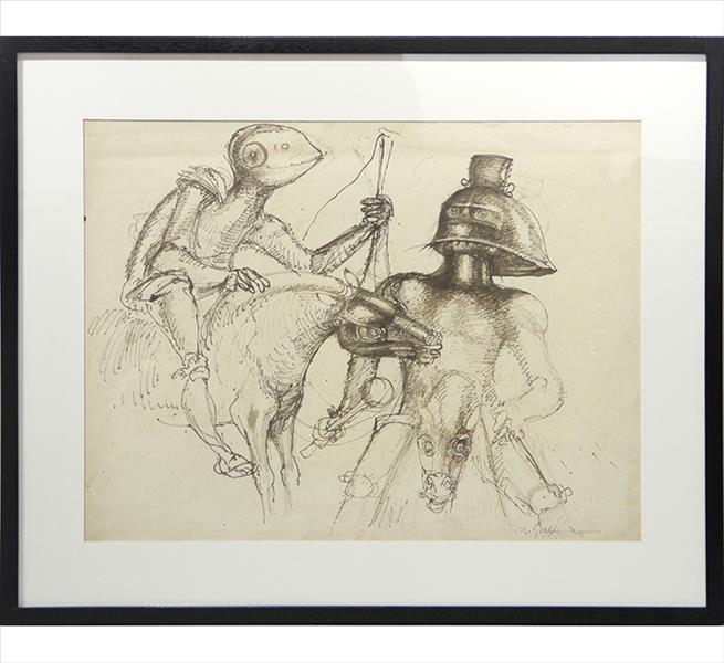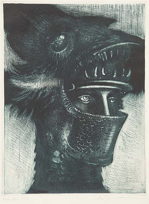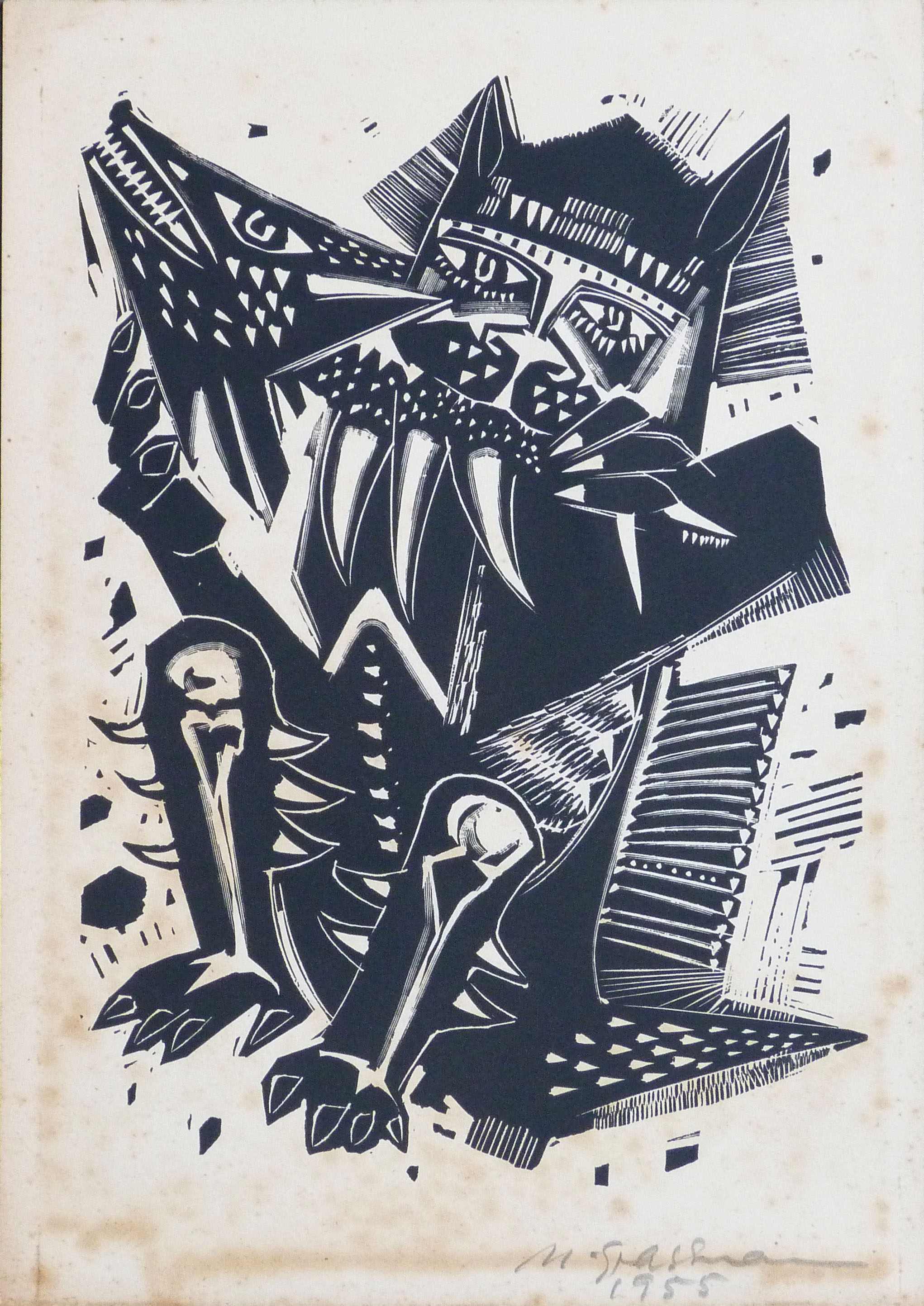 MARCELLO GRASSMANN, Guerreiro, Técnica Mista sobre Papel, ACID, 35 x 45cm (m.i). Datado 1971 (papel com manchas de umidade)