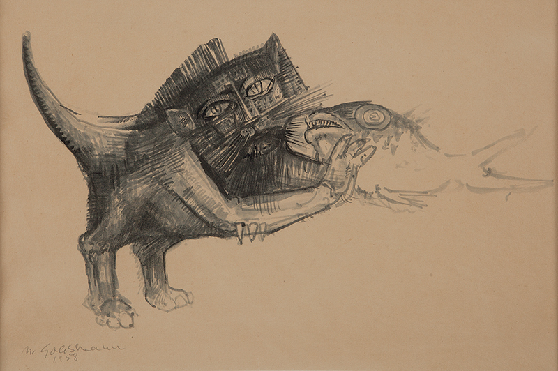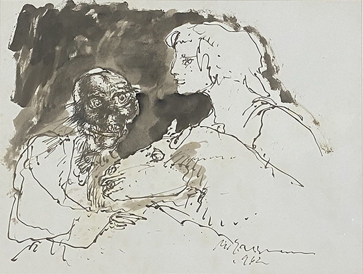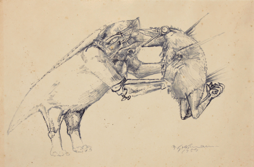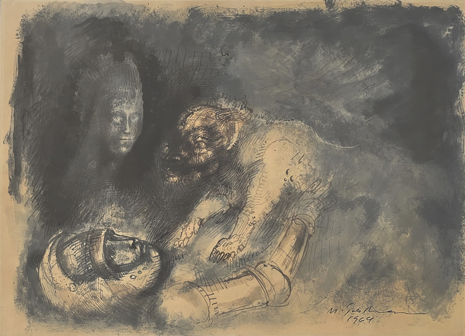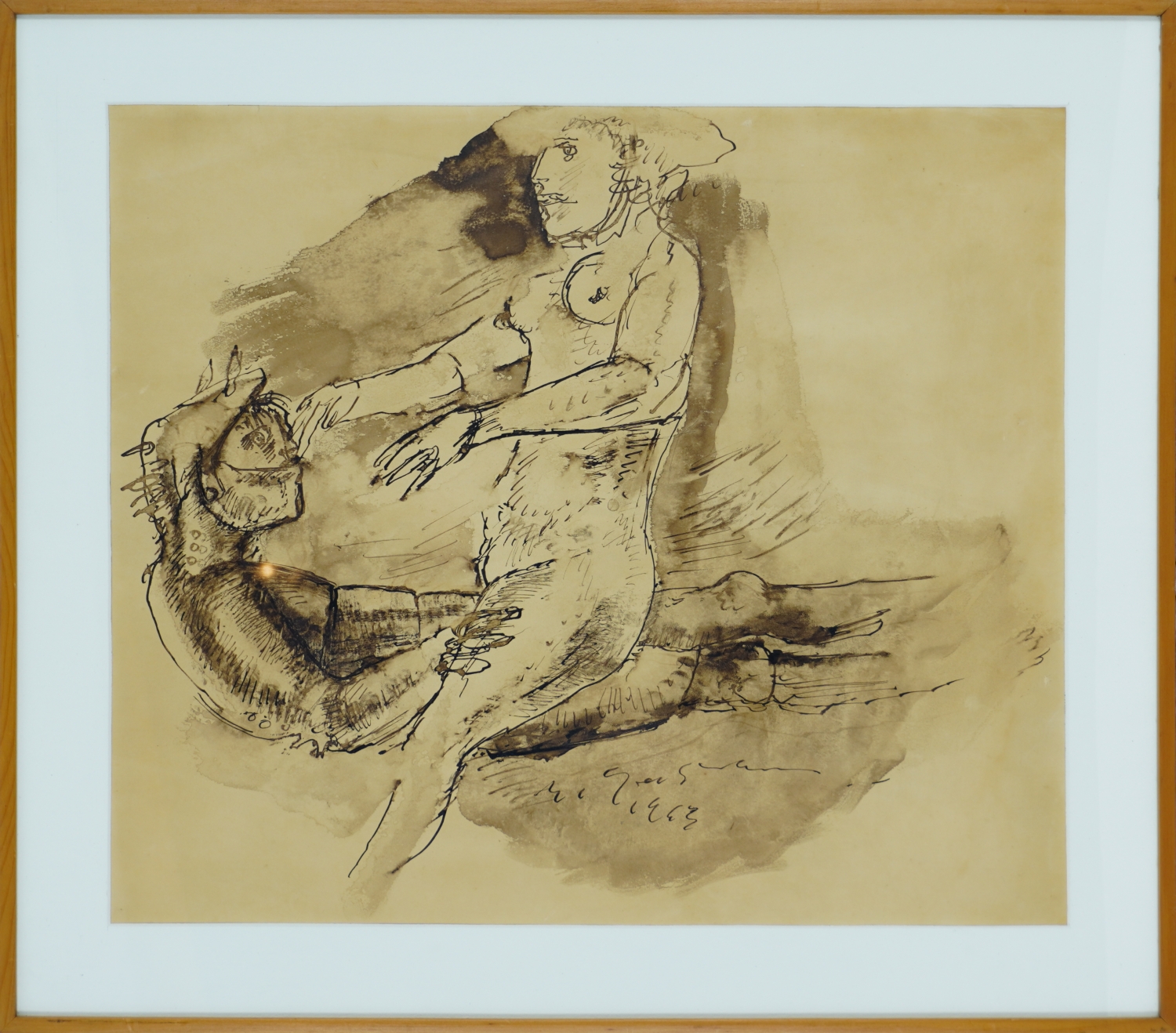 Marcelo Grassmann - Pescador. Nanquim e aguada sobre papel, 50x65 cm, 1962, A.C.I.D. Com moldura
