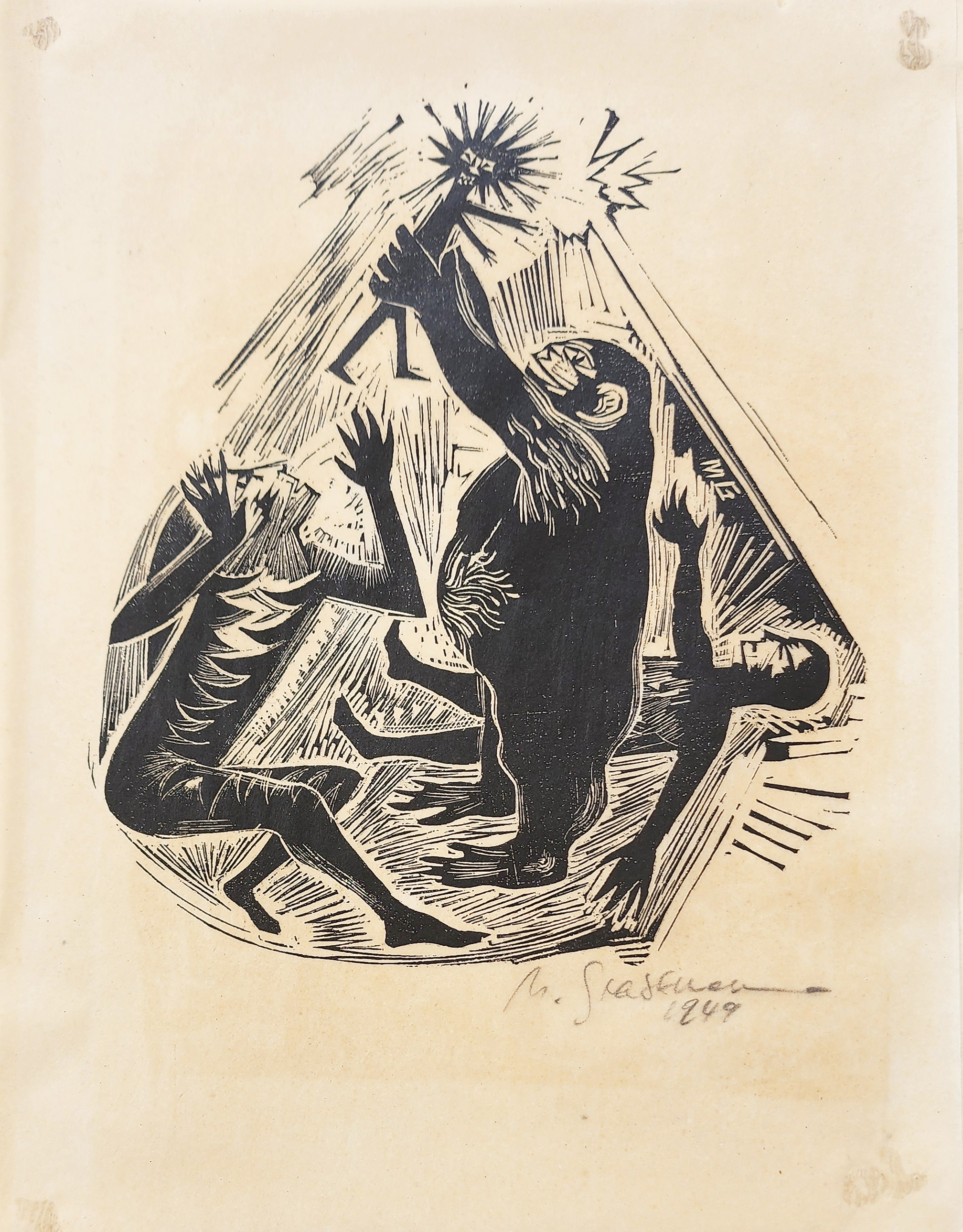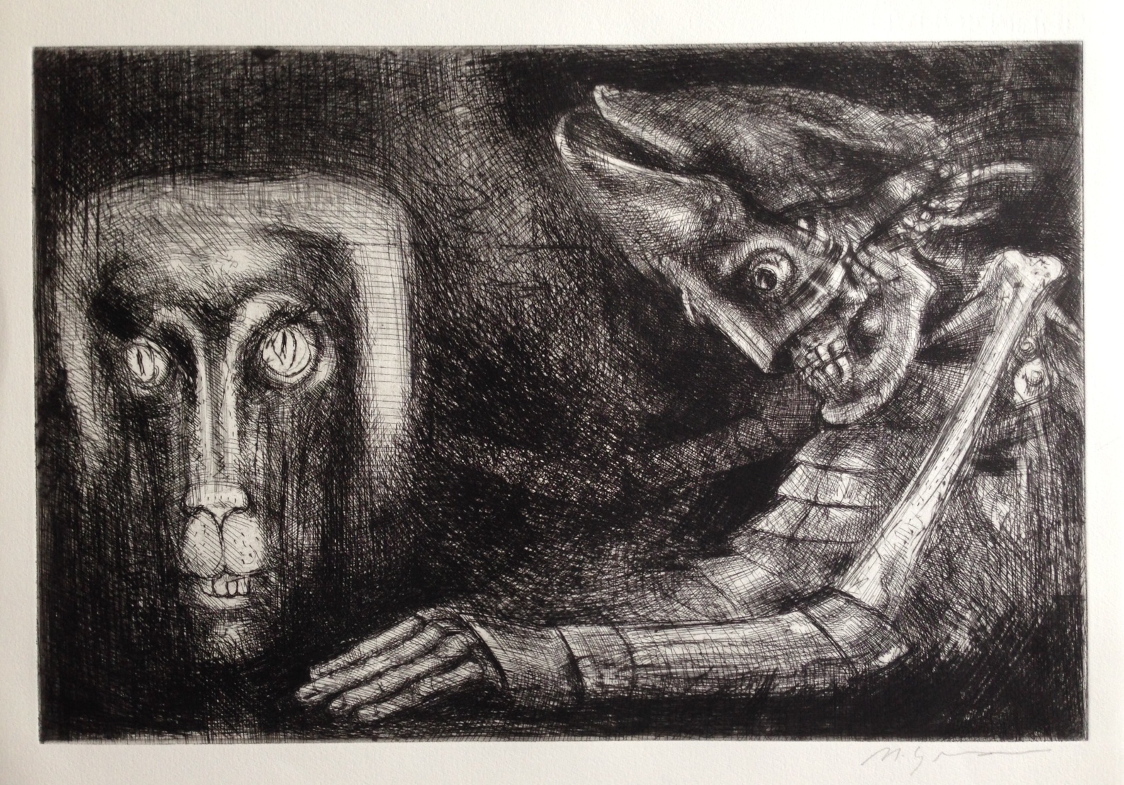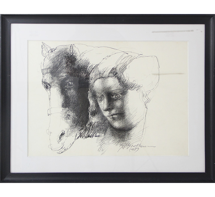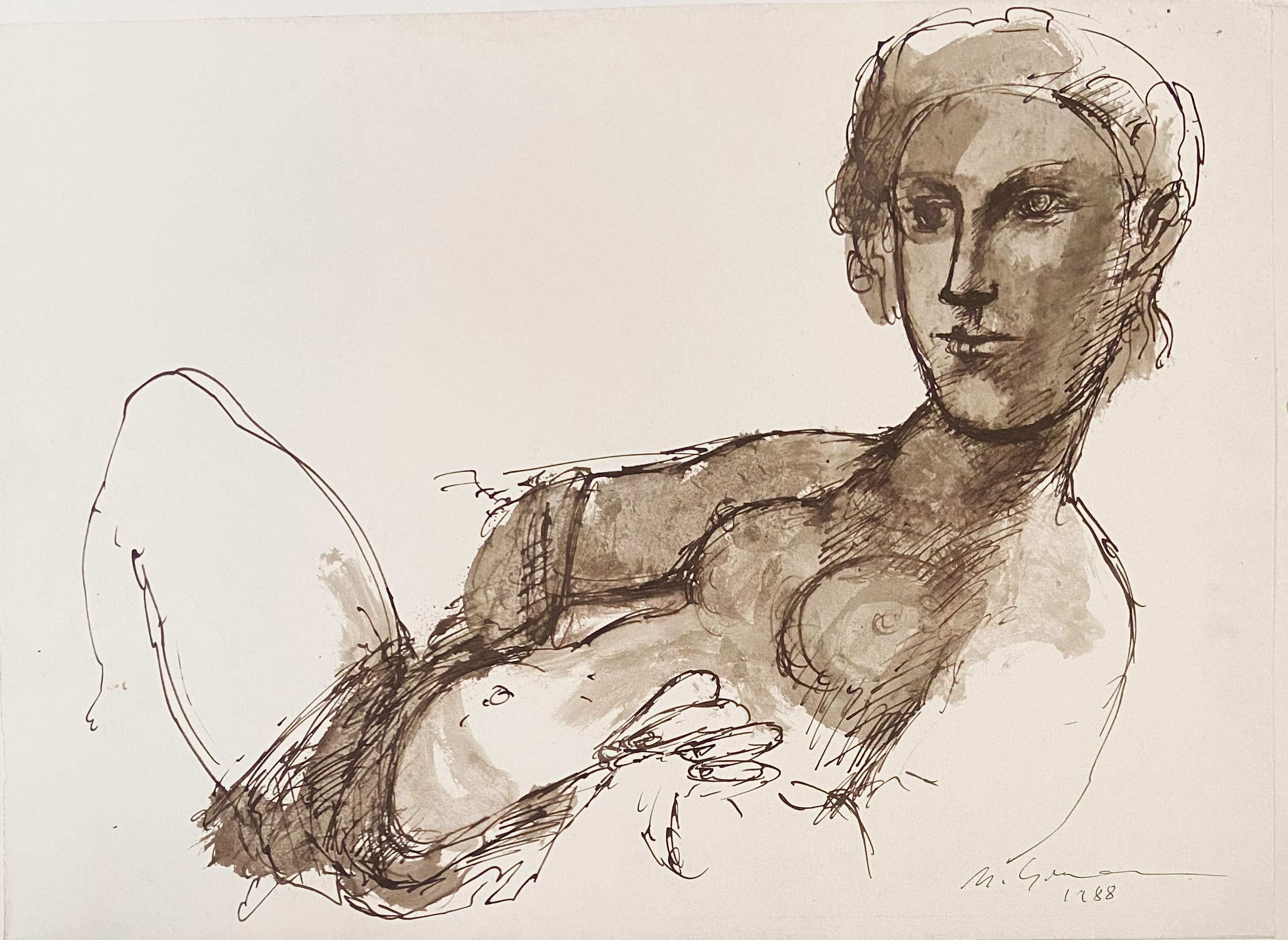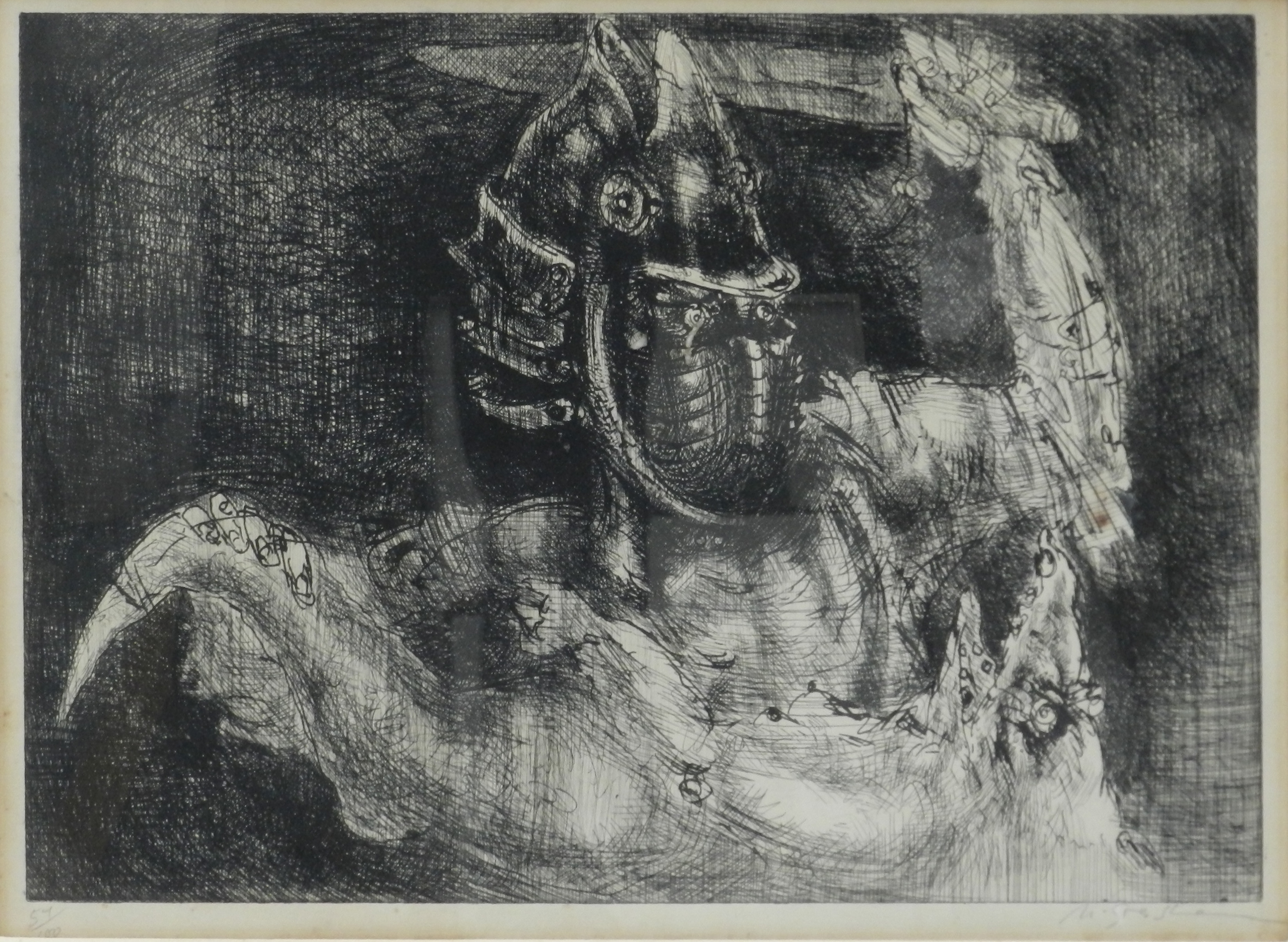Marcelo Grassmann (1925–2013) – Figura. Gravura em metal, prova do artista (P.A.). Gravador, desenhista, ilustrador e professor brasileiro, referência central da gravura no Brasil, com formação técnica sólida e atuação como ilustrador da imprensa. Ass. CID. Dimensões: 42 × 32 cm.