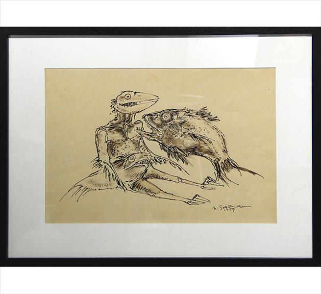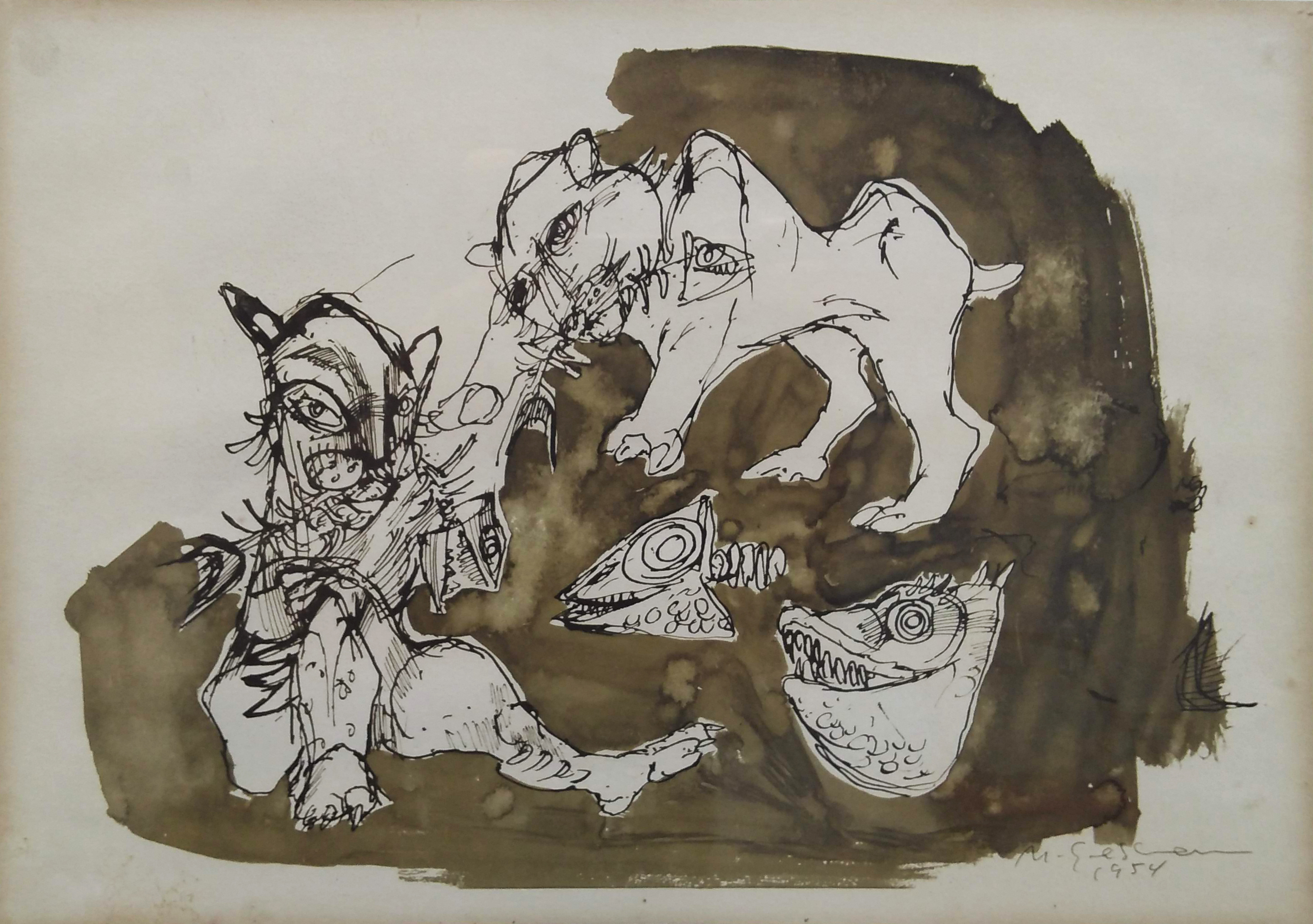 Marcelo Grassmann - Pescador. Nanquim e aguada sobre papel, 50x65 cm, 1962, A.C.I.D. Com moldura