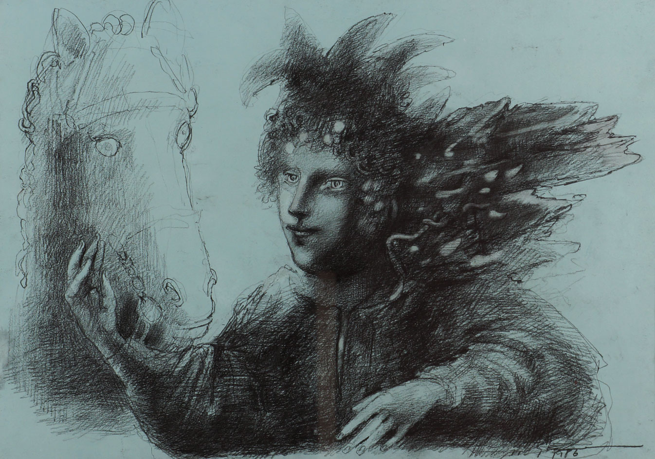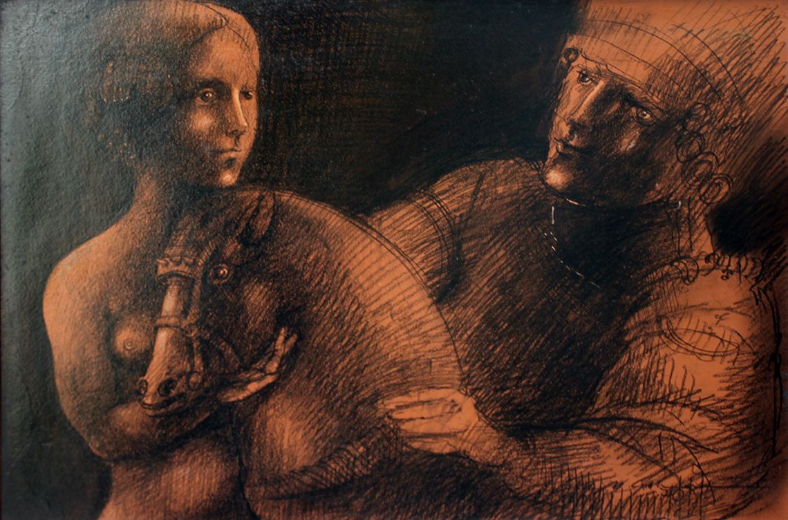 Marcelo Grassmann - Guerreiro. Nanquim, aguada e lápis de cera sobre papel, 35x50 cm, 2008, A.C.I.D. Sem moldura