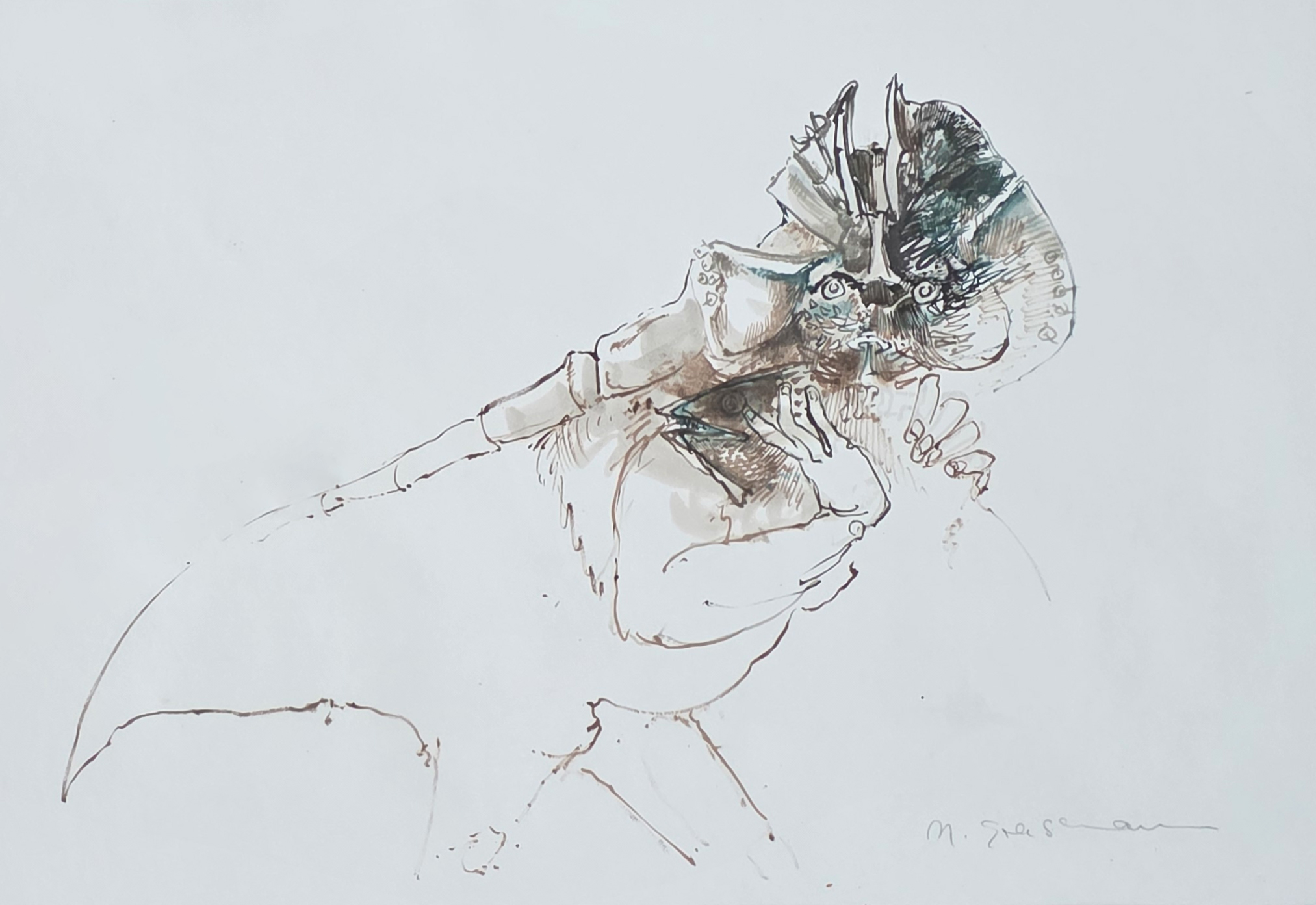 Marcelo Grassmann - Guerreiro. Nanquim e aguada sobre papel, 40x49,5 cm, 2000, A.C.I.D. Sem moldura