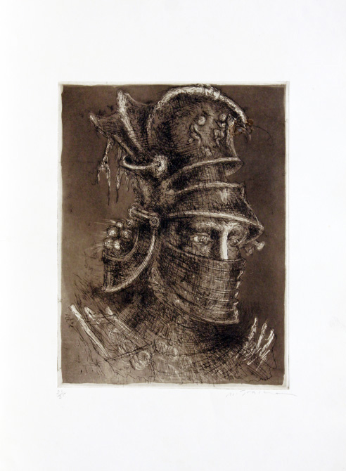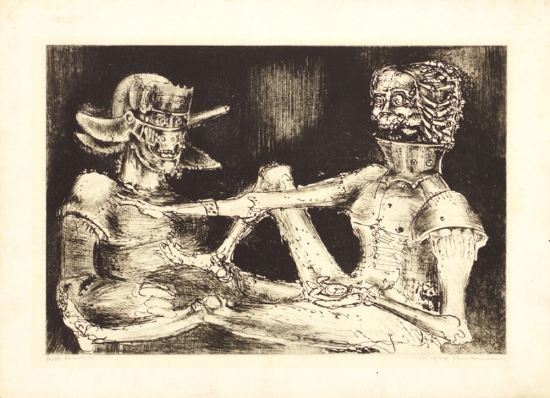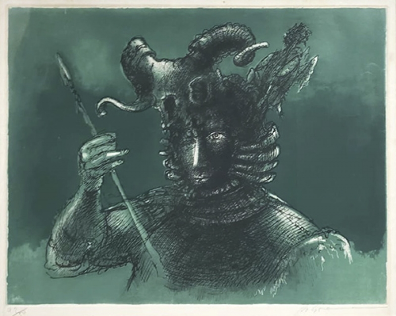 MARCELLO GRASSMANN, Guerreiro, Técnica Mista sobre Papel, ACID, 35 x 45cm (m.i). Datado 1971 (papel com manchas de umidade)