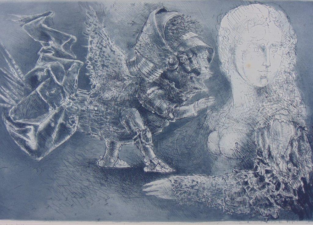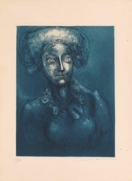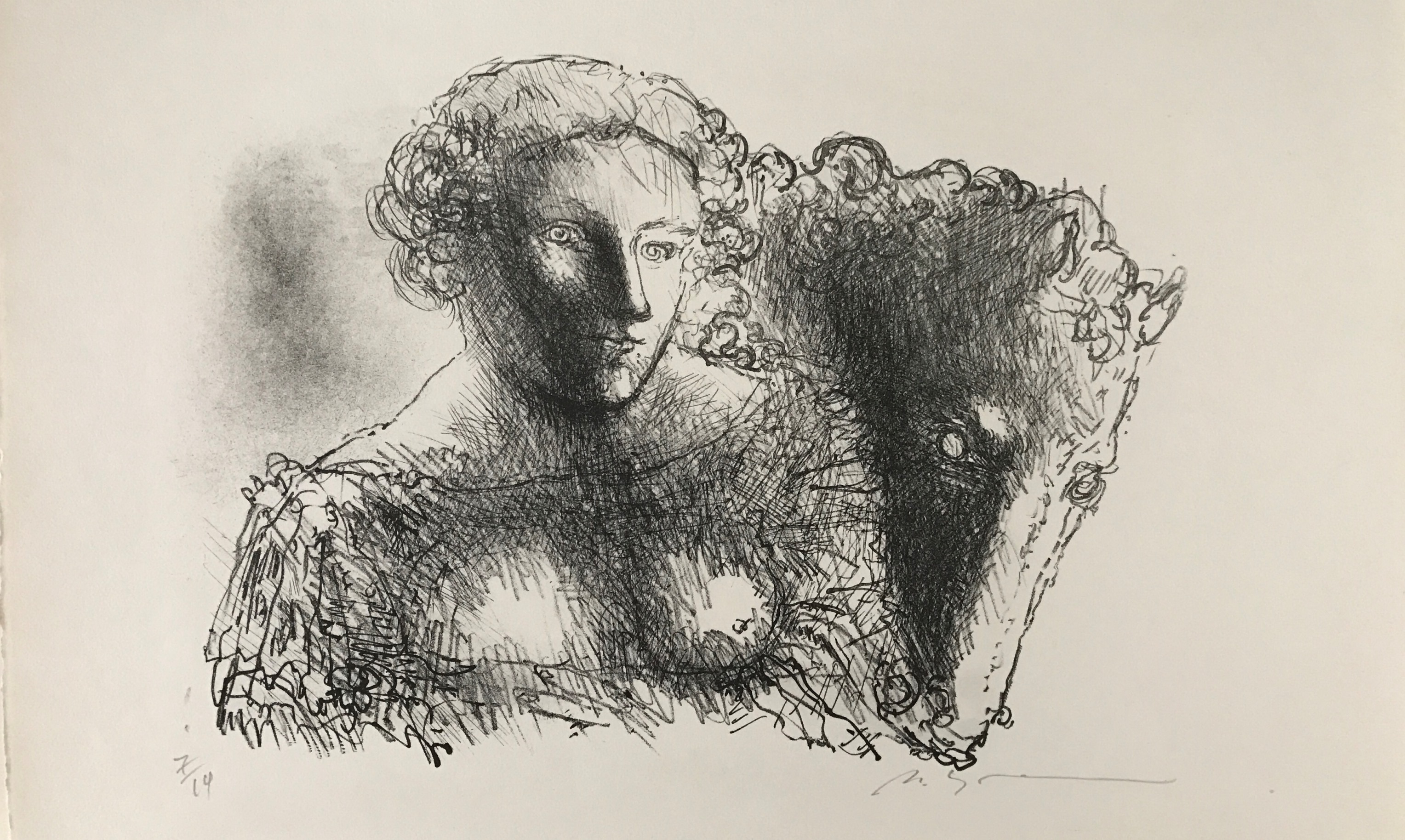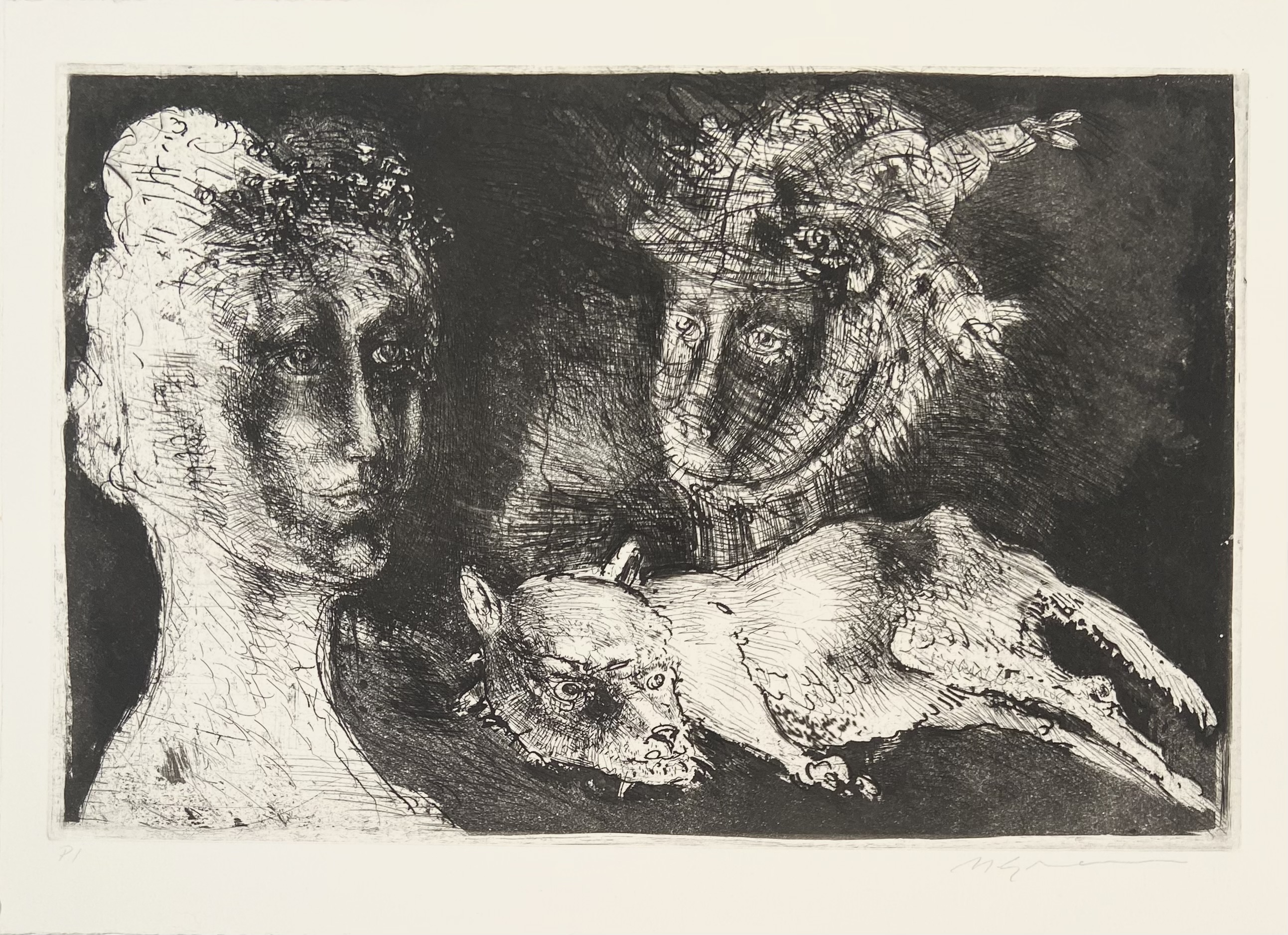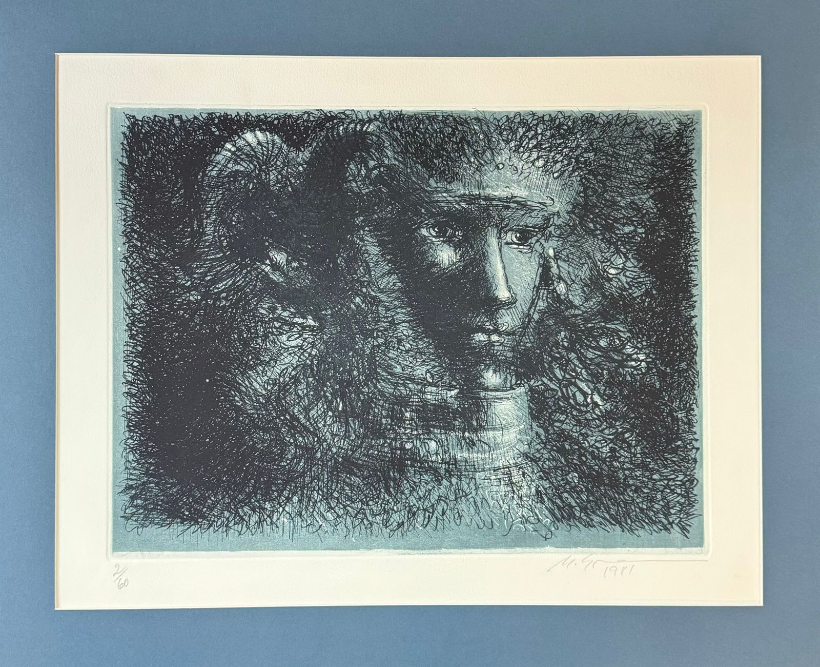 Marcelo Grassmann (1925–2013) – Figura. Gravura em metal, prova do artista (P.A.). Gravador, desenhista, ilustrador e professor brasileiro, referência central da gravura no Brasil, com formação técnica sólida e atuação como ilustrador da imprensa. Ass. CID. Dimensões: 42 × 32 cm.