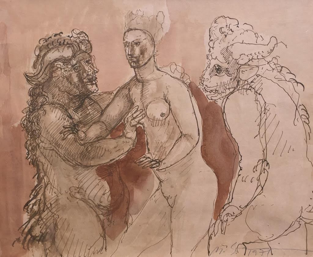 Marcelo Grassmann - Guerreiro. Nanquim e aguada sobre papel, 40x49,5 cm, 2000, A.C.I.D. Sem moldura