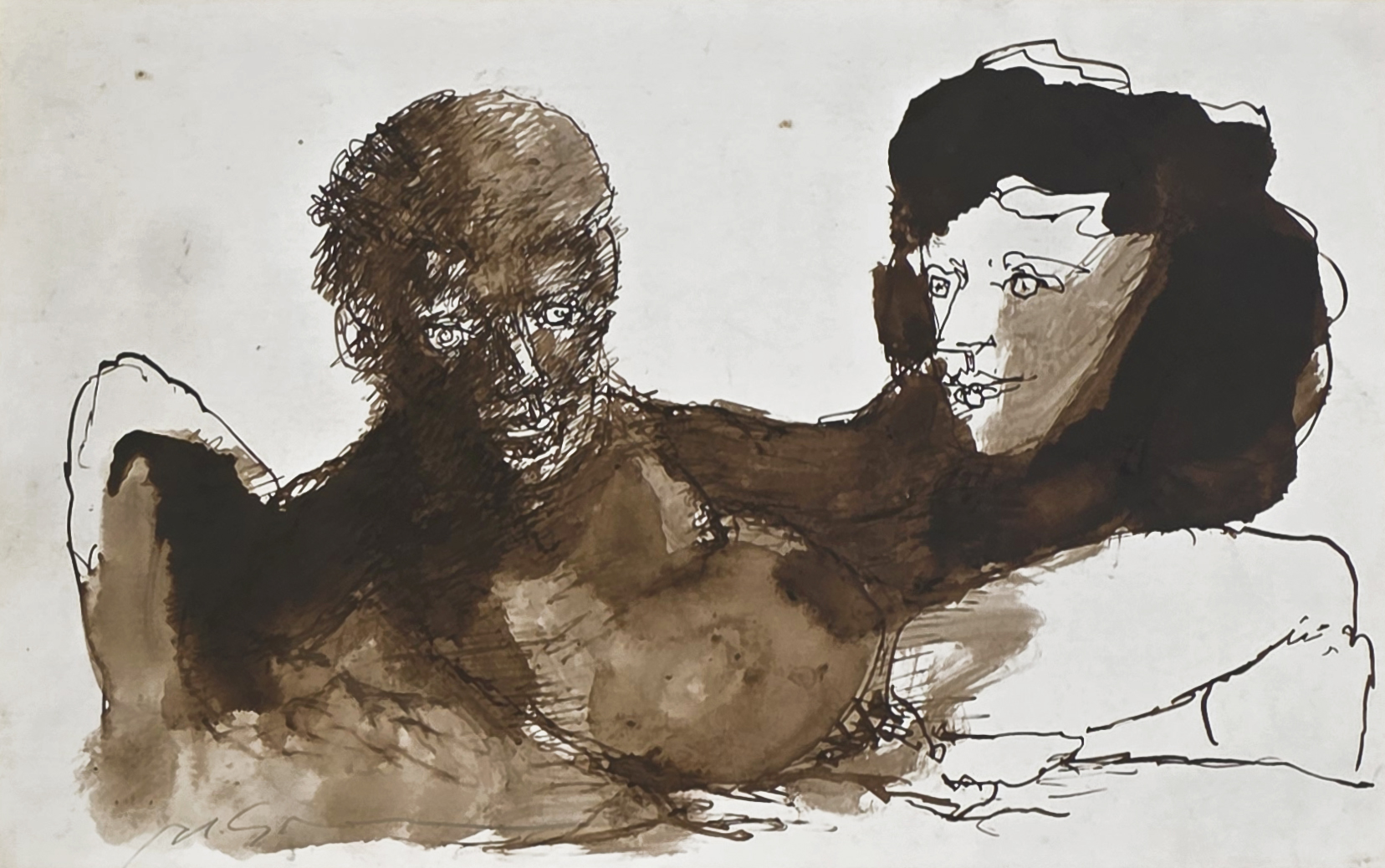 Marcelo Grassmann - Pescador. Nanquim e aguada sobre papel, 50x65 cm, 1962, A.C.I.D. Com moldura