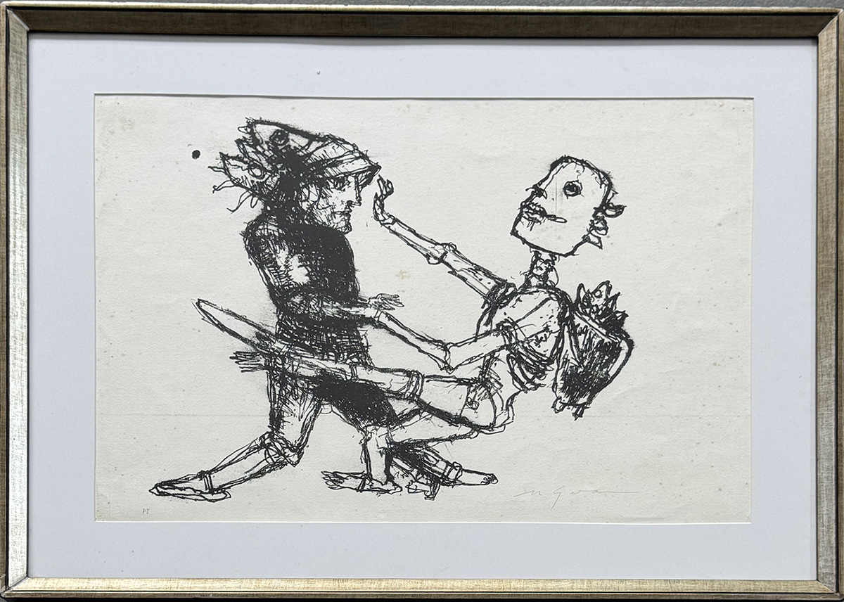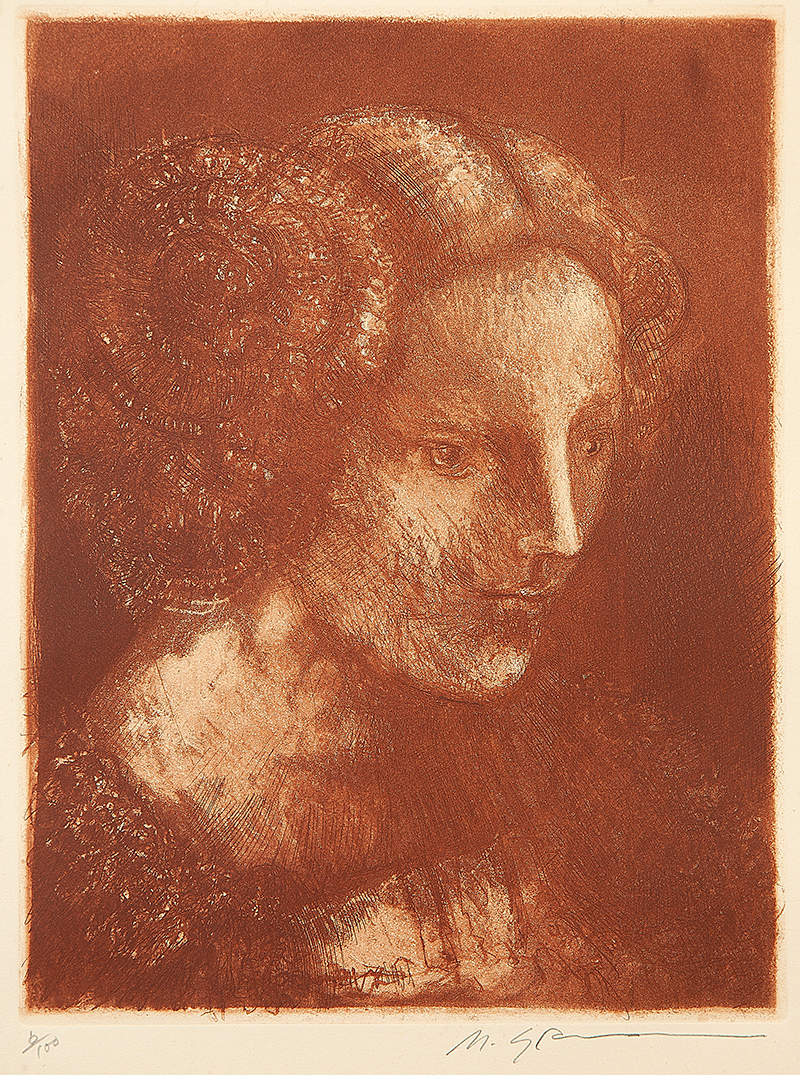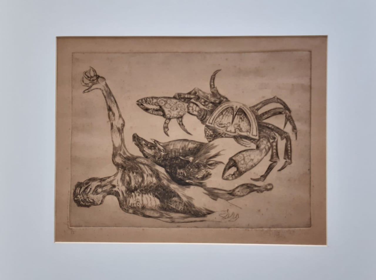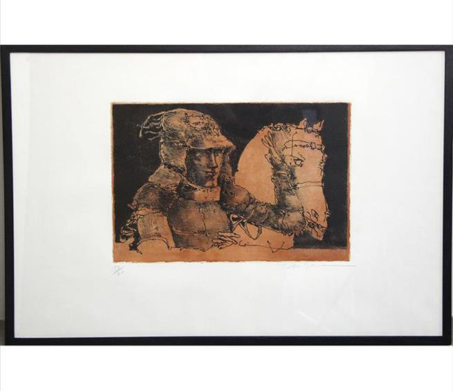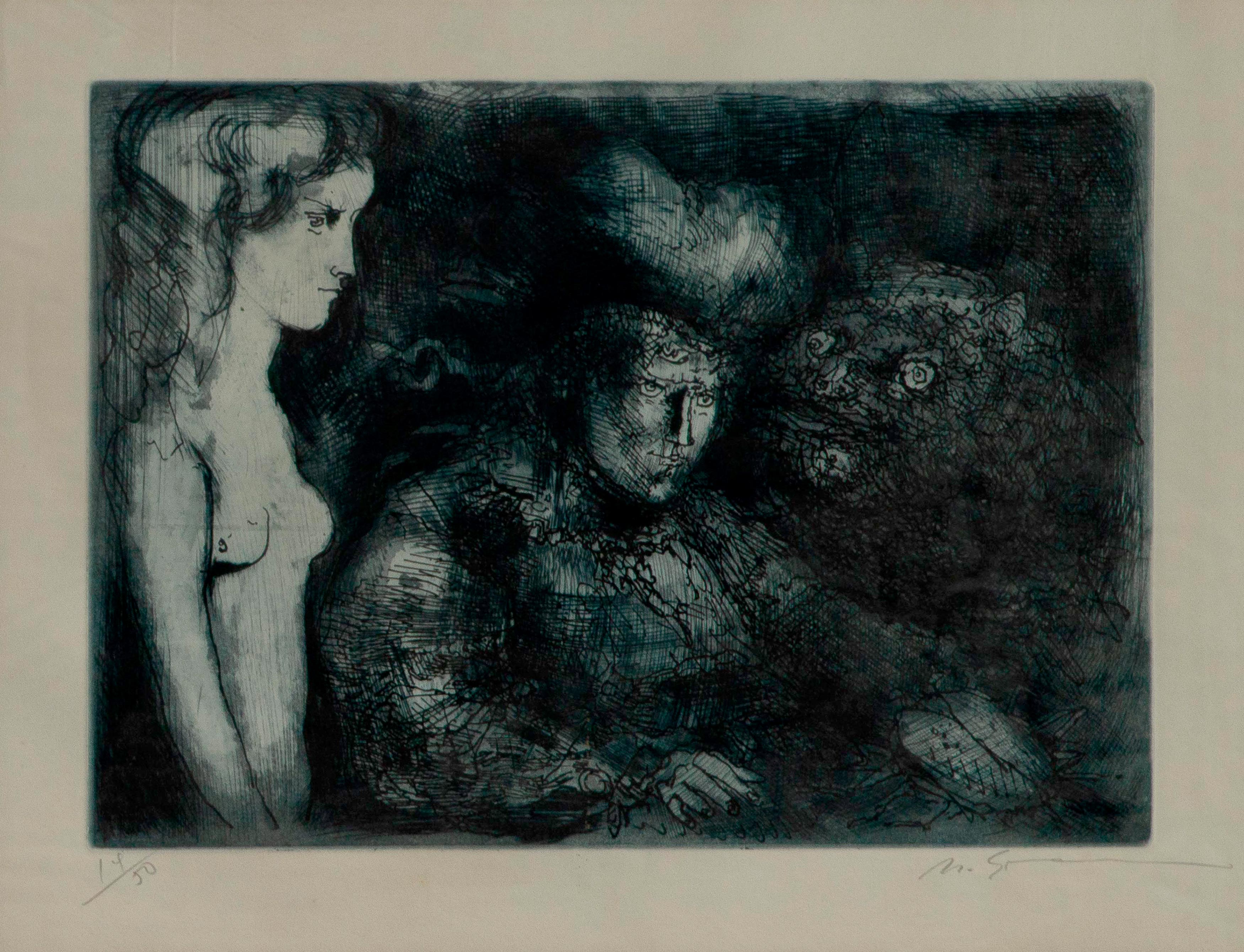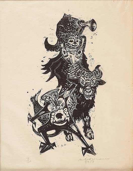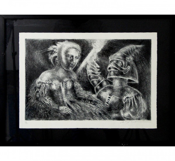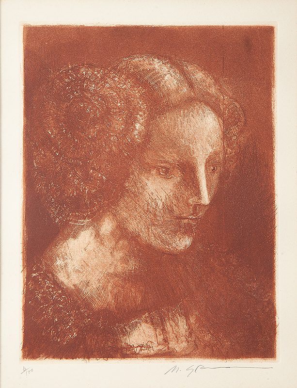 Marcelo Grassmann (1925–2013) – Figura. Gravura em metal, prova do artista (P.A.). Gravador, desenhista, ilustrador e professor brasileiro, referência central da gravura no Brasil, com formação técnica sólida e atuação como ilustrador da imprensa. Ass. CID. Dimensões: 42 × 32 cm.