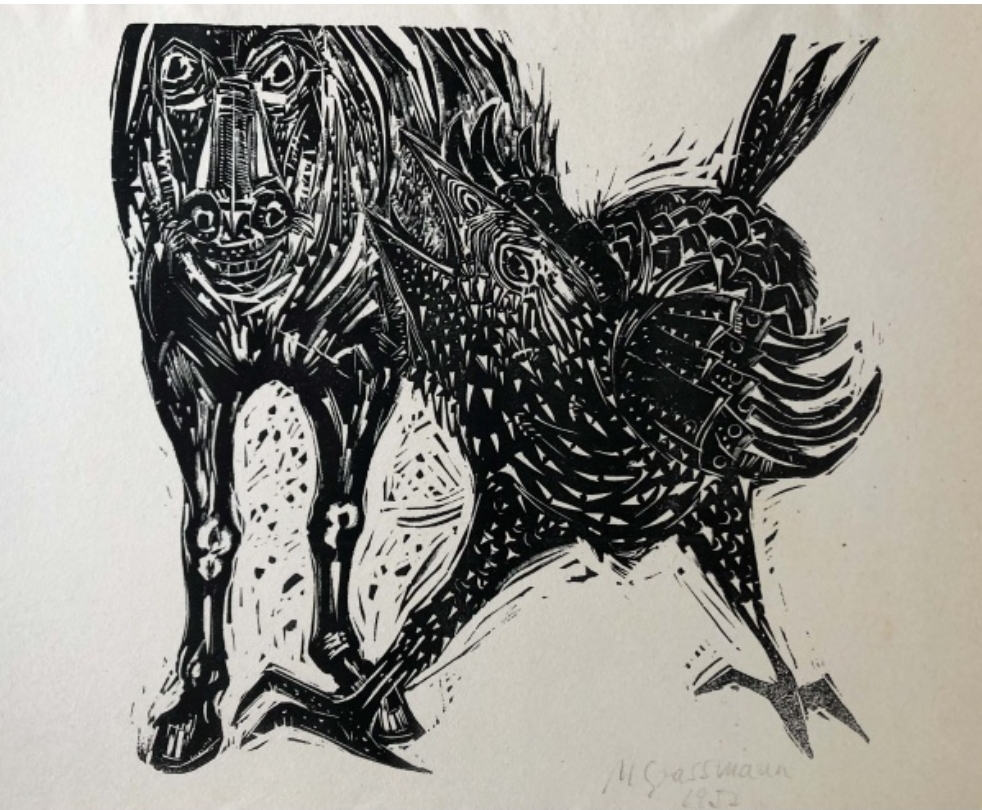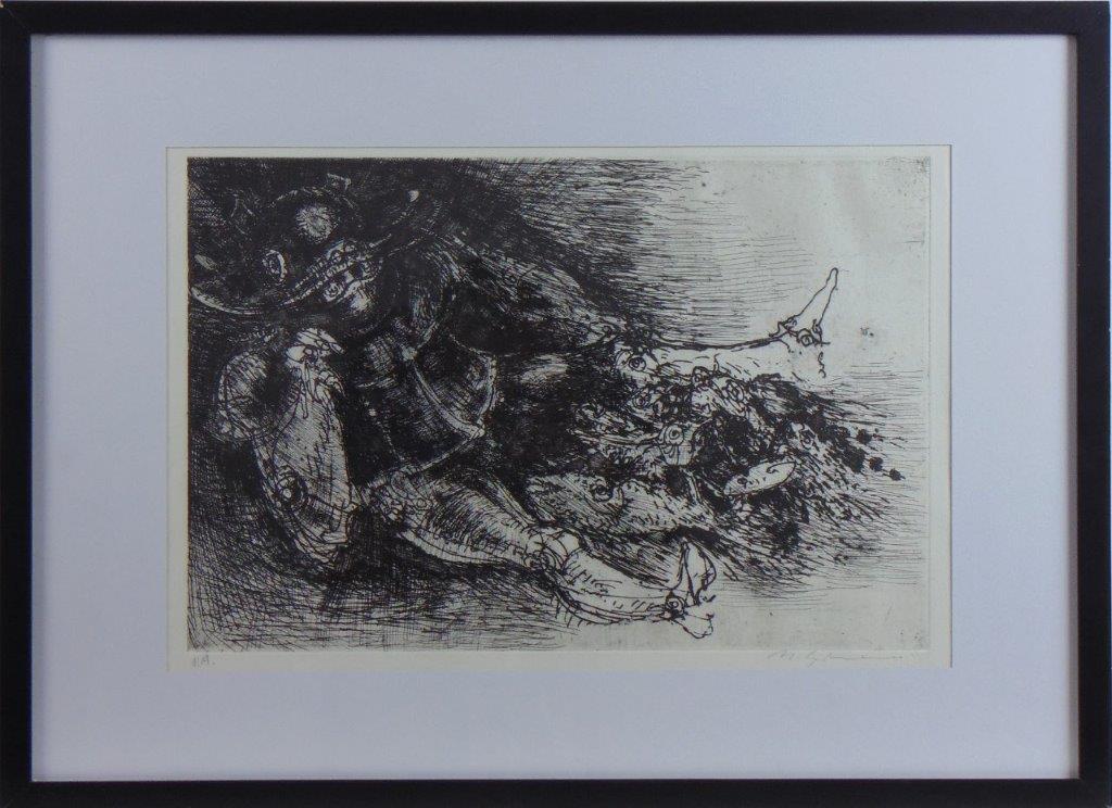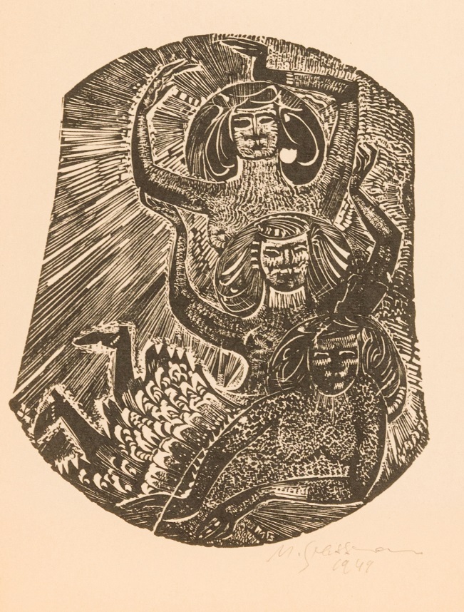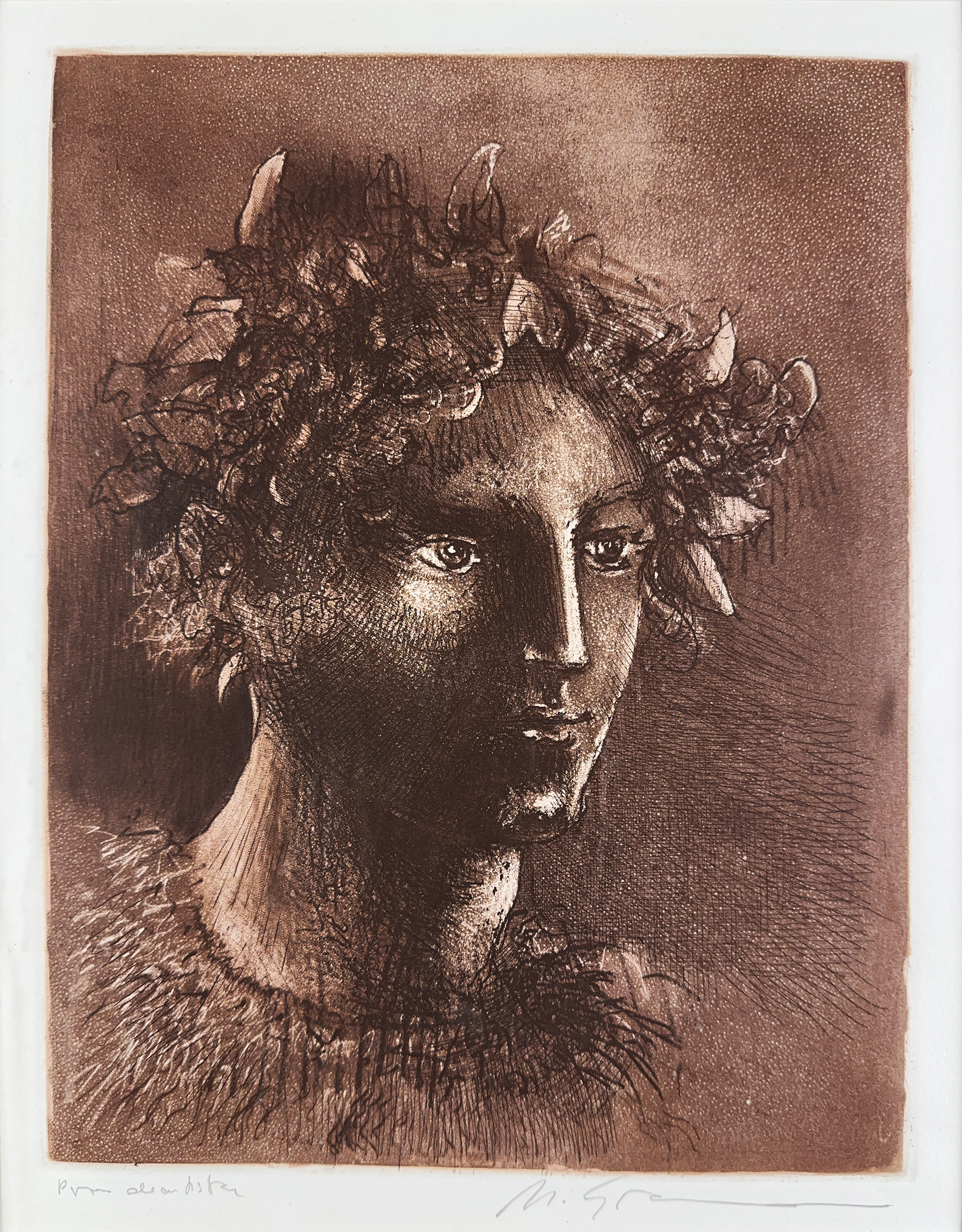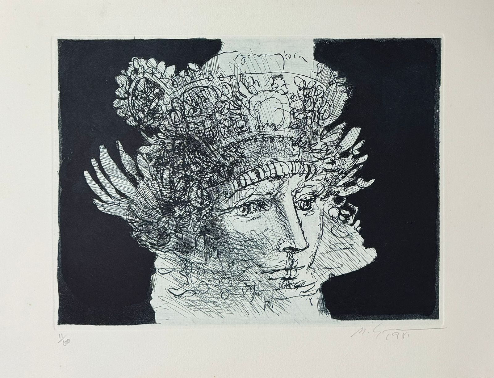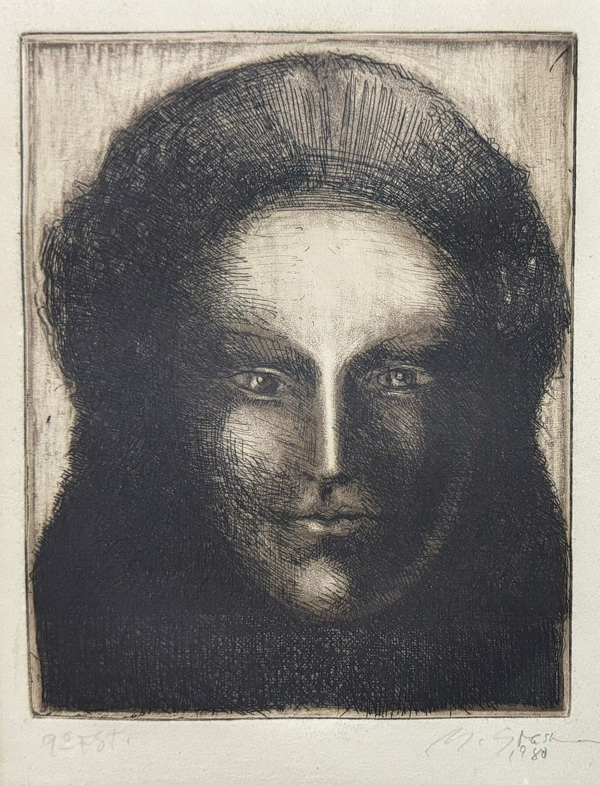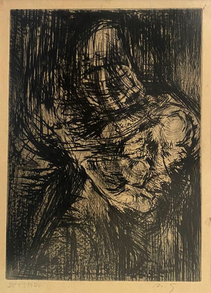 Marcelo Grassmann (1925–2013) – Figura. Gravura em metal, prova do artista (P.A.). Gravador, desenhista, ilustrador e professor brasileiro, referência central da gravura no Brasil, com formação técnica sólida e atuação como ilustrador da imprensa. Ass. CID. Dimensões: 42 × 32 cm.