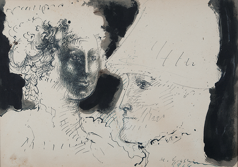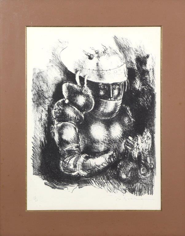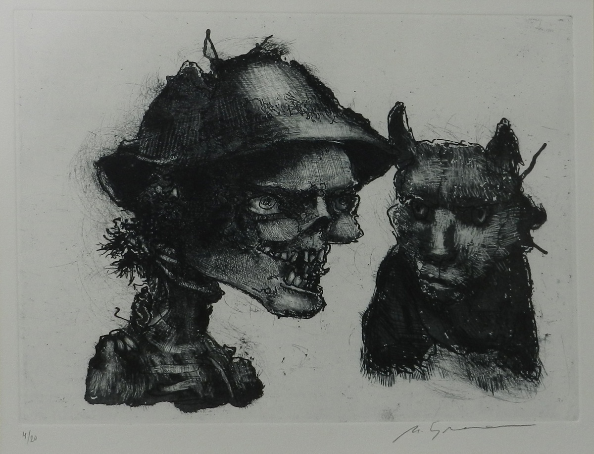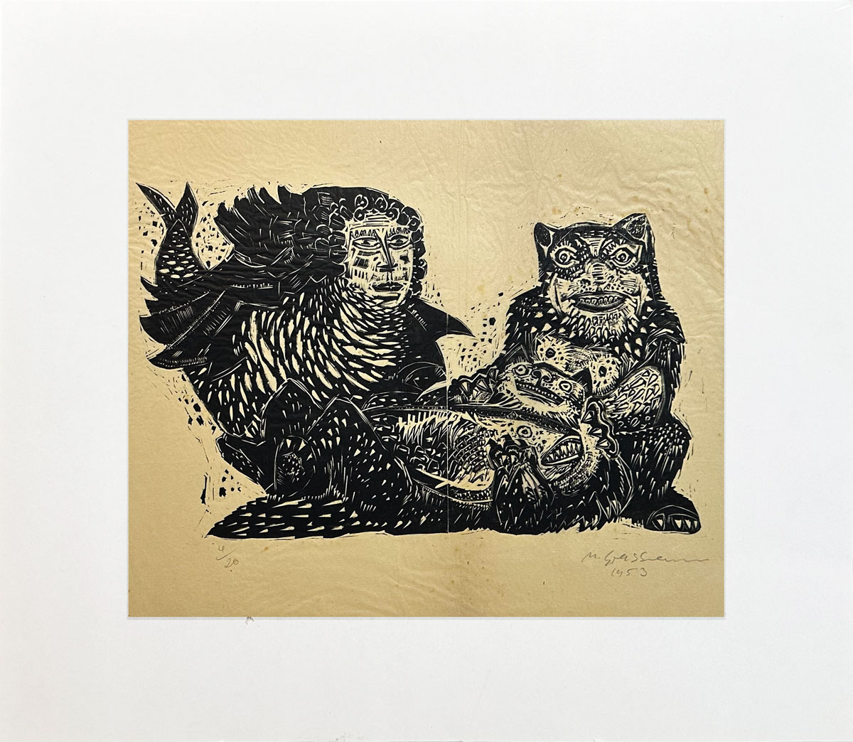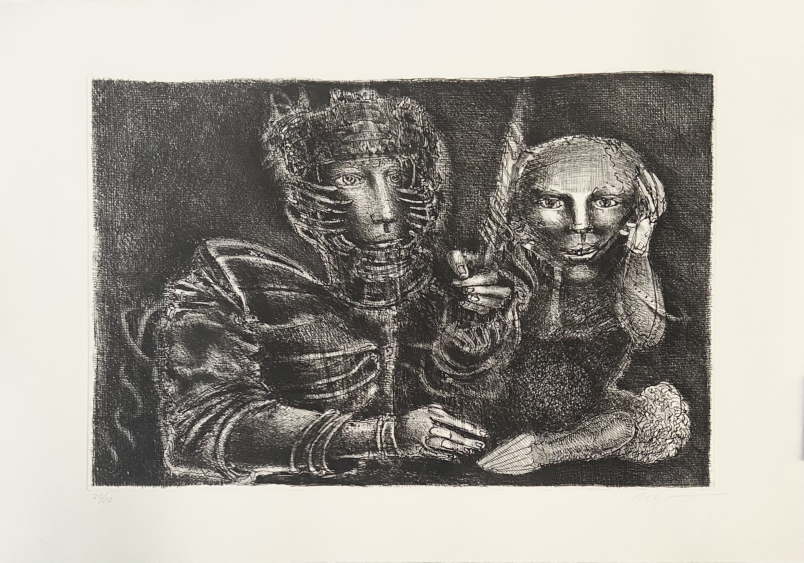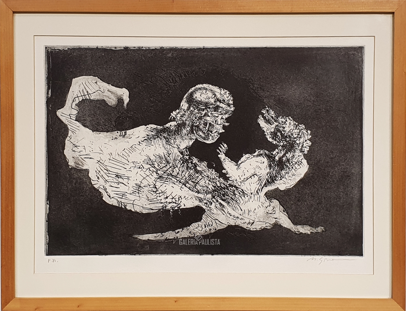 Marcelo Grassmann (1925–2013) – Figura. Gravura em metal, prova do artista (P.A.). Gravador, desenhista, ilustrador e professor brasileiro, referência central da gravura no Brasil, com formação técnica sólida e atuação como ilustrador da imprensa. Ass. CID. Dimensões: 42 × 32 cm.