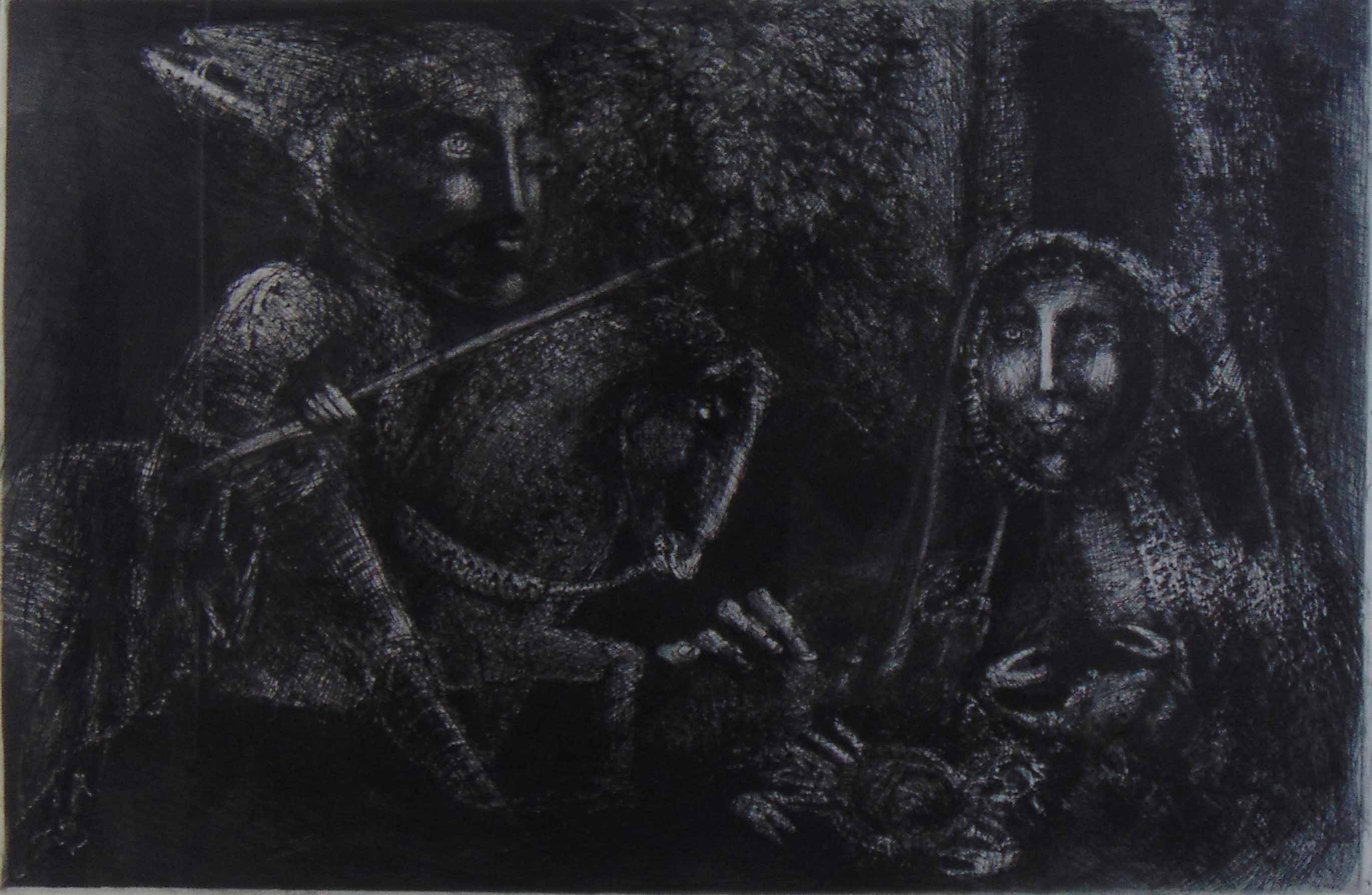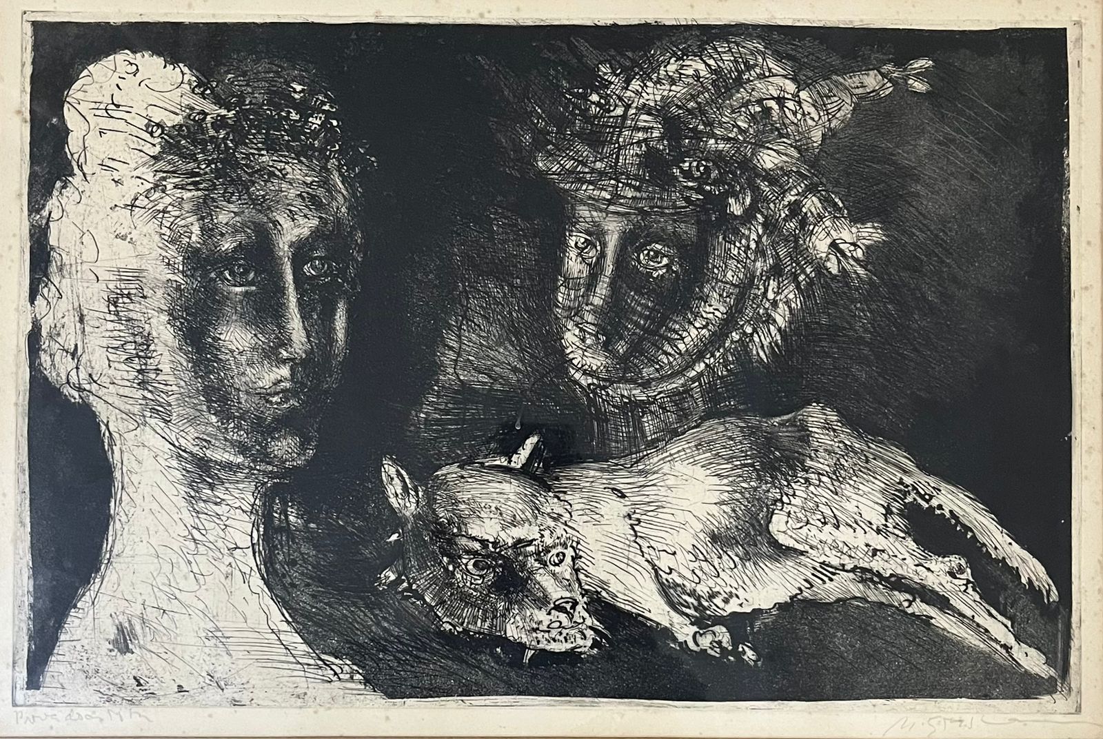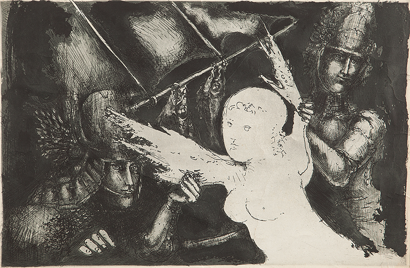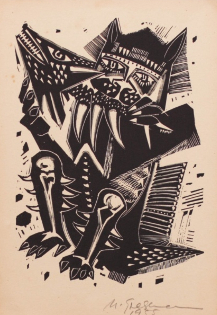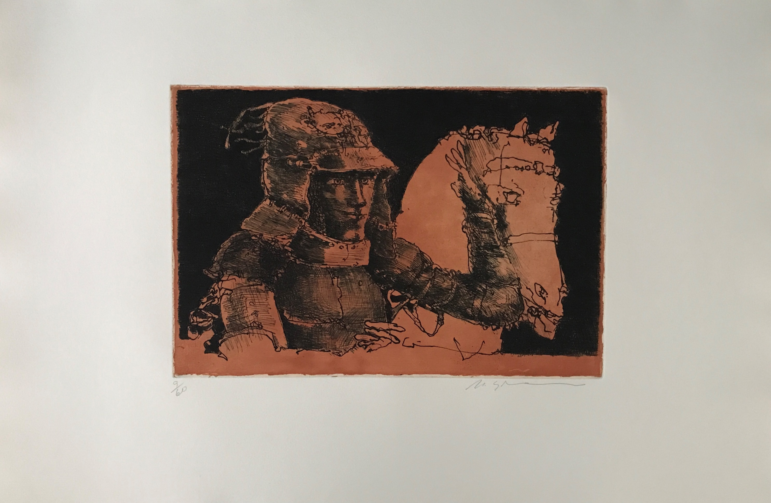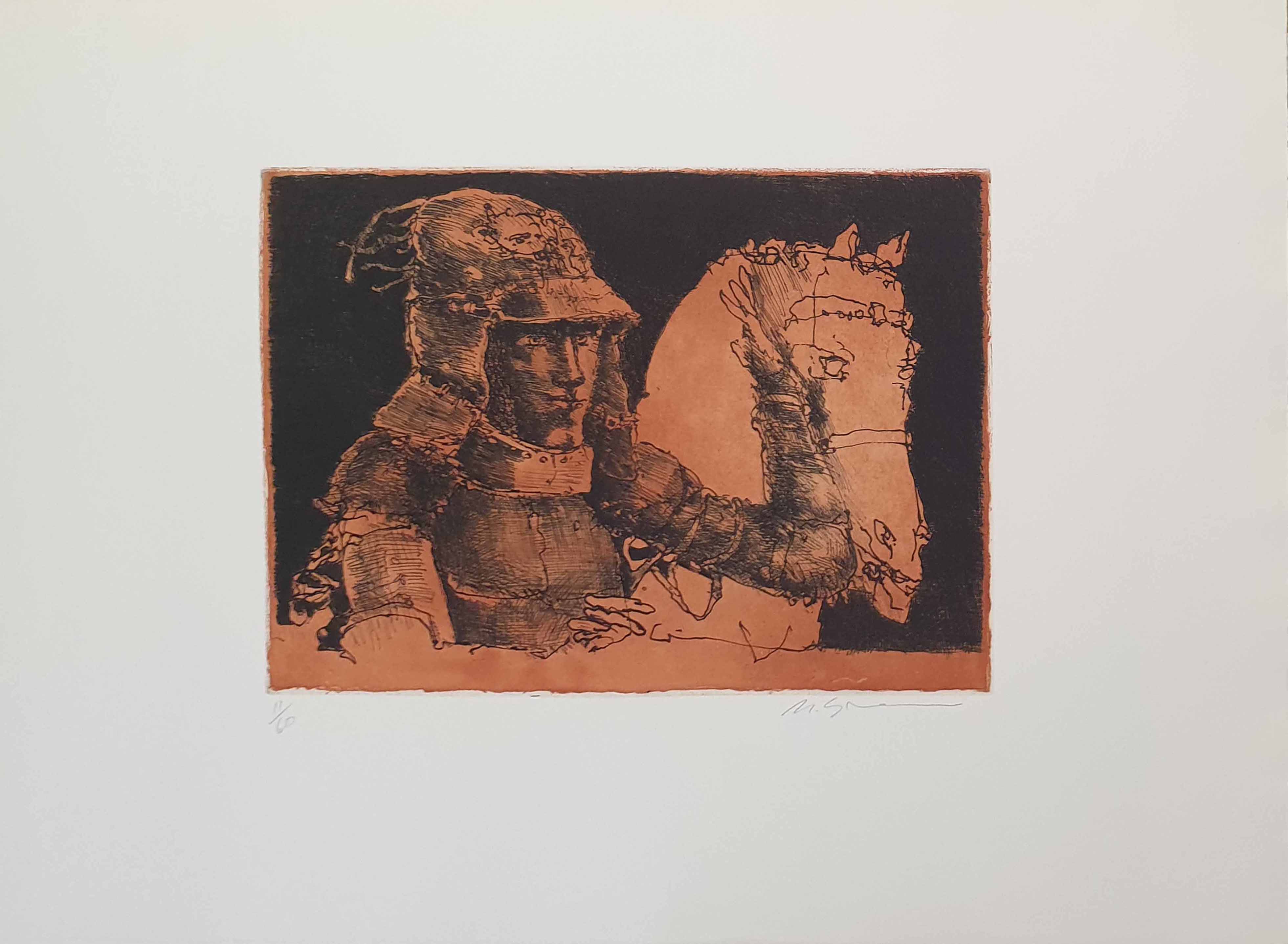 Marcelo Grassmann (1925–2013) – Figura. Gravura em metal, prova do artista (P.A.). Gravador, desenhista, ilustrador e professor brasileiro, referência central da gravura no Brasil, com formação técnica sólida e atuação como ilustrador da imprensa. Ass. CID. Dimensões: 42 × 32 cm.