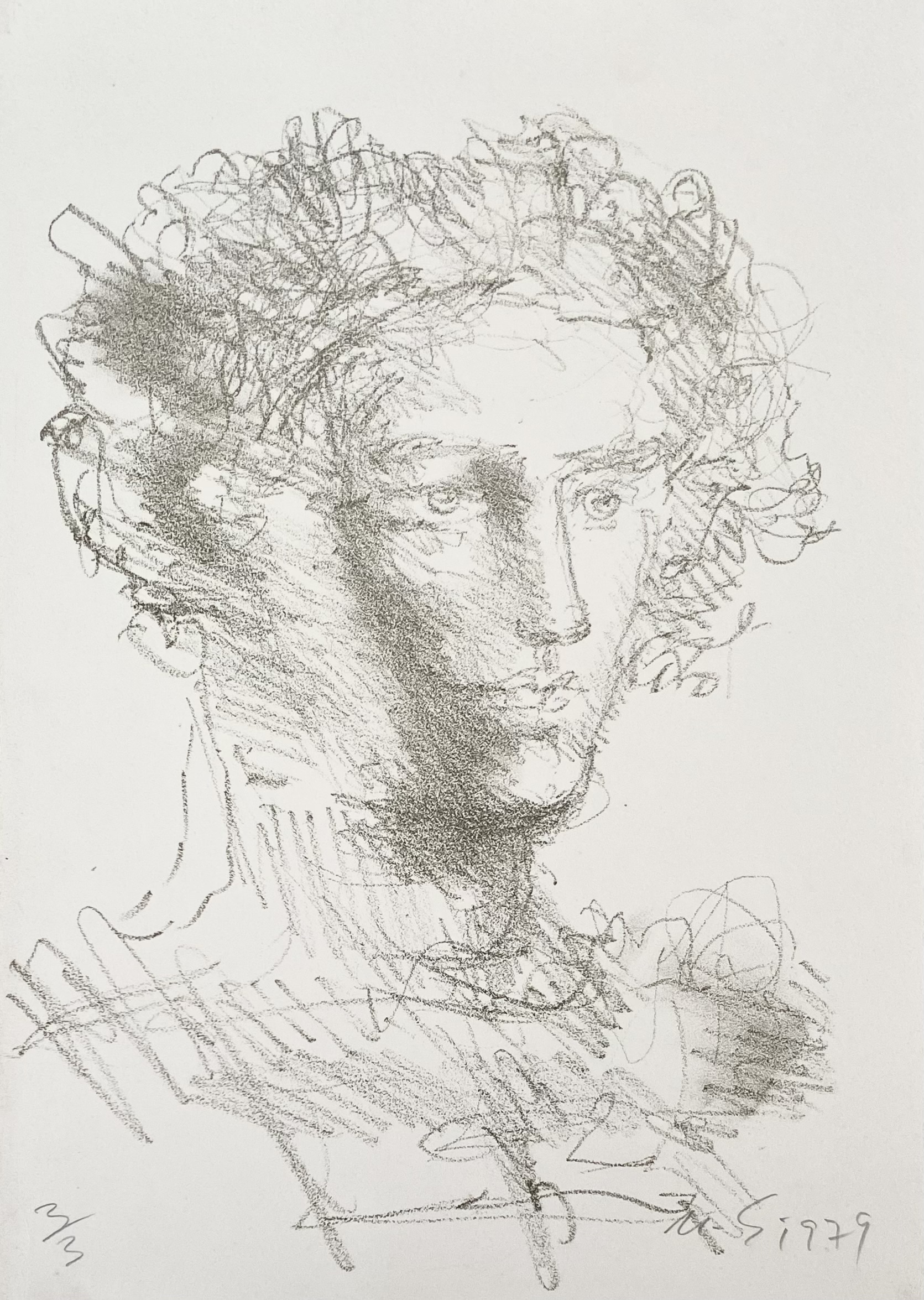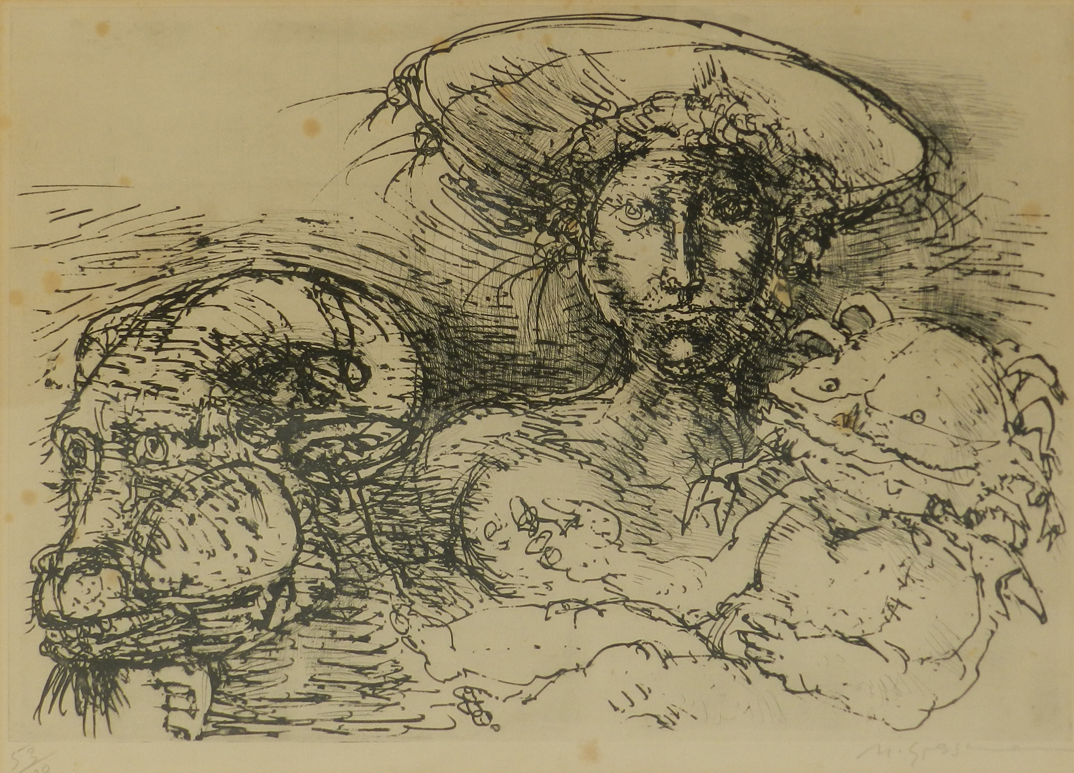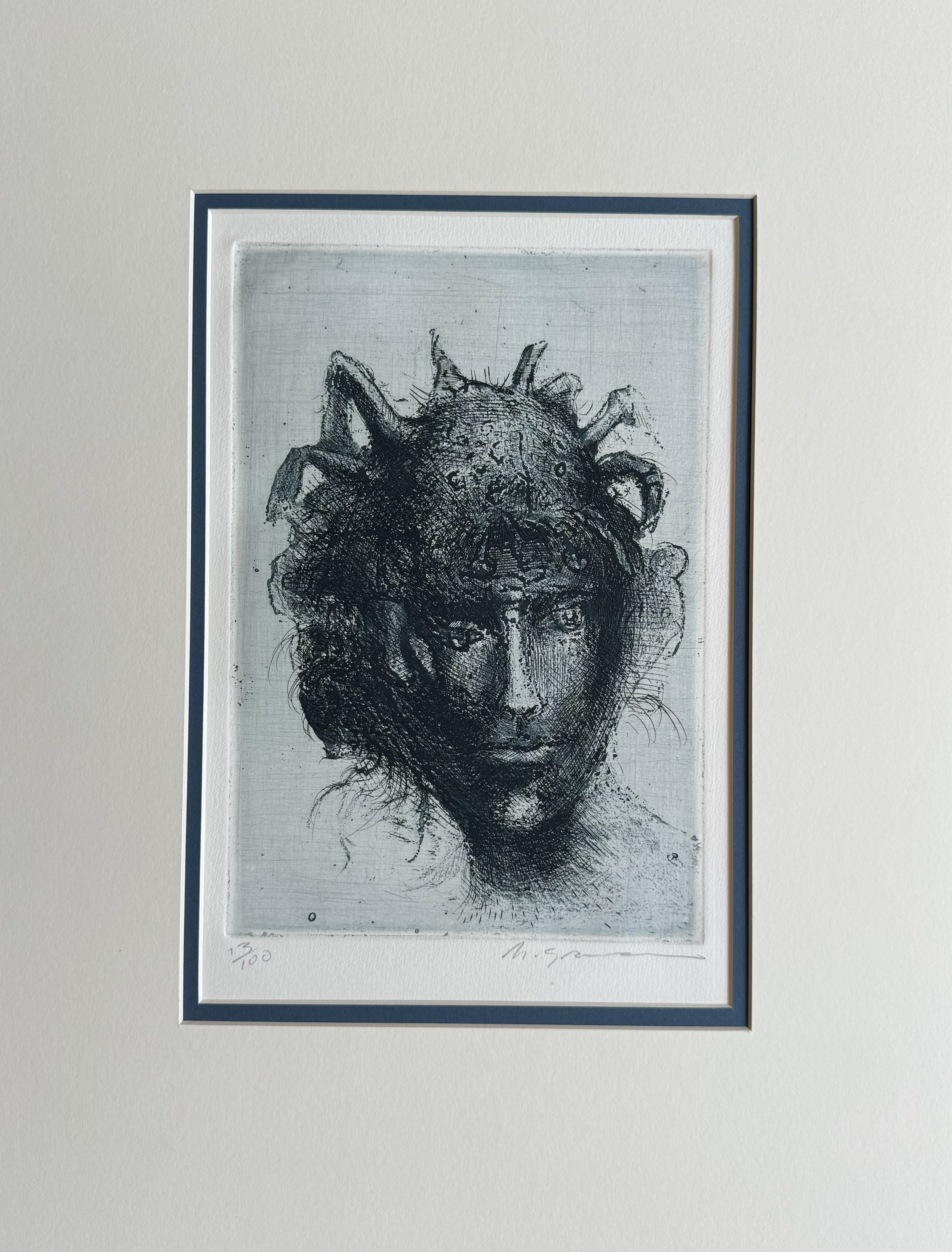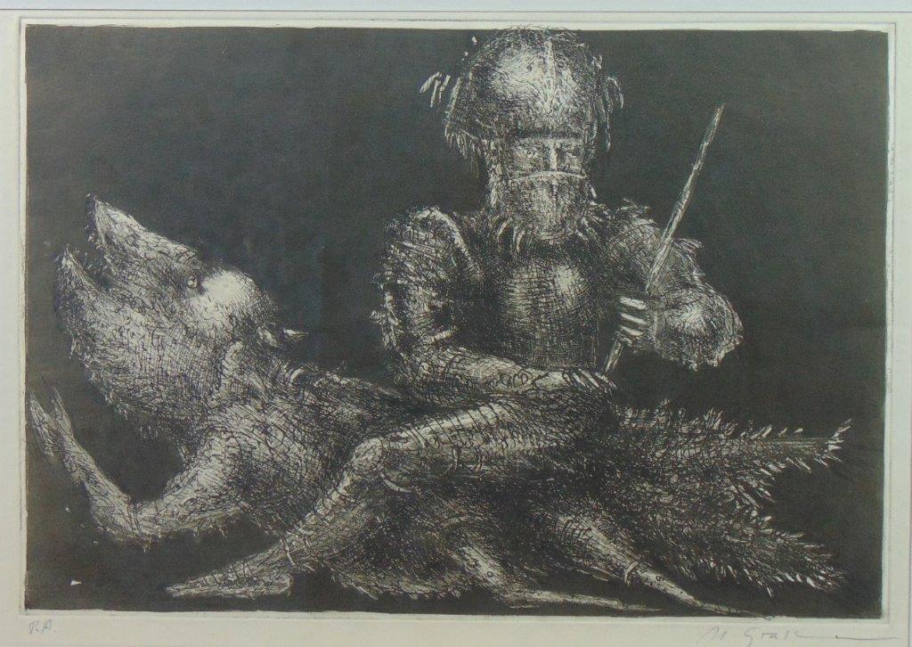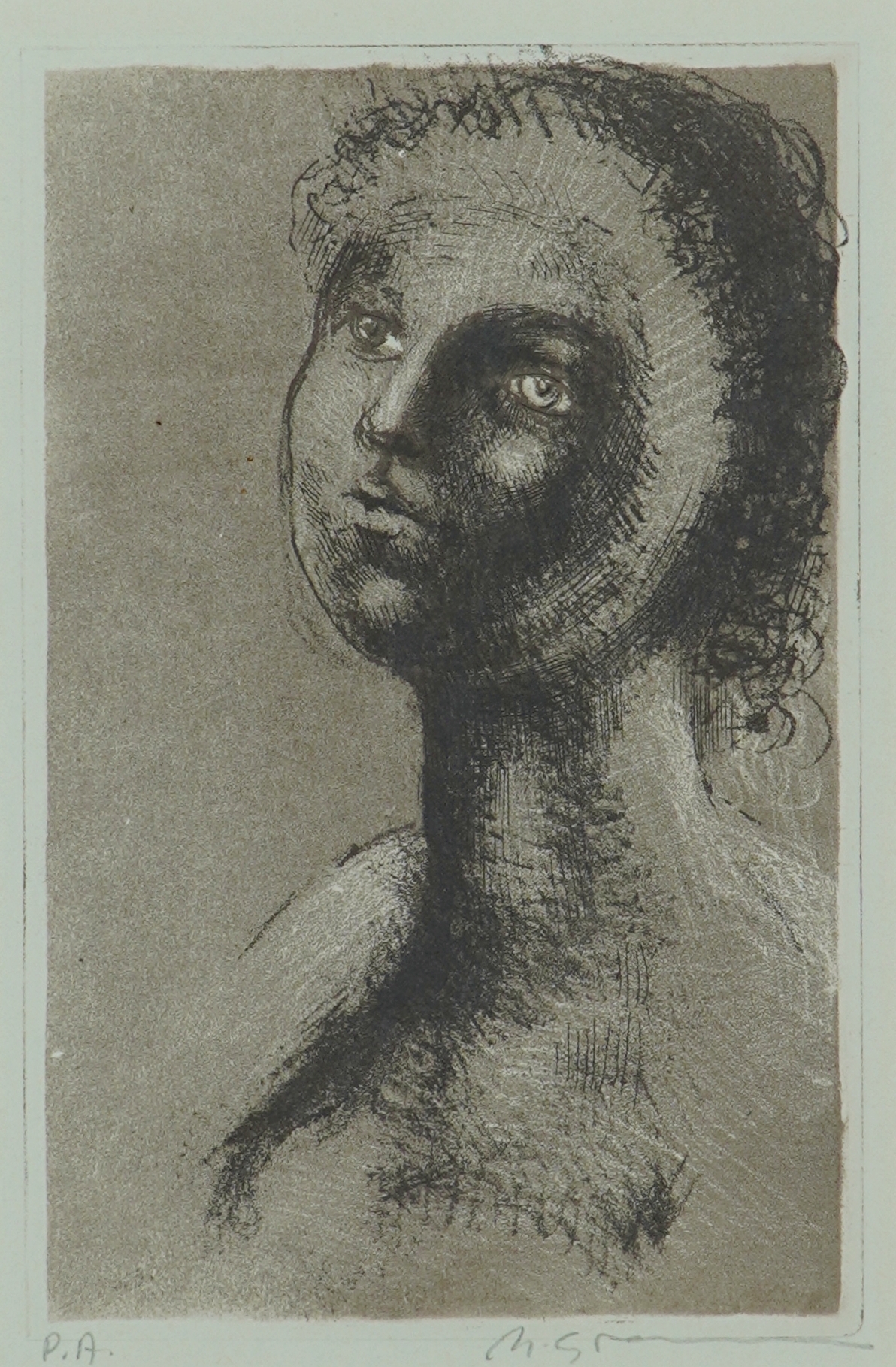 Marcelo Grassmann (1925–2013) – Figura. Gravura em metal, prova do artista (P.A.). Gravador, desenhista, ilustrador e professor brasileiro, referência central da gravura no Brasil, com formação técnica sólida e atuação como ilustrador da imprensa. Ass. CID. Dimensões: 42 × 32 cm.