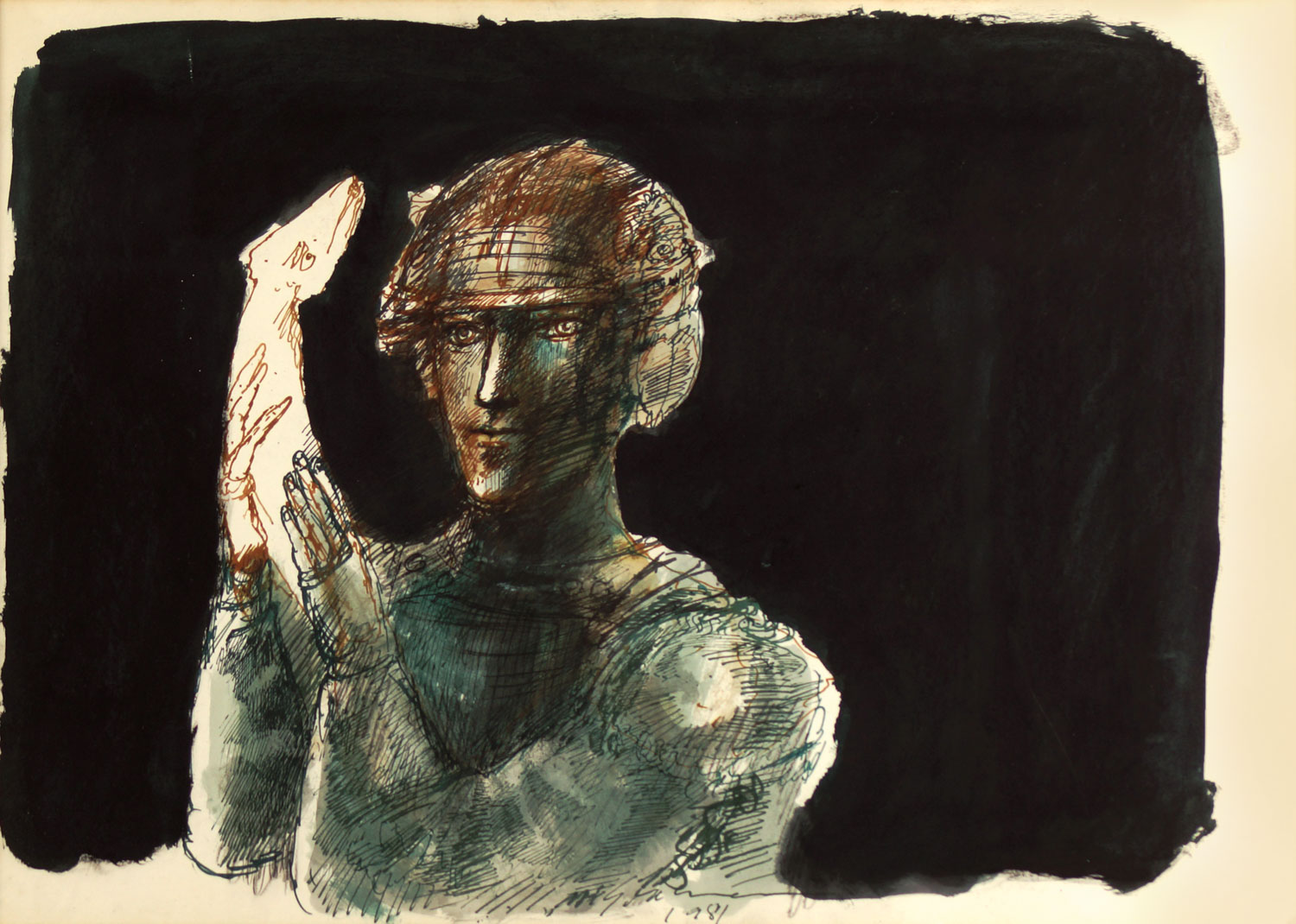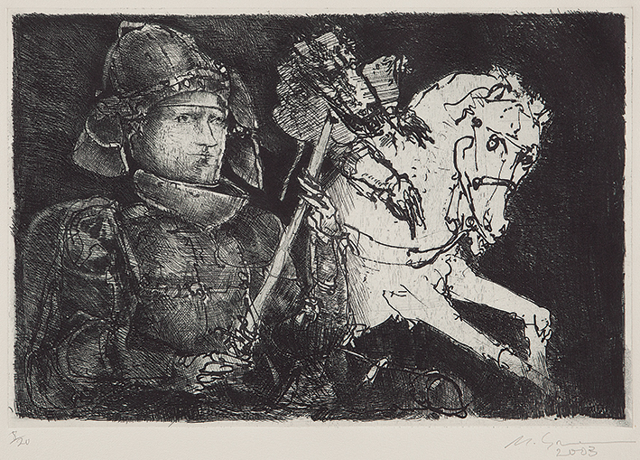 Marcelo Grassmann - Guerreiro. Nanquim, aguada e lápis de cera sobre papel, 35x50 cm, 2008, A.C.I.D. Sem moldura