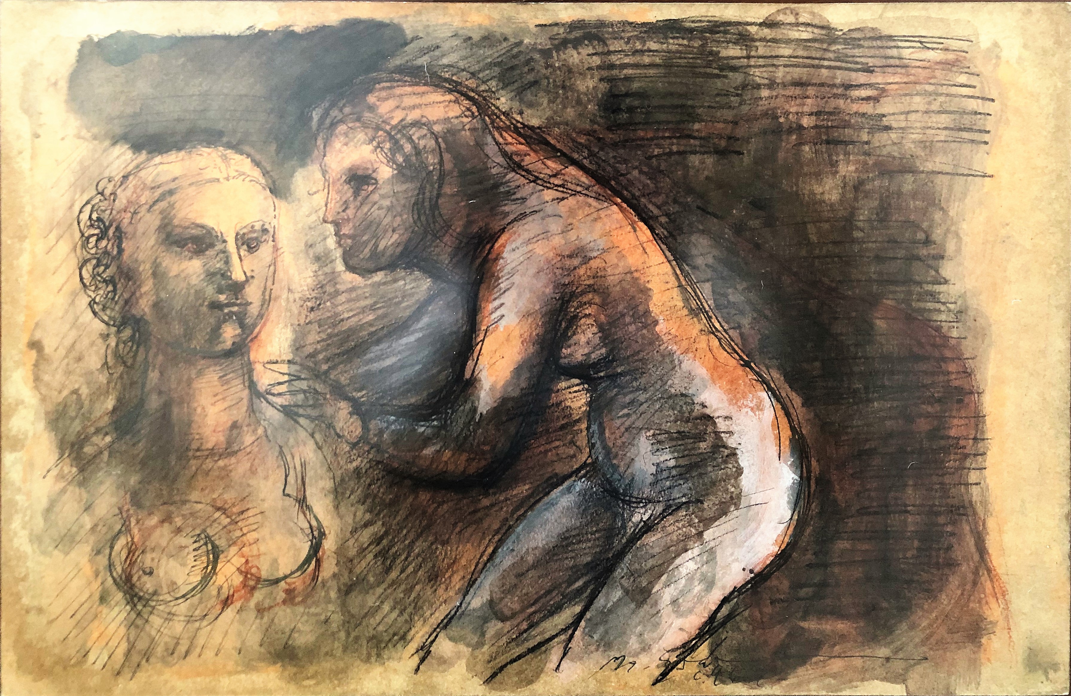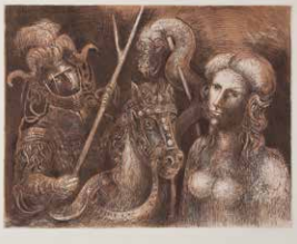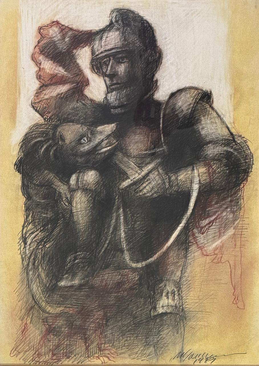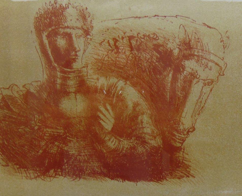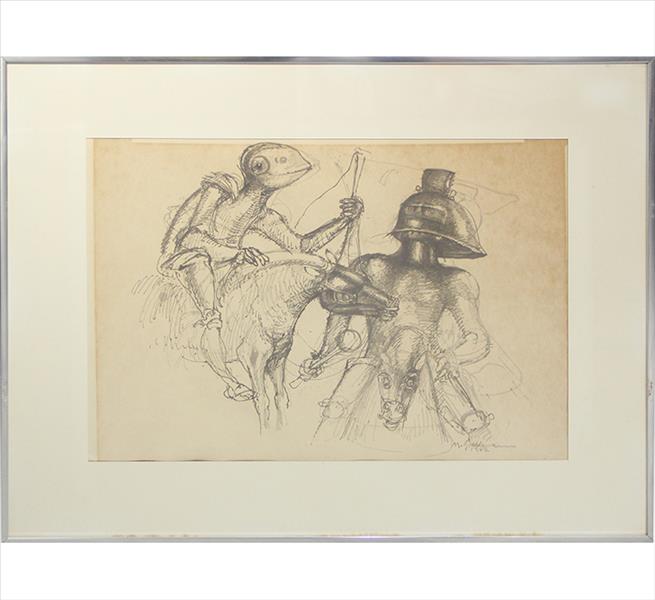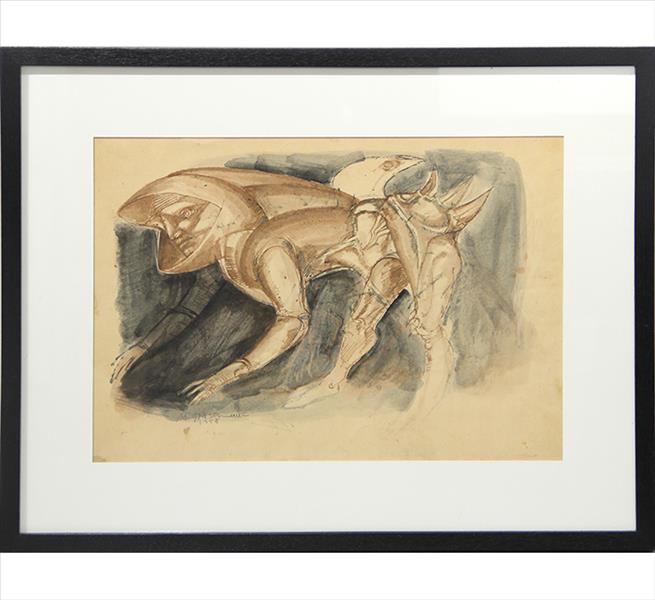 MARCELLO GRASSMANN, Guerreiro, Técnica Mista sobre Papel, ACID, 35 x 45cm (m.i). Datado 1971 (papel com manchas de umidade)