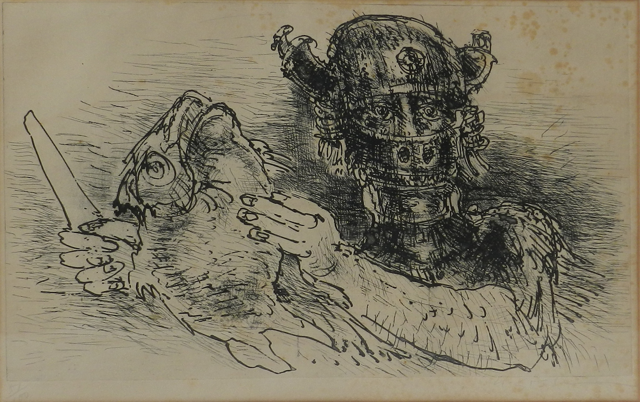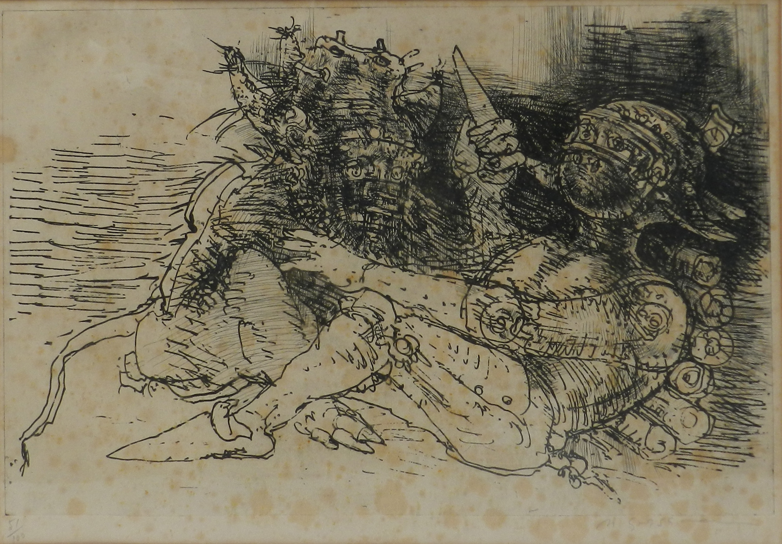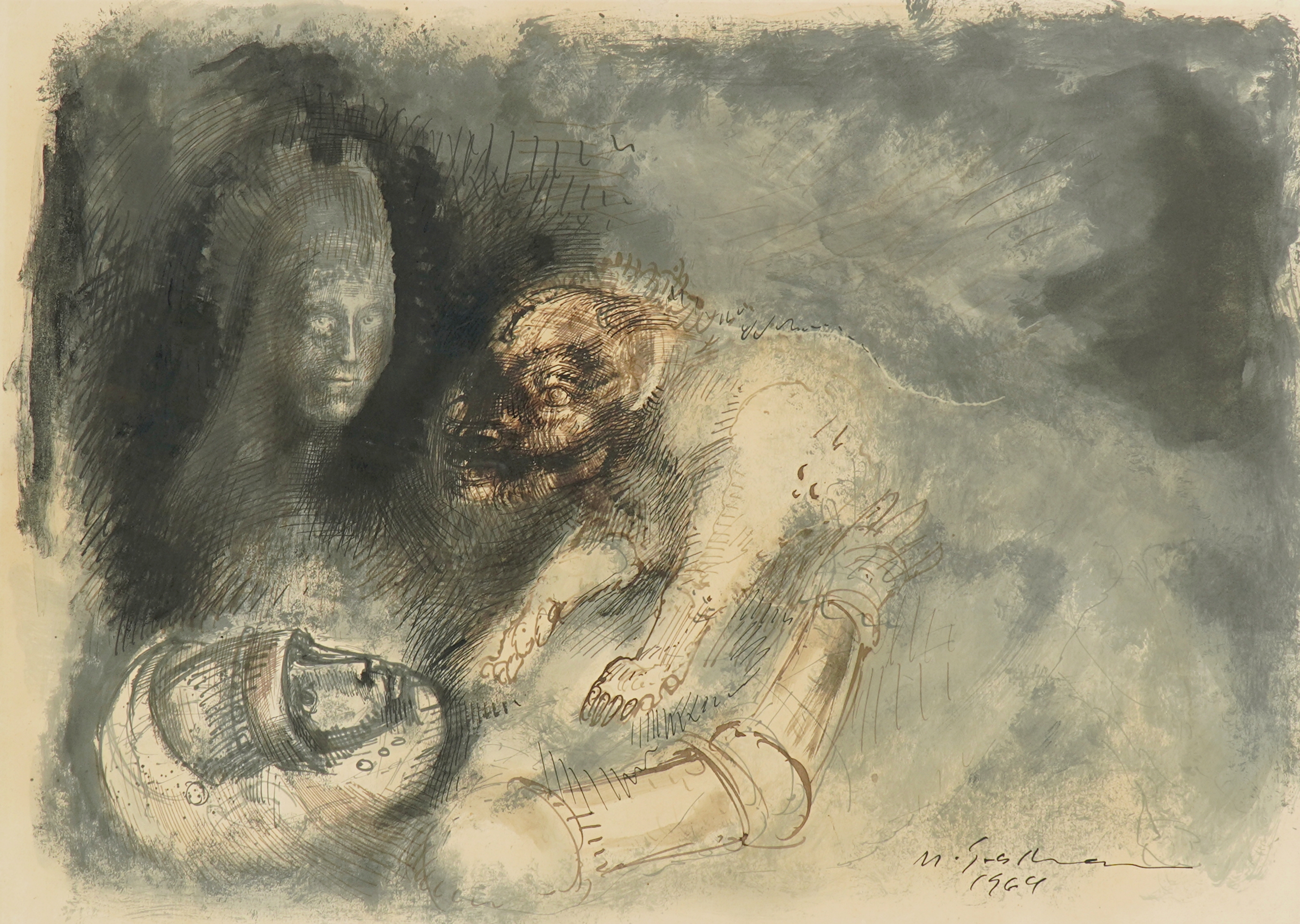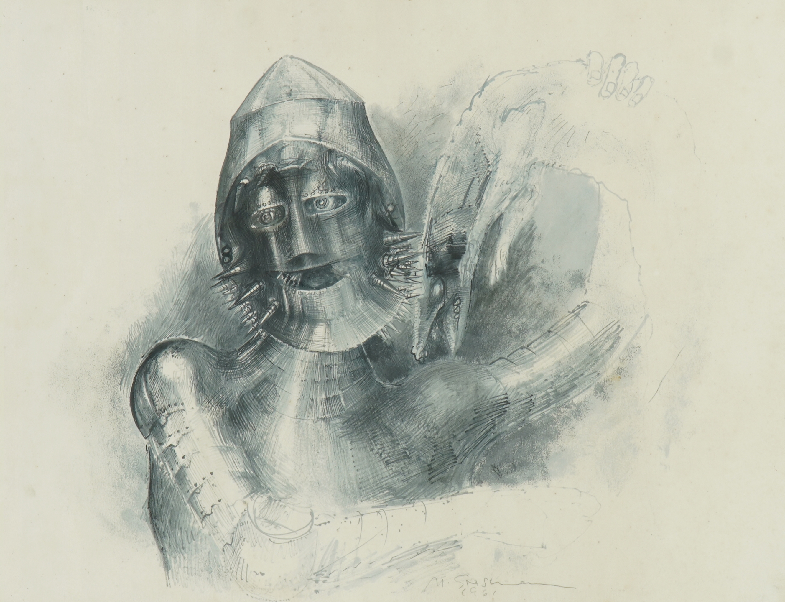 MARCELLO GRASSMANN, Guerreiro, Técnica Mista sobre Papel, ACID, 35 x 45cm (m.i). Datado 1971 (papel com manchas de umidade)