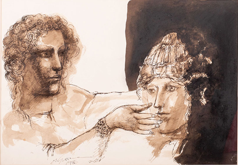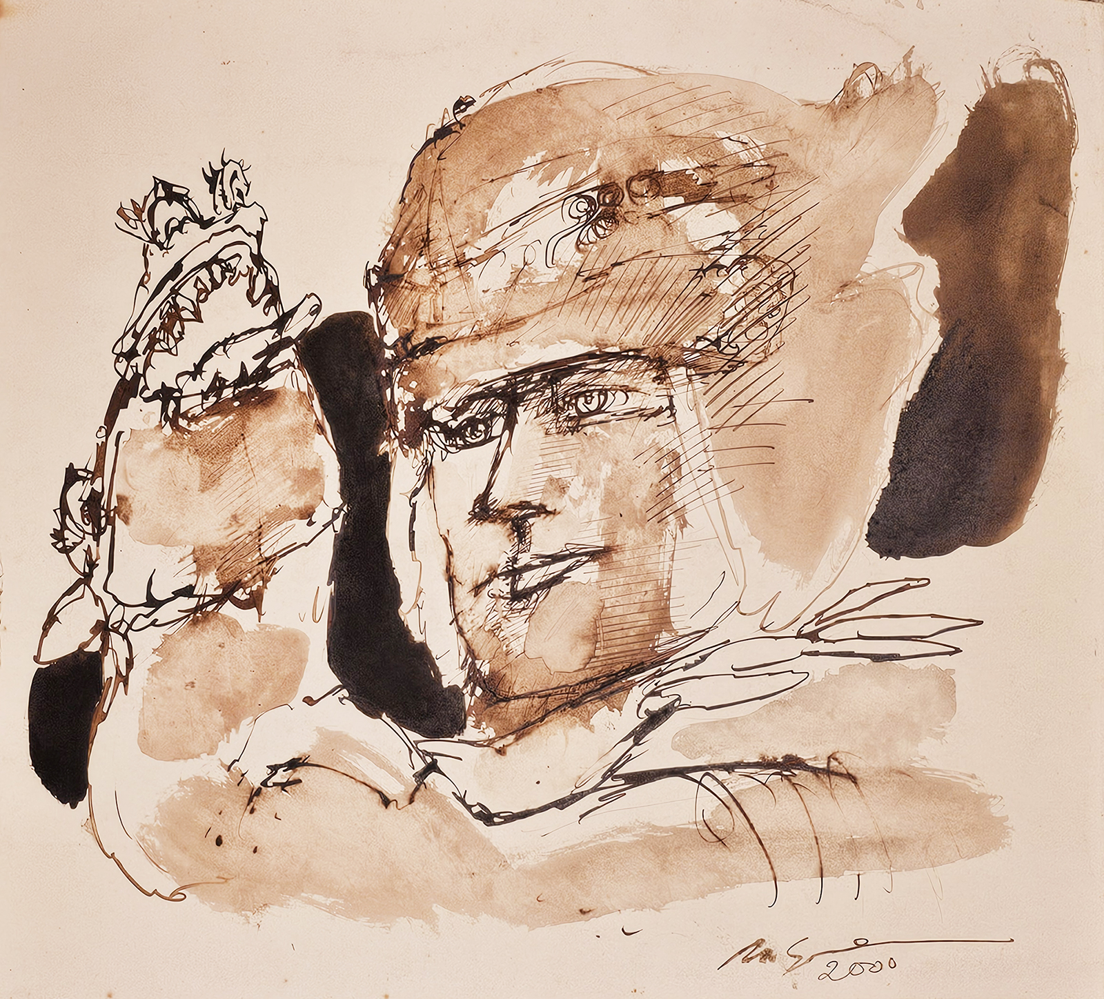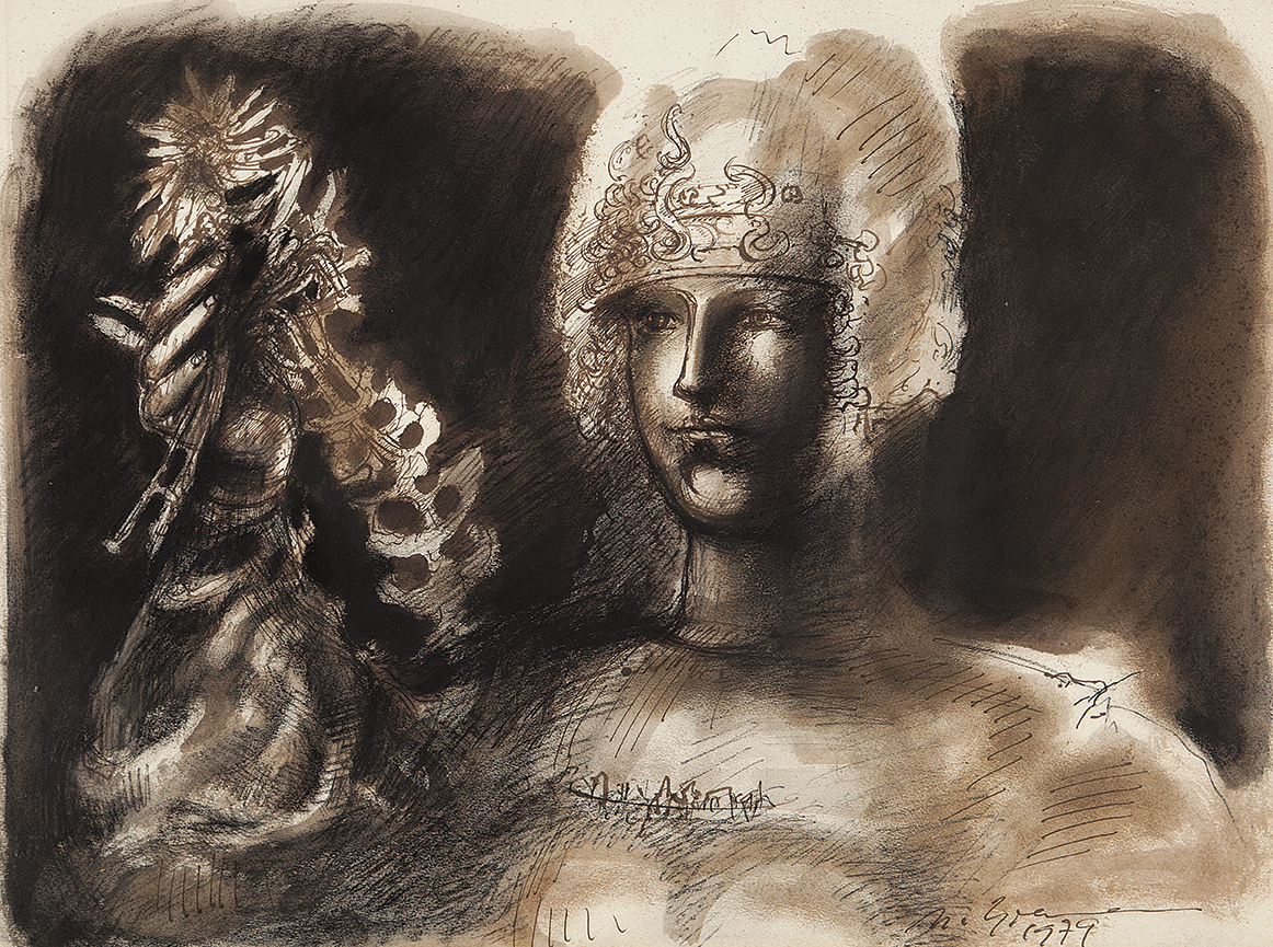 Marcelo Grassmann - Guerreiro. Nanquim e aguada sobre papel, 40x49,5 cm, 2000, A.C.I.D. Sem moldura