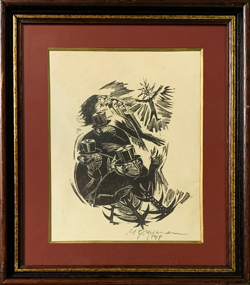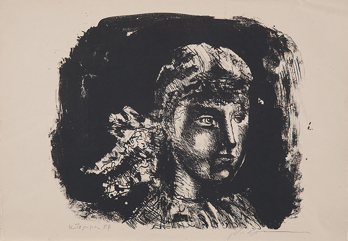 Marcelo Grassmann (1925–2013) – Figura. Gravura em metal, prova do artista (P.A.). Gravador, desenhista, ilustrador e professor brasileiro, referência central da gravura no Brasil, com formação técnica sólida e atuação como ilustrador da imprensa. Ass. CID. Dimensões: 42 × 32 cm.