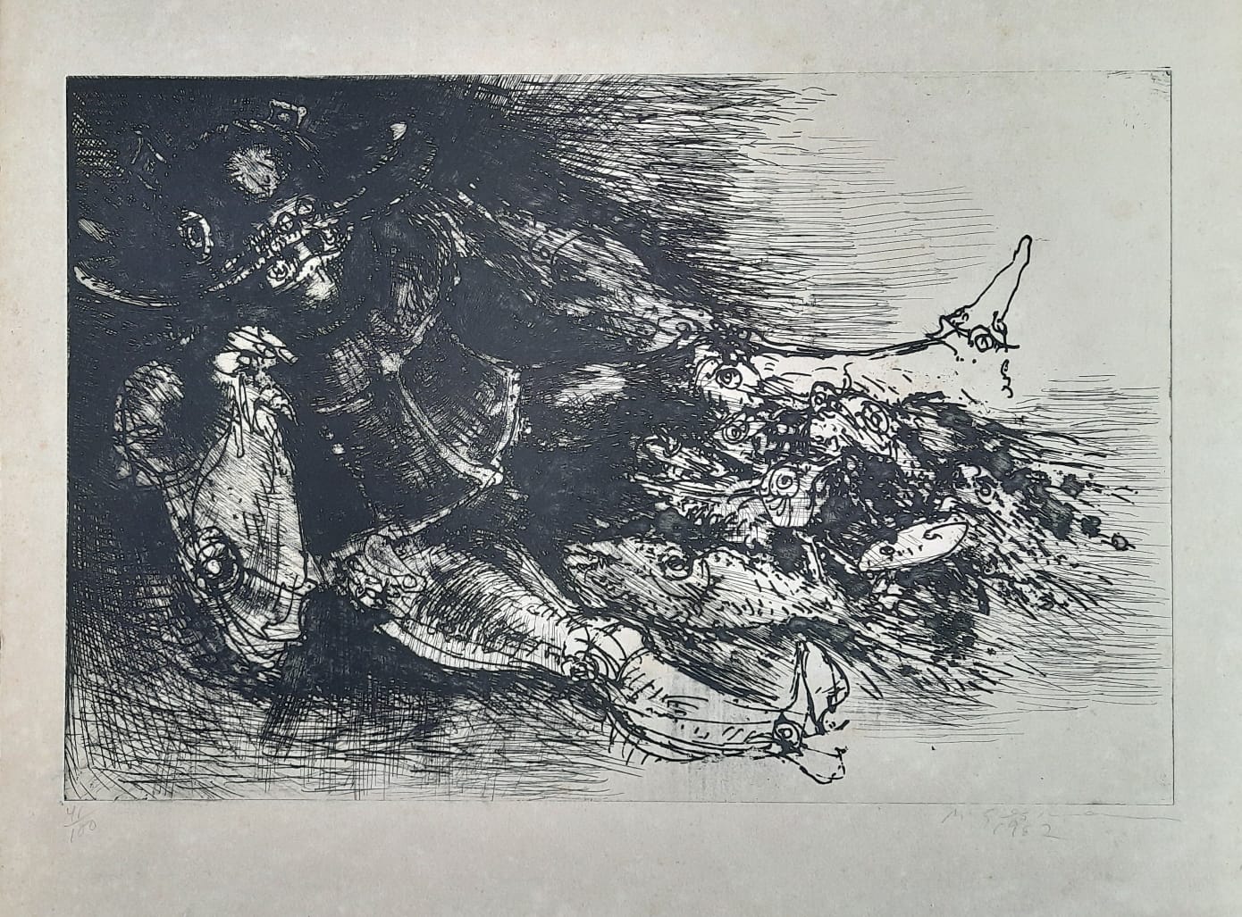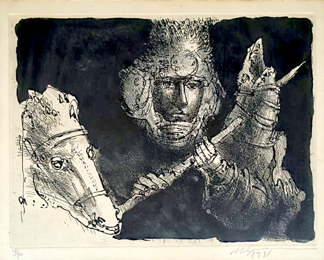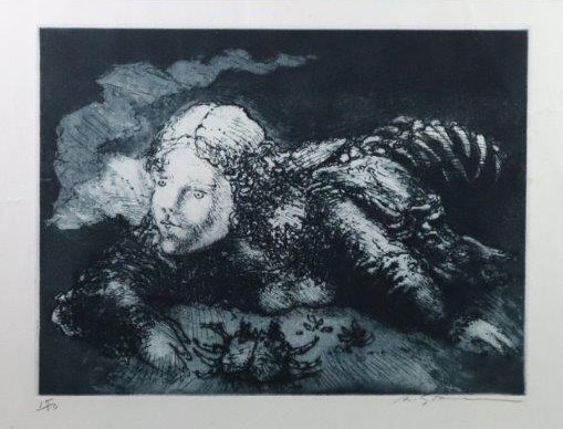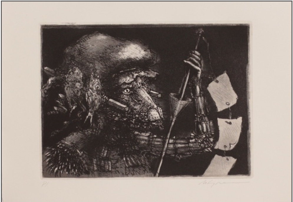 Marcelo Grassmann (1925–2013) – Figura. Gravura em metal, prova do artista (P.A.). Gravador, desenhista, ilustrador e professor brasileiro, referência central da gravura no Brasil, com formação técnica sólida e atuação como ilustrador da imprensa. Ass. CID. Dimensões: 42 × 32 cm.