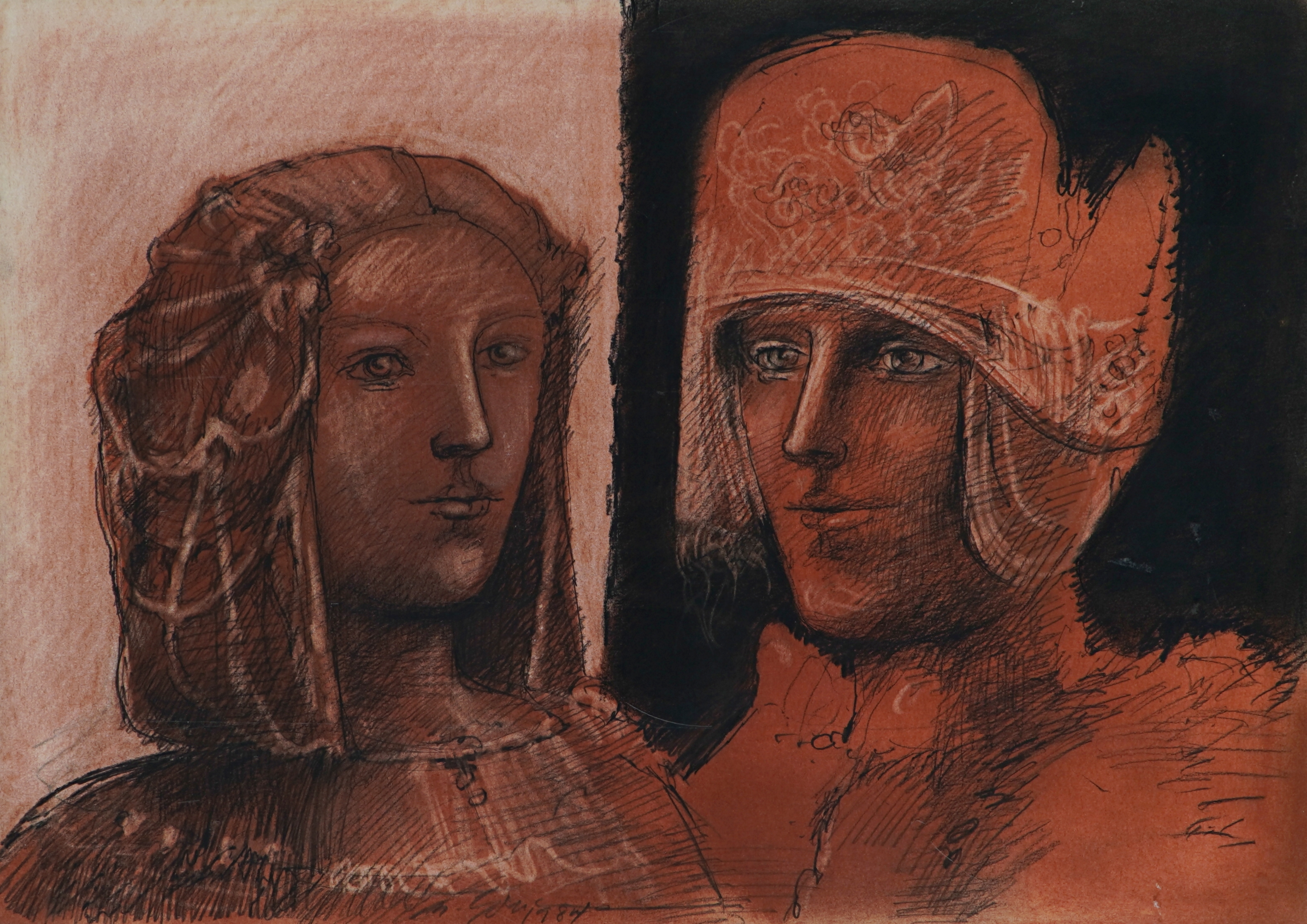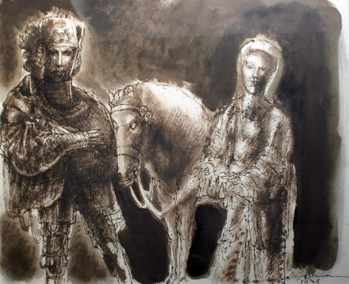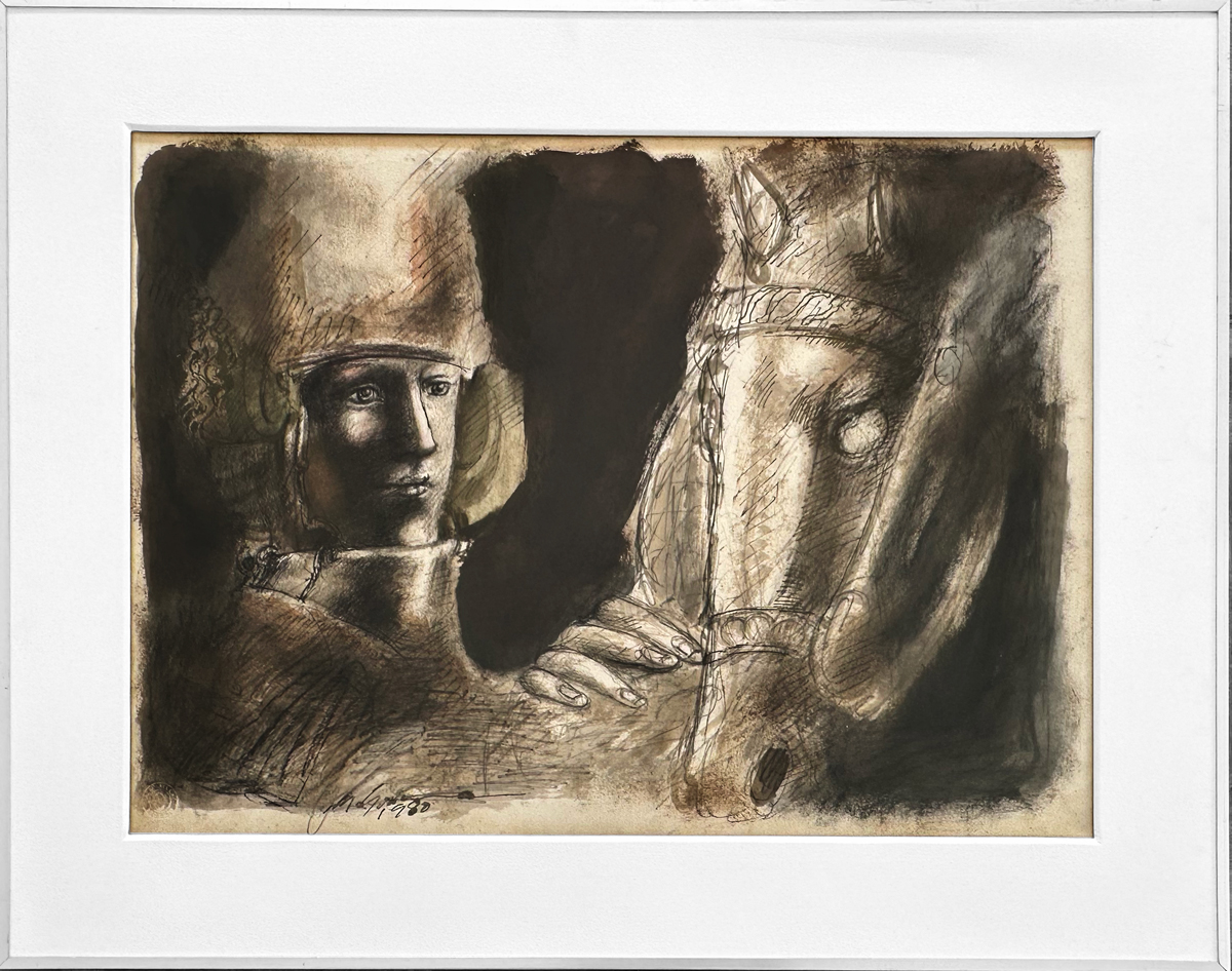 MARCELLO GRASSMANN, Guerreiro, Técnica Mista sobre Papel, ACID, 35 x 45cm (m.i). Datado 1971 (papel com manchas de umidade)