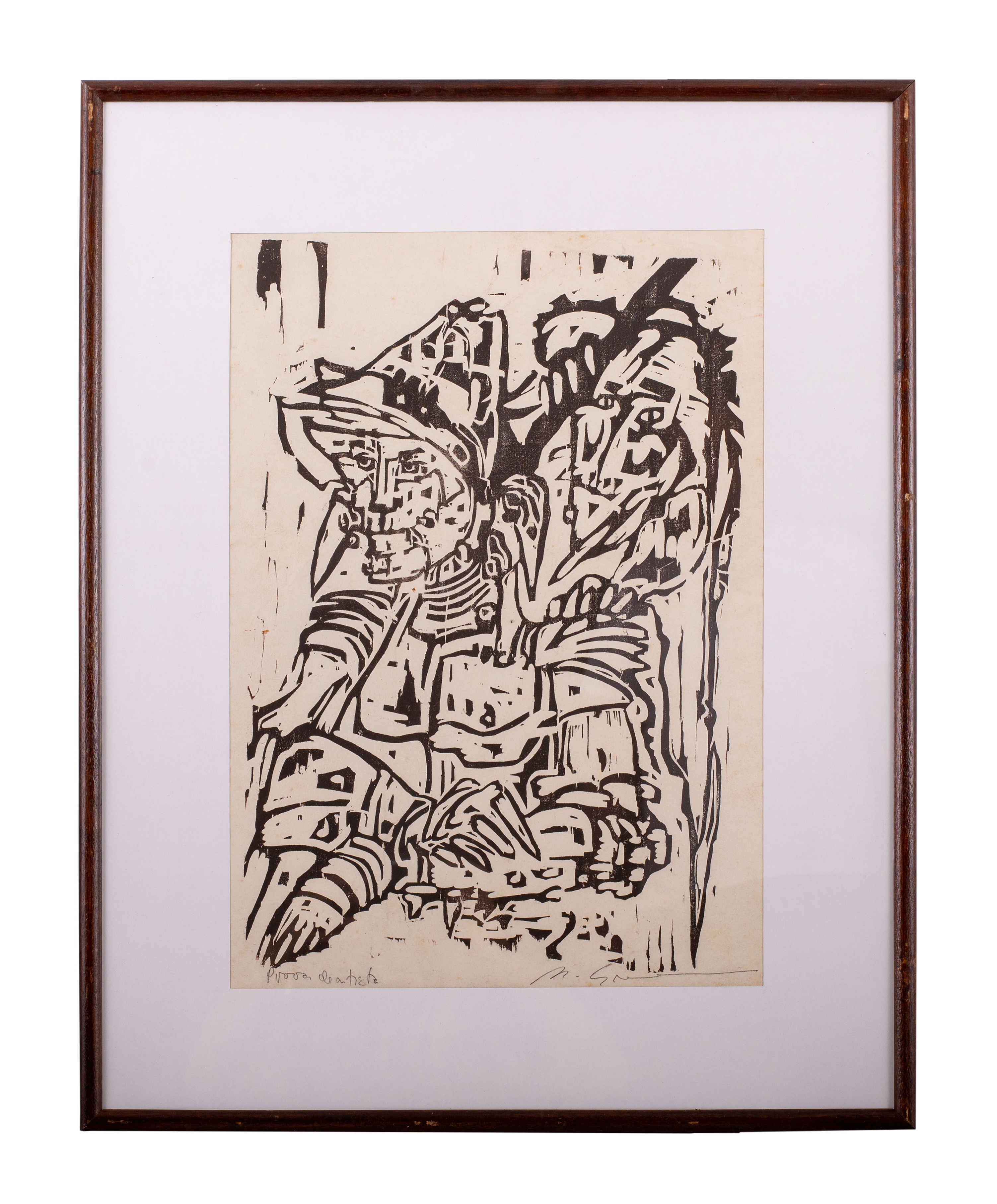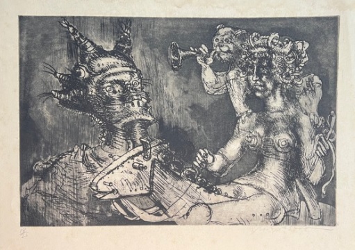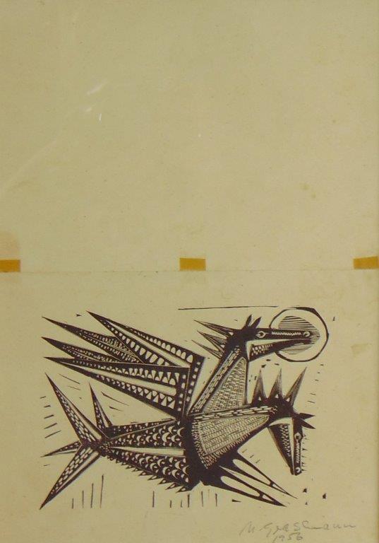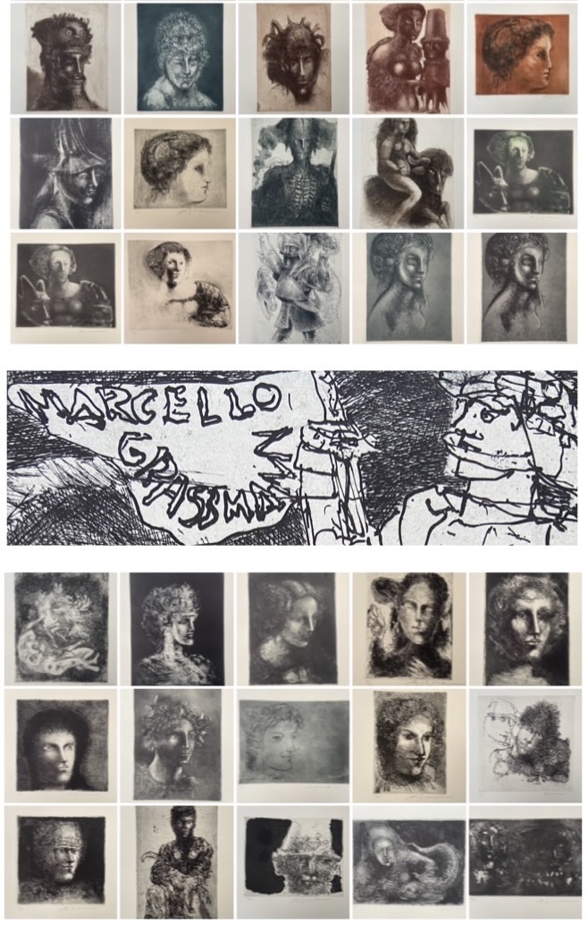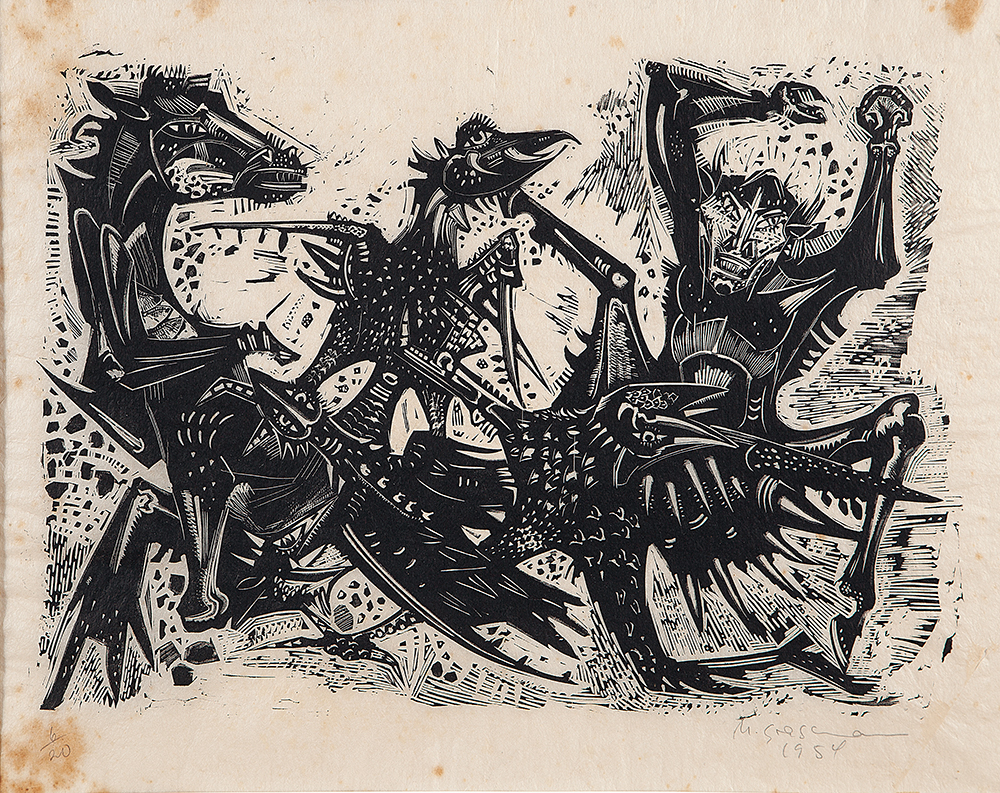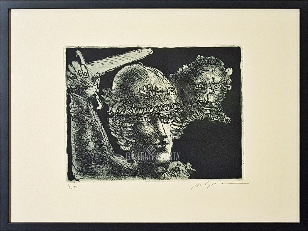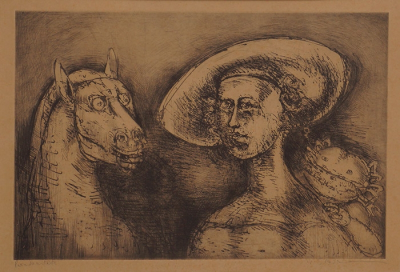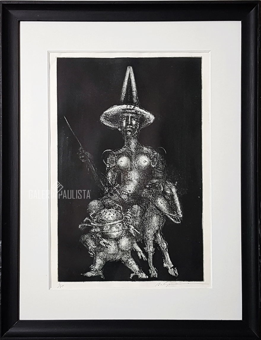 Marcelo Grassmann (1925–2013) – Figura. Gravura em metal, prova do artista (P.A.). Gravador, desenhista, ilustrador e professor brasileiro, referência central da gravura no Brasil, com formação técnica sólida e atuação como ilustrador da imprensa. Ass. CID. Dimensões: 42 × 32 cm.