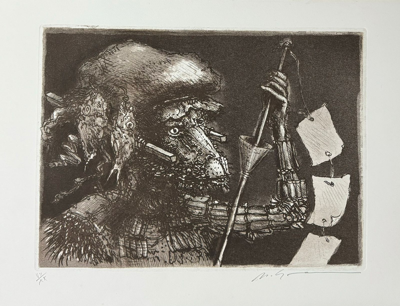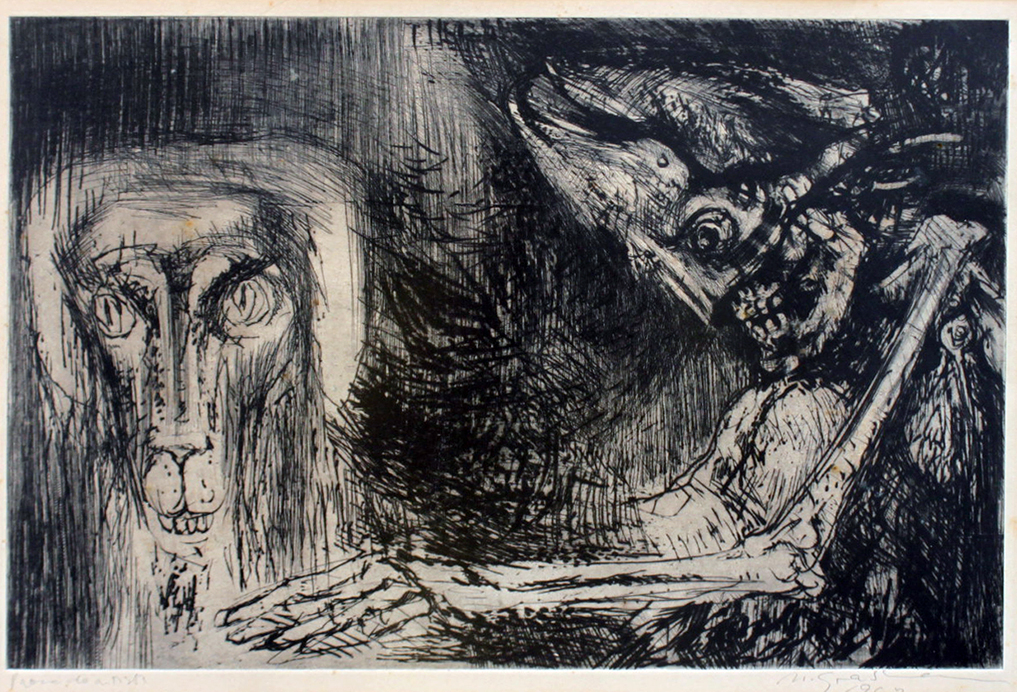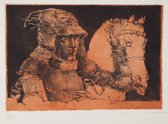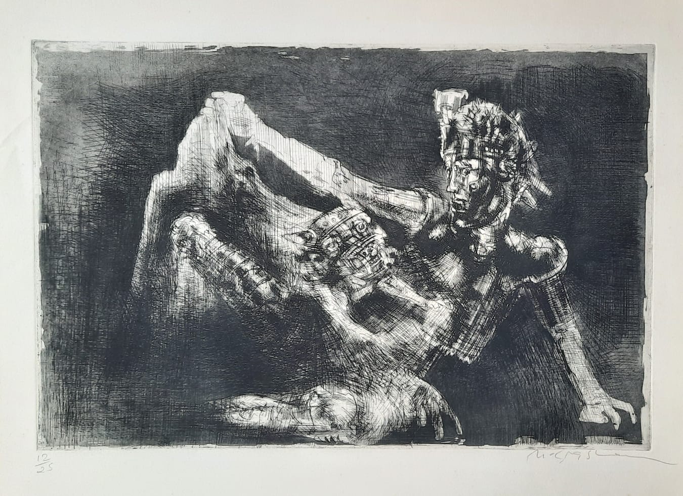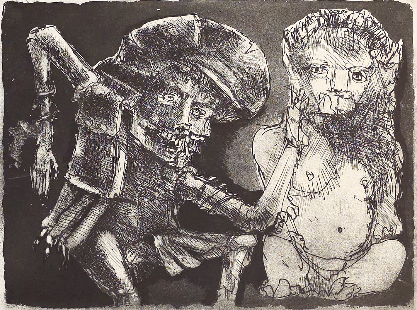 Marcelo Grassmann (1925–2013) – Figura. Gravura em metal, prova do artista (P.A.). Gravador, desenhista, ilustrador e professor brasileiro, referência central da gravura no Brasil, com formação técnica sólida e atuação como ilustrador da imprensa. Ass. CID. Dimensões: 42 × 32 cm.