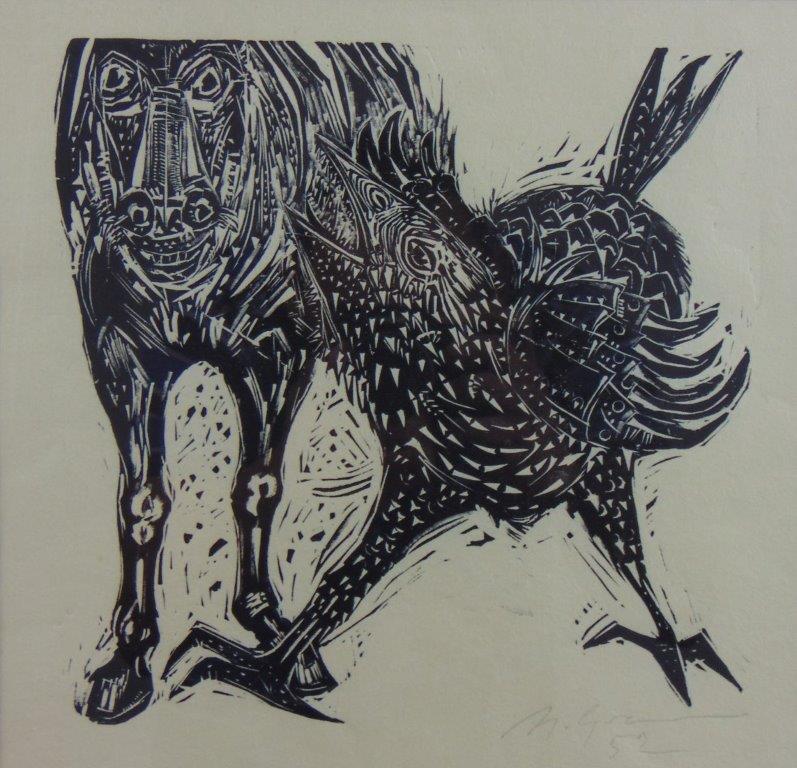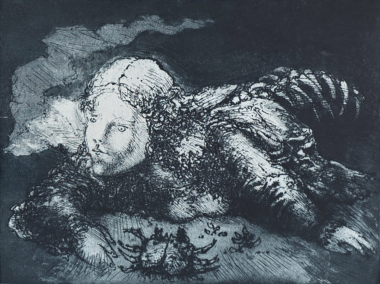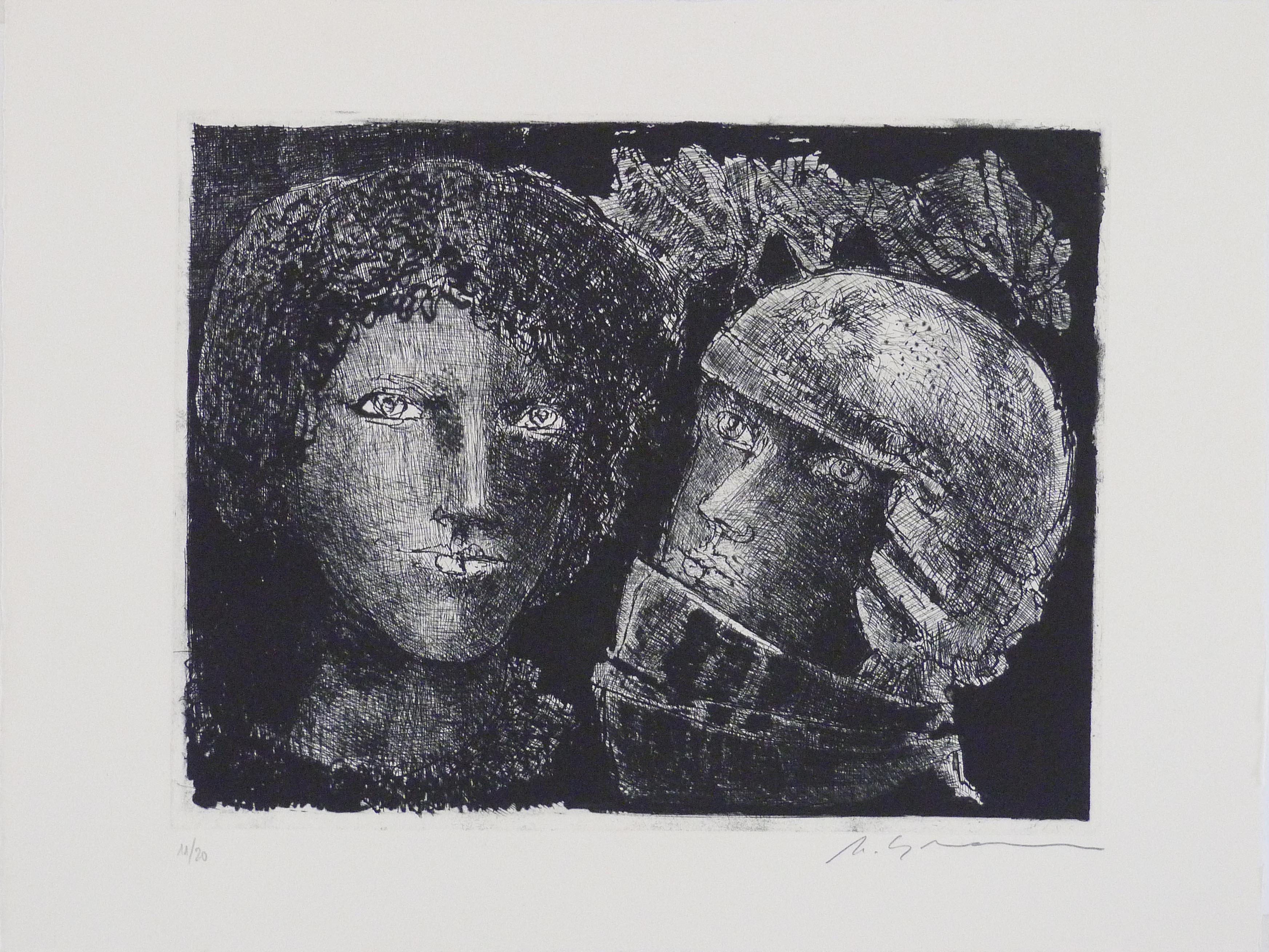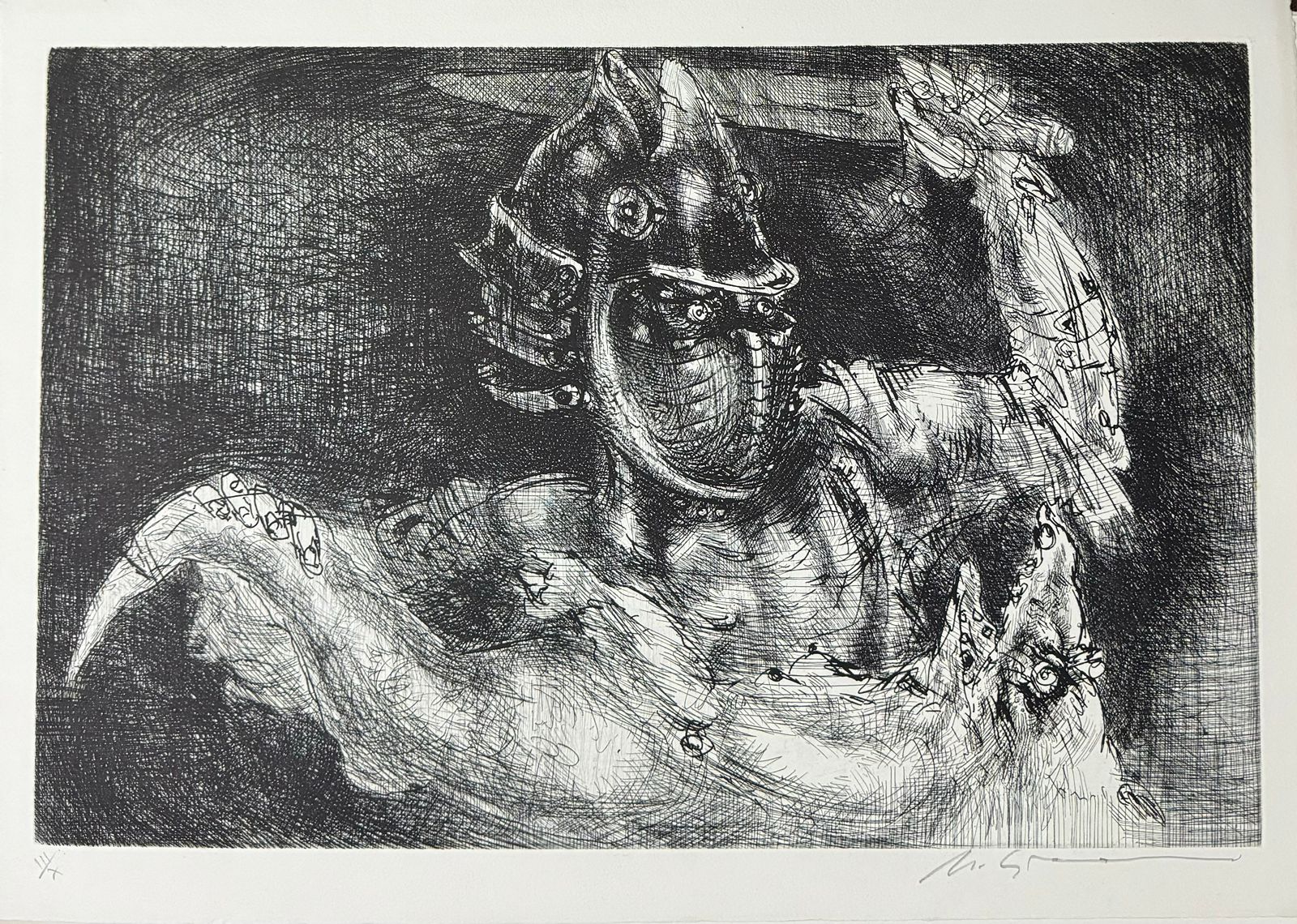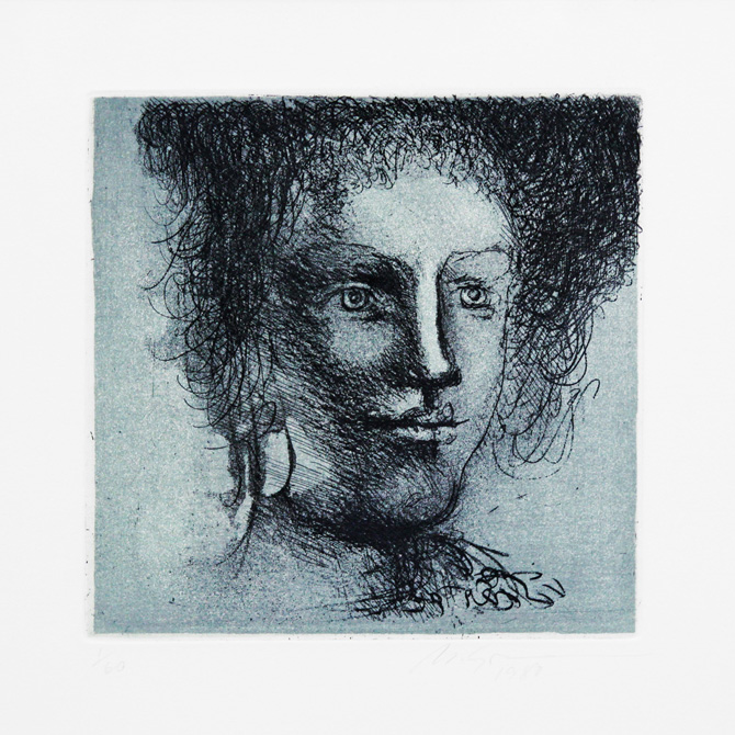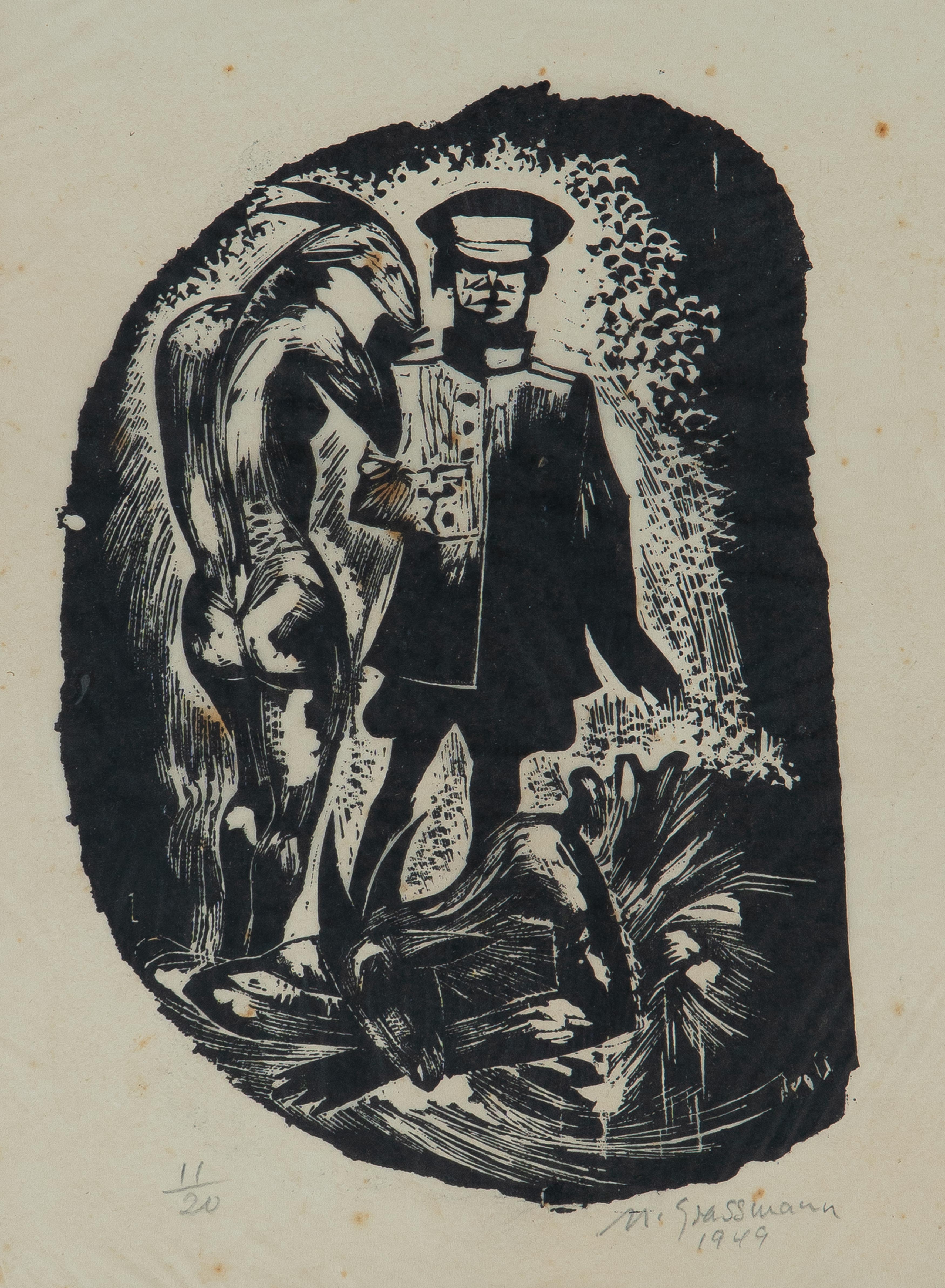 Marcelo Grassmann (1925–2013) – Figura. Gravura em metal, prova do artista (P.A.). Gravador, desenhista, ilustrador e professor brasileiro, referência central da gravura no Brasil, com formação técnica sólida e atuação como ilustrador da imprensa. Ass. CID. Dimensões: 42 × 32 cm.